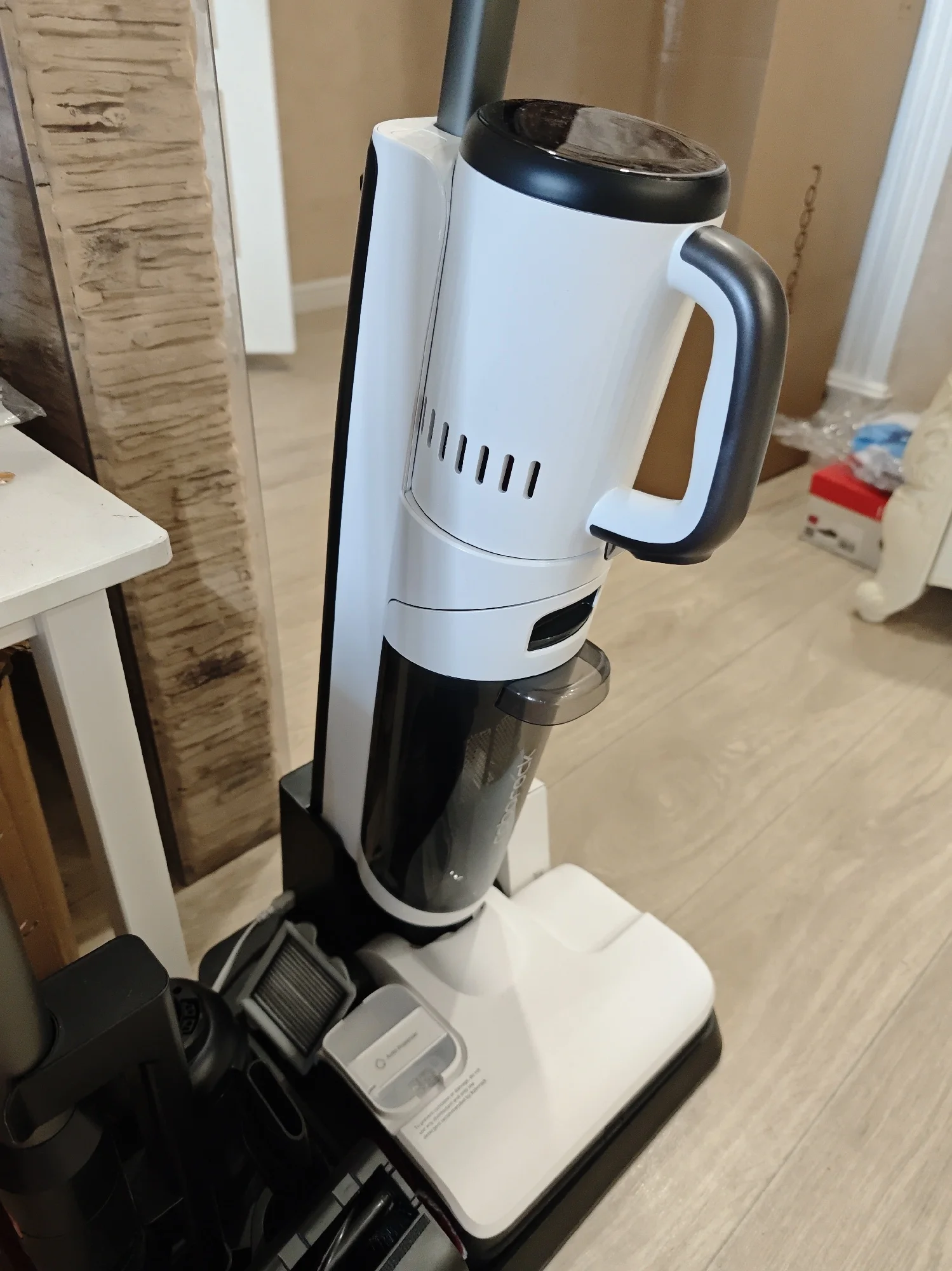 Полностью заряженного пылесоса хватает на квартиру 61м2 и ещё остаётся 50-60% в зависимости от интенсивности уборки. Реально отмывает засохшие пятна! Хорошо проходит вдоль стены, не оставляет незахваченные места. Если хочется тщательнее помыть,а не просто протереть пыль,то время уборки надо увеличивать. То есть дольше и медленнее водить по полу. Минус,конечно,его непроходимость под кровать,под шкаф и т.п. Специально выложила фото грязного пылесоса после уборки,чтобы было понятно,что почистить ручками всё же придётся. Так как режим самоочистки до конца всё это не уберёт(волосы, налипшую сырую пыль). Но ролики отмывает хорошо, сушит тоже нормально. Звук во время уборки не громкий, вот во время самоочистки и сушки громкий)))Говорит,естественно,на всех языках,кроме русского. Хотя в приложении всё на русском. В целом,я довольна. Теперь робот пылесос Xiaomi с функцией влажной уборки стоит без дела 😊