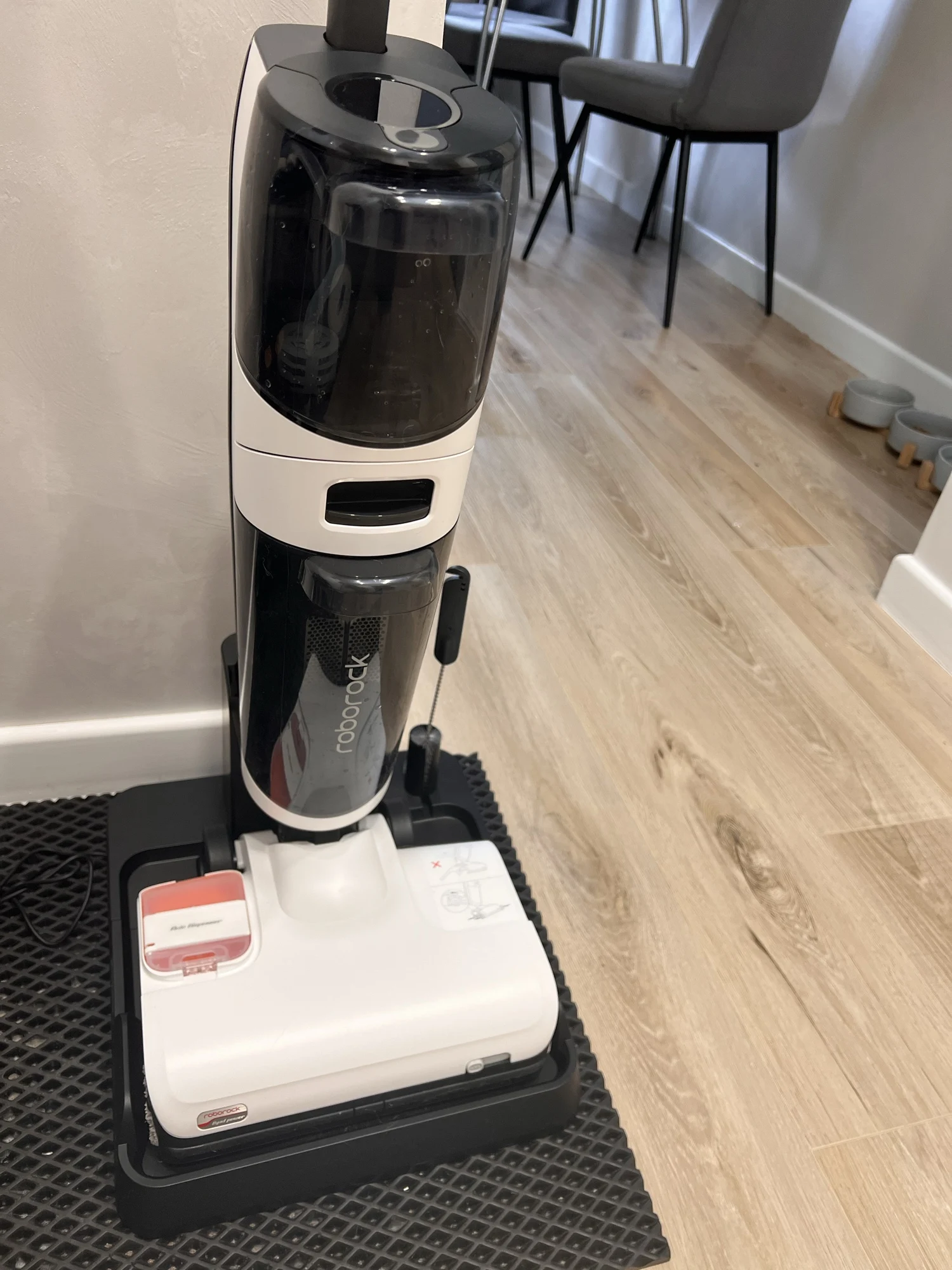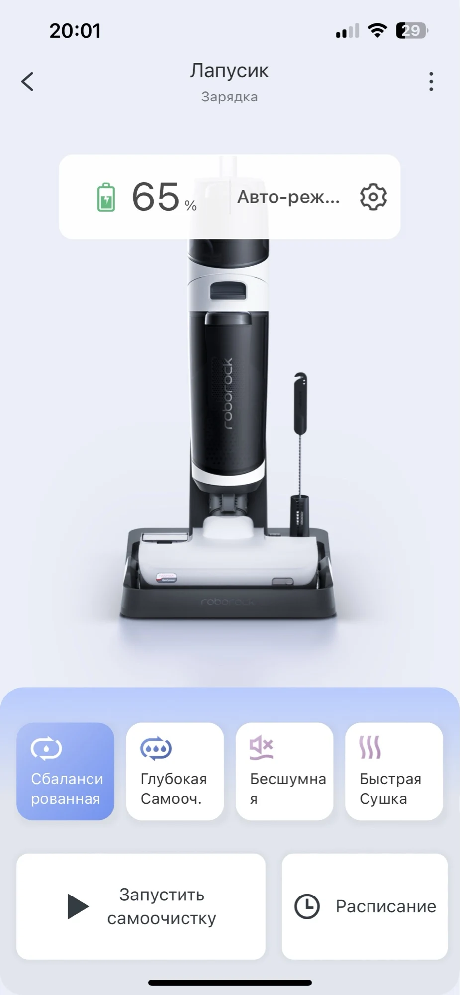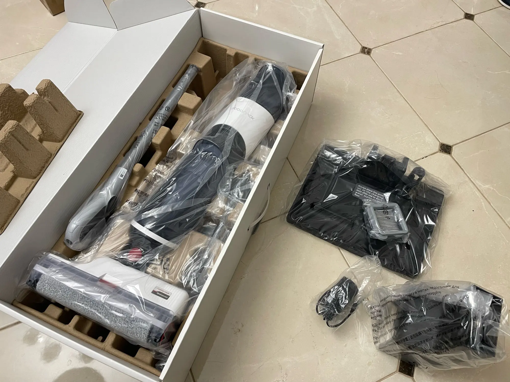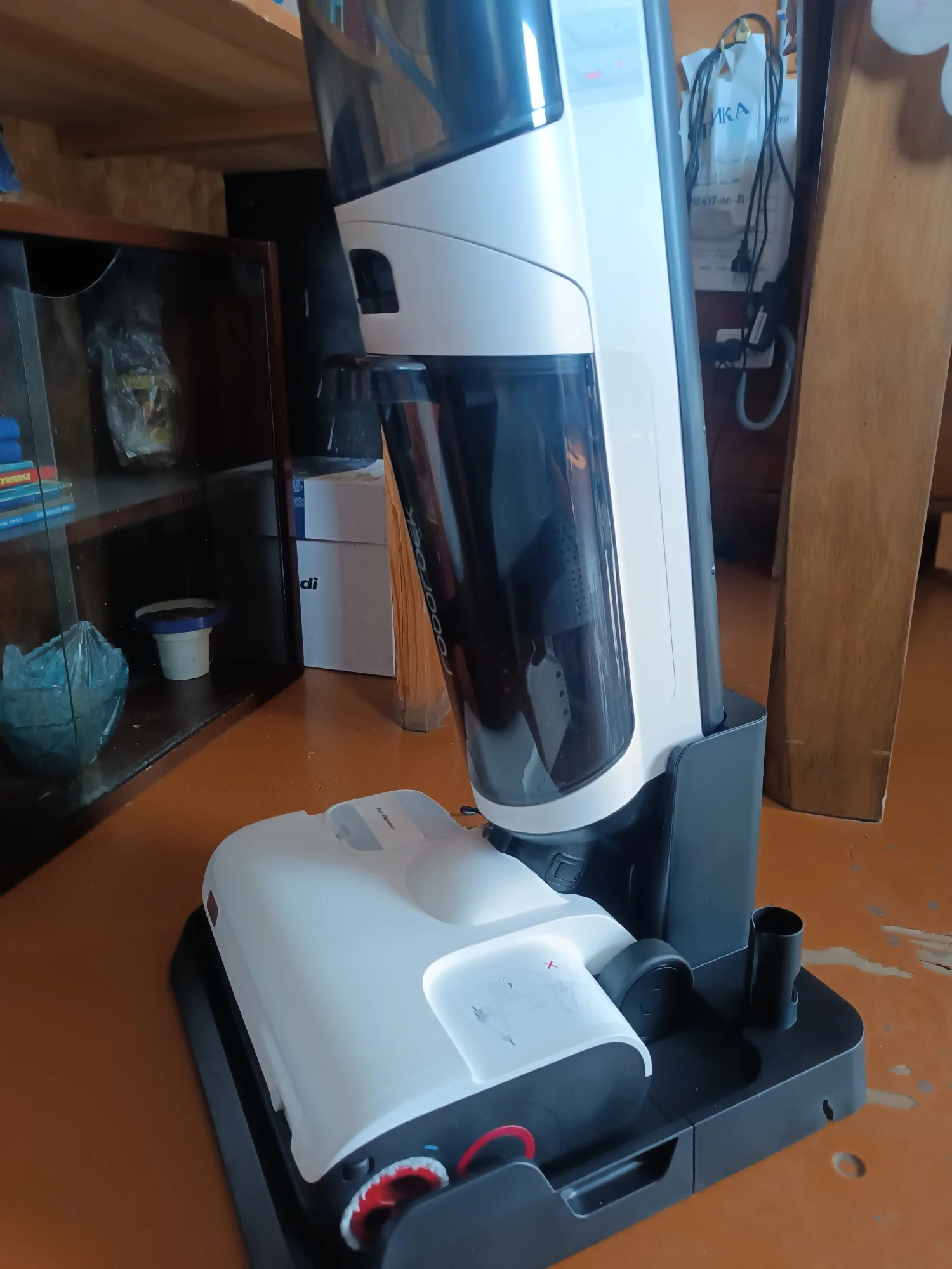 заказала пока были по акции (28 215 с бонусами вышло). качество сборки отличное, никаких запахов, все упаковано замечательно. транспортировочная коробка с названием бренда из картона и внутри уже коробка с самим пылесосом. каждая деталь запакована, заклеена, в своей коробочке. моющее средство к нему взяла роботклин, концентрат, заливается в картридж на щетке. из минусов-нет русского языка в озвучке, поставила украинский. сушку лучше в приложении настроить на 6 часов, за 3 часа валики не просыхают, после самоочистки на платформе остается шерсть-для меня не проблема ее убрать. Моет пол восхитительно, лучше чем я руками. никаких ведер и швабр с тряпками не надо, воду залил, пропылесосил (помыл) всю квартиру, включил самоочиску, слил баки, оставил сохнуть-всё! обычно я сначала пылесосила, потом мыла пол, а теперь вся уборка квартиры-20 минут. под диваны/кровати не залезет. в комплекте идет один запасной фильтр, комплектующие все есть на али. одно из лучших приобретений. коннектится с придожением без проблем, главное-работающий wi-fi. приложение на русском, все понятно. qr код для подсоединения находится под баком чистой воды (надо его снять). если при уборке пылесос разрядился больше чем на 15%, самоочиска сразу не включится, надо будет подождать пока зарядится. все подсказки есть в приложении, оно действительно очень удобное и информативное, много всего в нем можно настроить, например автоматический запуск сразу после разблокировки, если остановились(например чтото подвинуть)