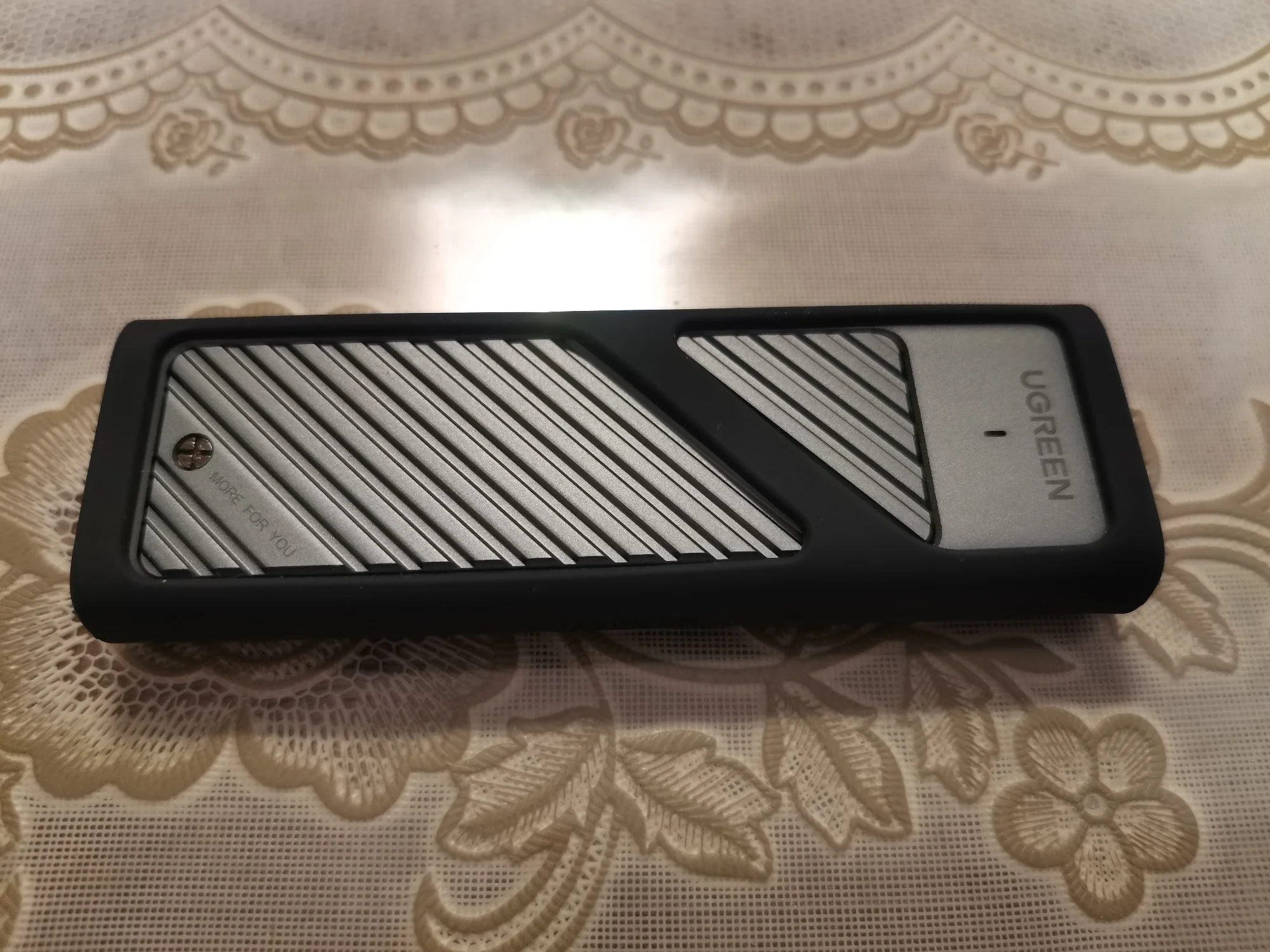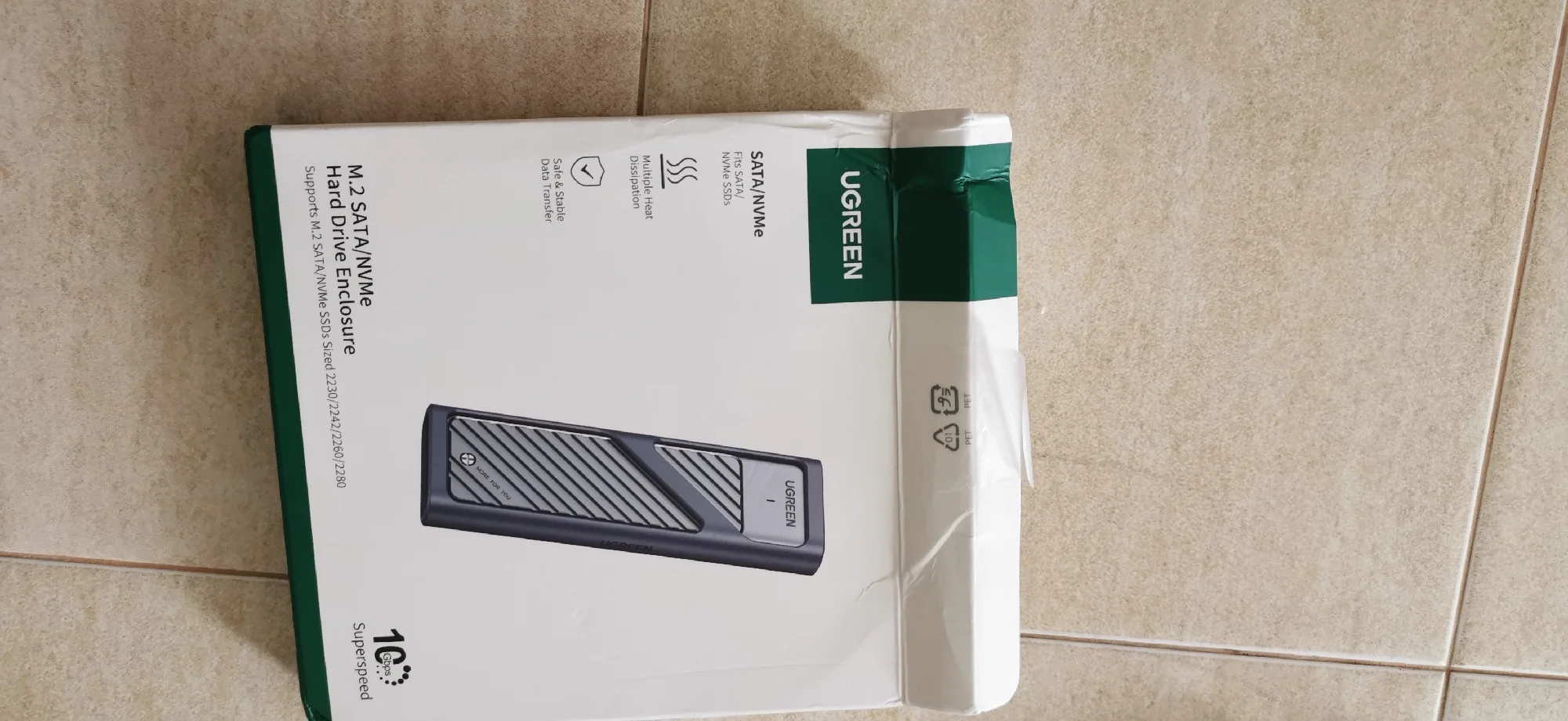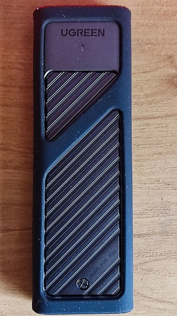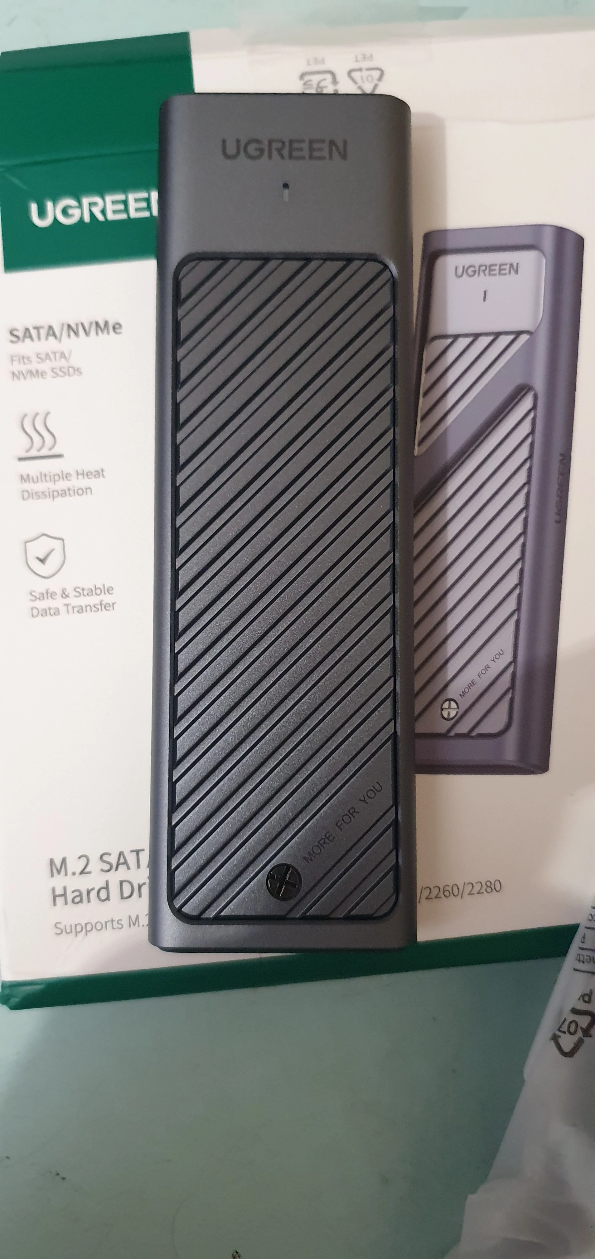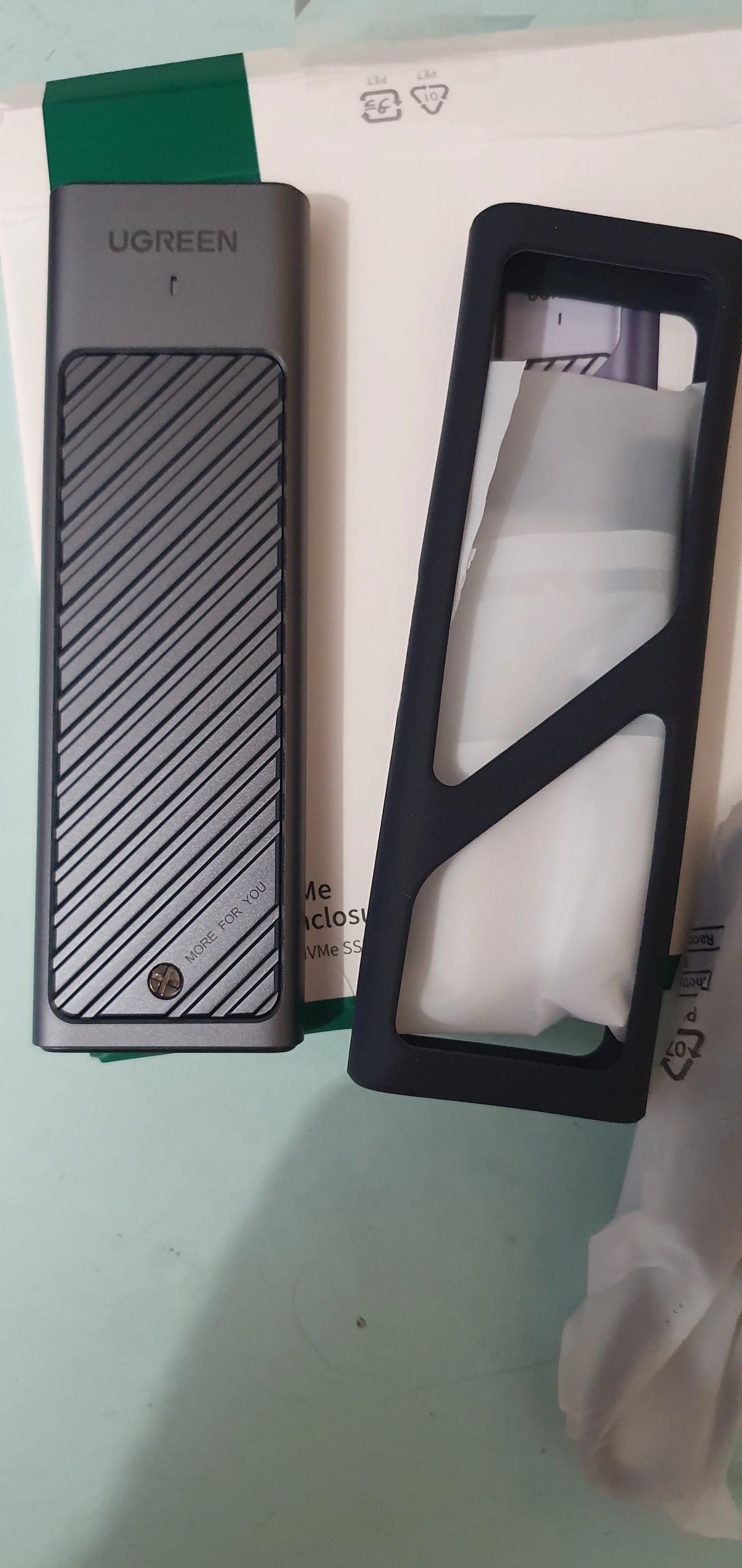 Доставка заняла два месяца. Но это вина Почты России !!! Задержали посылку в пром. центре на 20 дней !!! Думал уже что моя посылка утеряна. Но чудо, она наконец дошла до меня!!! Качество Ugreen, как всегда, на хорошем уровне. Оригинальный дизайн, очень приятно пользоваться. В руке лежит удобно. Без преувеличения, ощущение премиальный вещи. Силиконовый чехол так же хорошего качества, плотно облегает корпус и не болтается, но очень сильно притягивает на себя пыль ) . Корпус полностью из алюминия, выполнен очень качественно. В комплекте тесть всё, термо-прокладка, которая отводит тепло на рифлёную крышку отсека и охлаждает ssd, отвёртка, запасной резиновый держатель ssd и 2 кабеля (Type-C с обоих сторон) и (Type-C-> USB 3.0(A). Досталась мне за 1400 руб. Отличная вещь от Ugreen, рекомендую к покупке !!!
