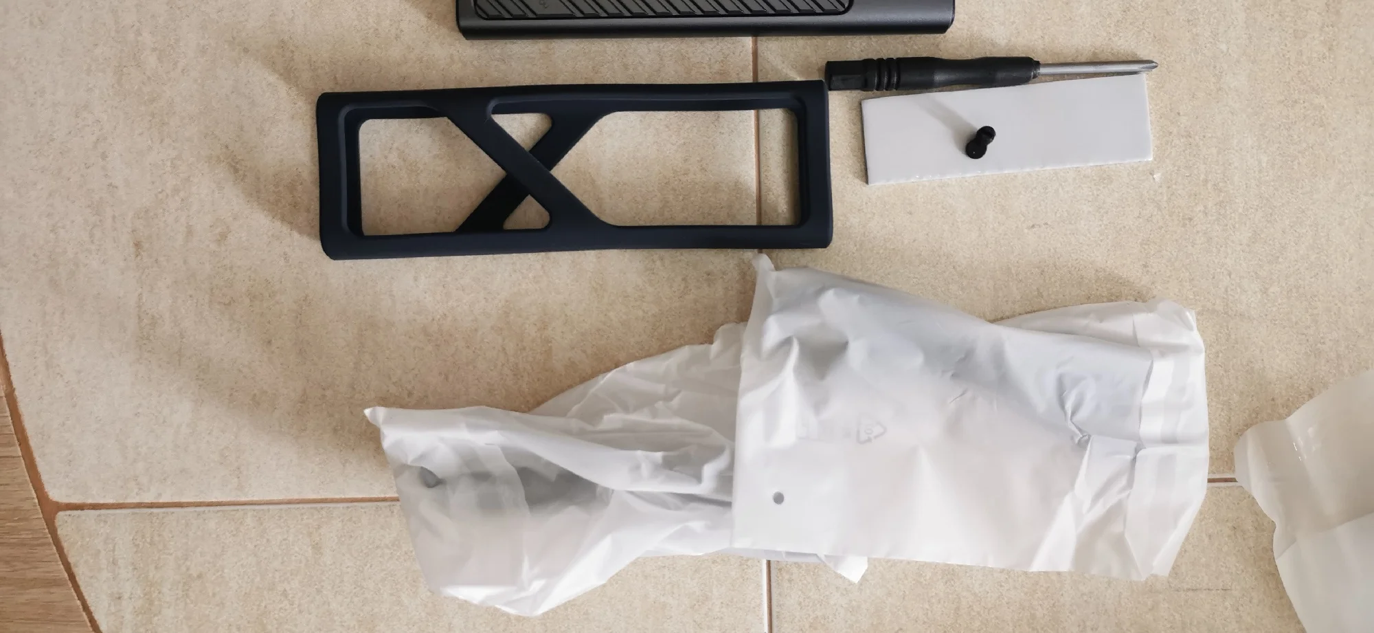 Внешне все выглядит качественно. В комплекте металлических кейс, силиконовый чехол, отвёртка, термоинтерфейс, инструкции. Доставка была достаточно быстрой, в пределах и даже быстрее оговорённые сроков. Сам дейвас пока не тестировал. Вместе с тем, упаковка оставляет двлать лучшего: обычный полимерных пакет, даже без пупырки. Соответственно, коробка изделия абсолютно вся измята на грани фола...