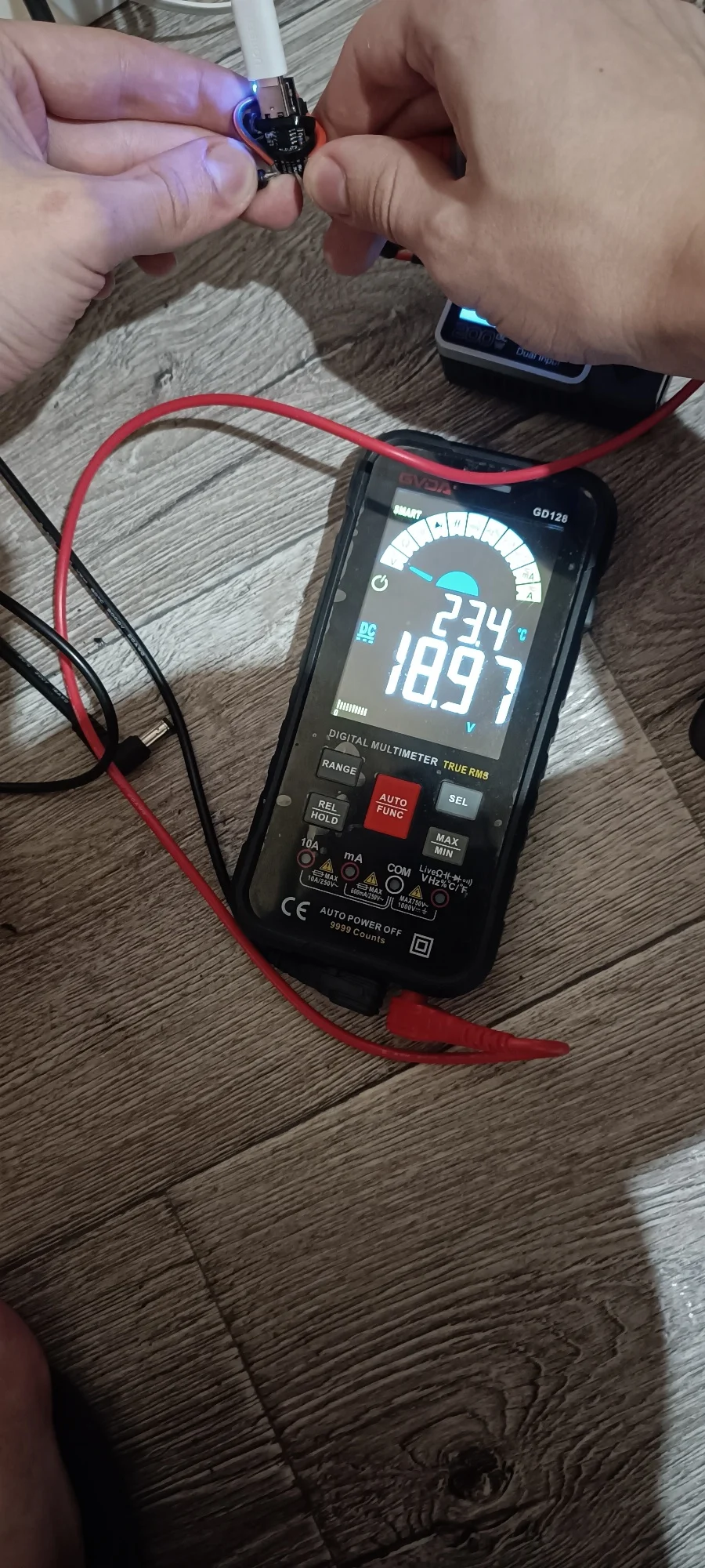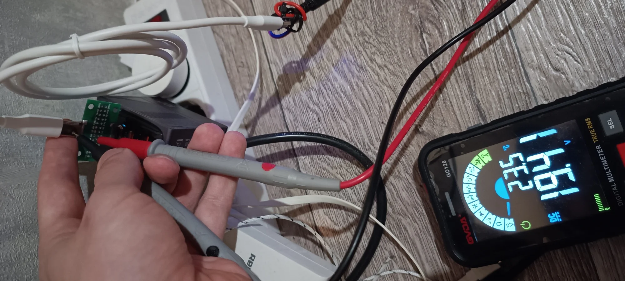 При нагрузке ±100W падение напряжения составило 400mV по плюсу и 350mV по минусу, в сумме ±750mV. Данное значение нахожу большим но не критичным, кабели в целом не плохие.