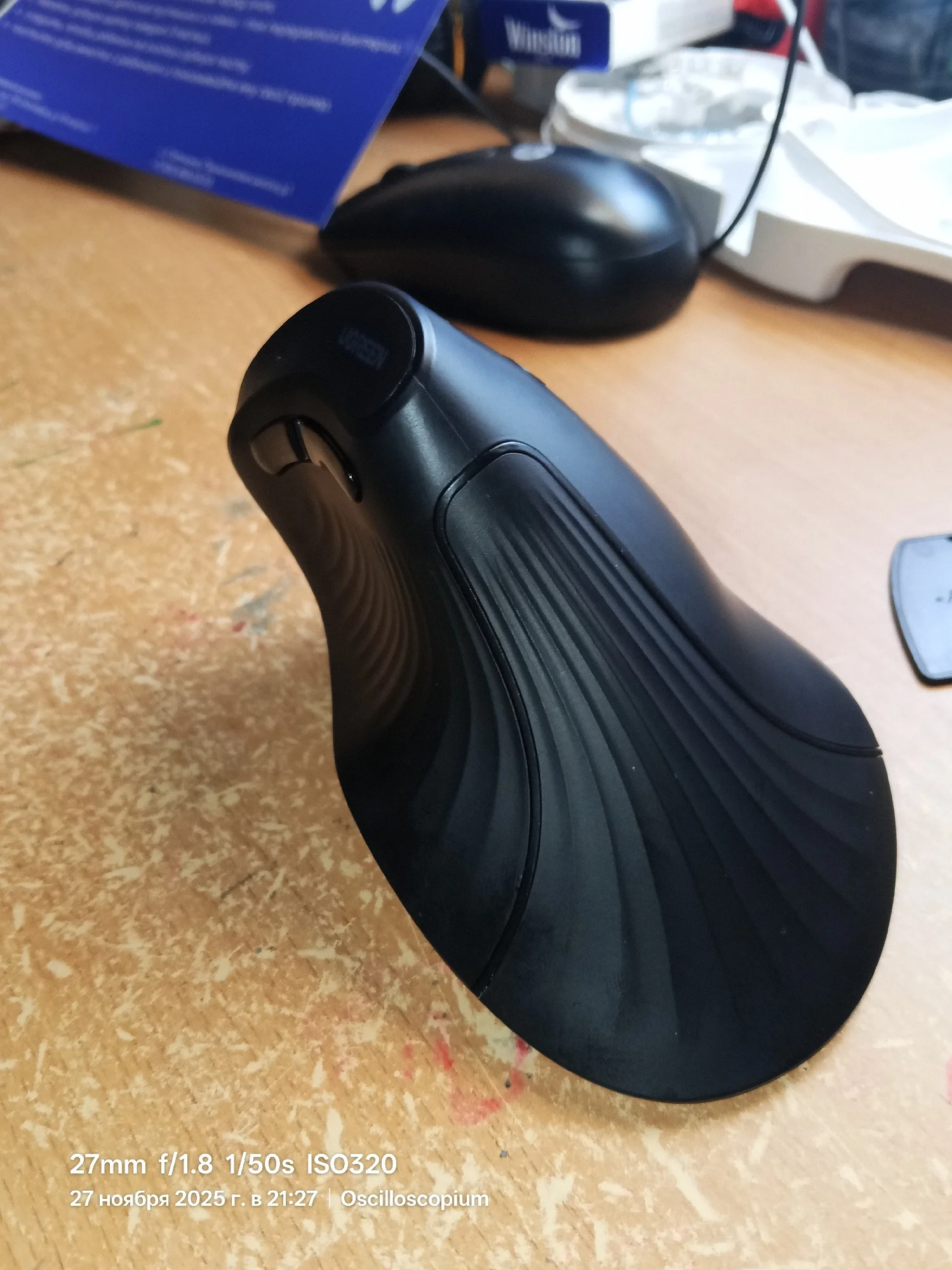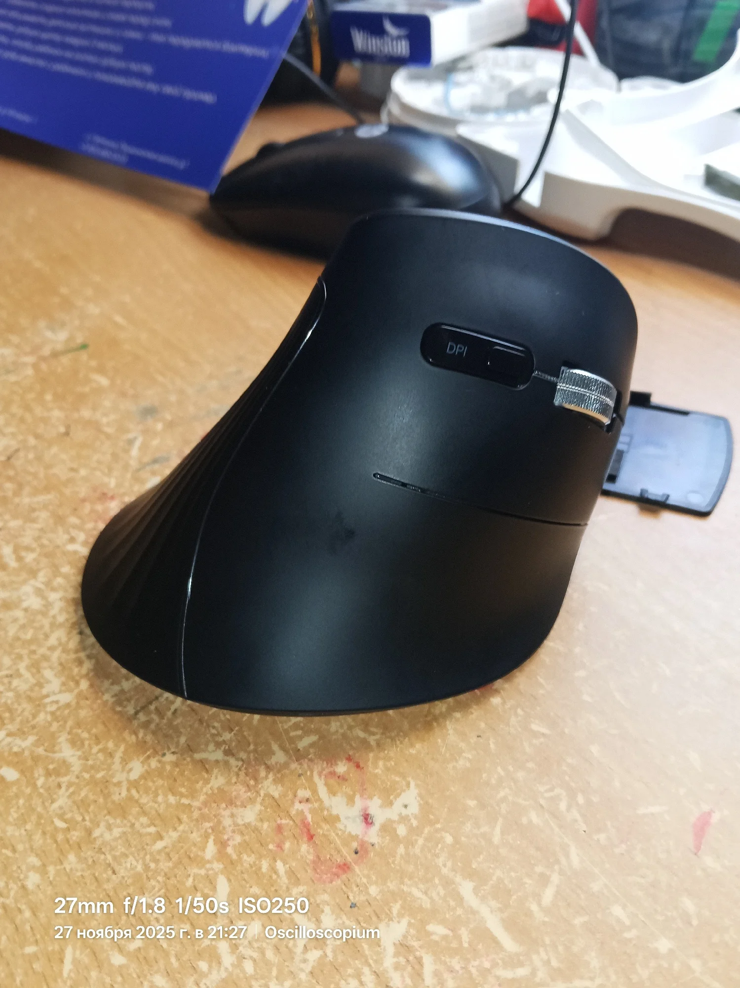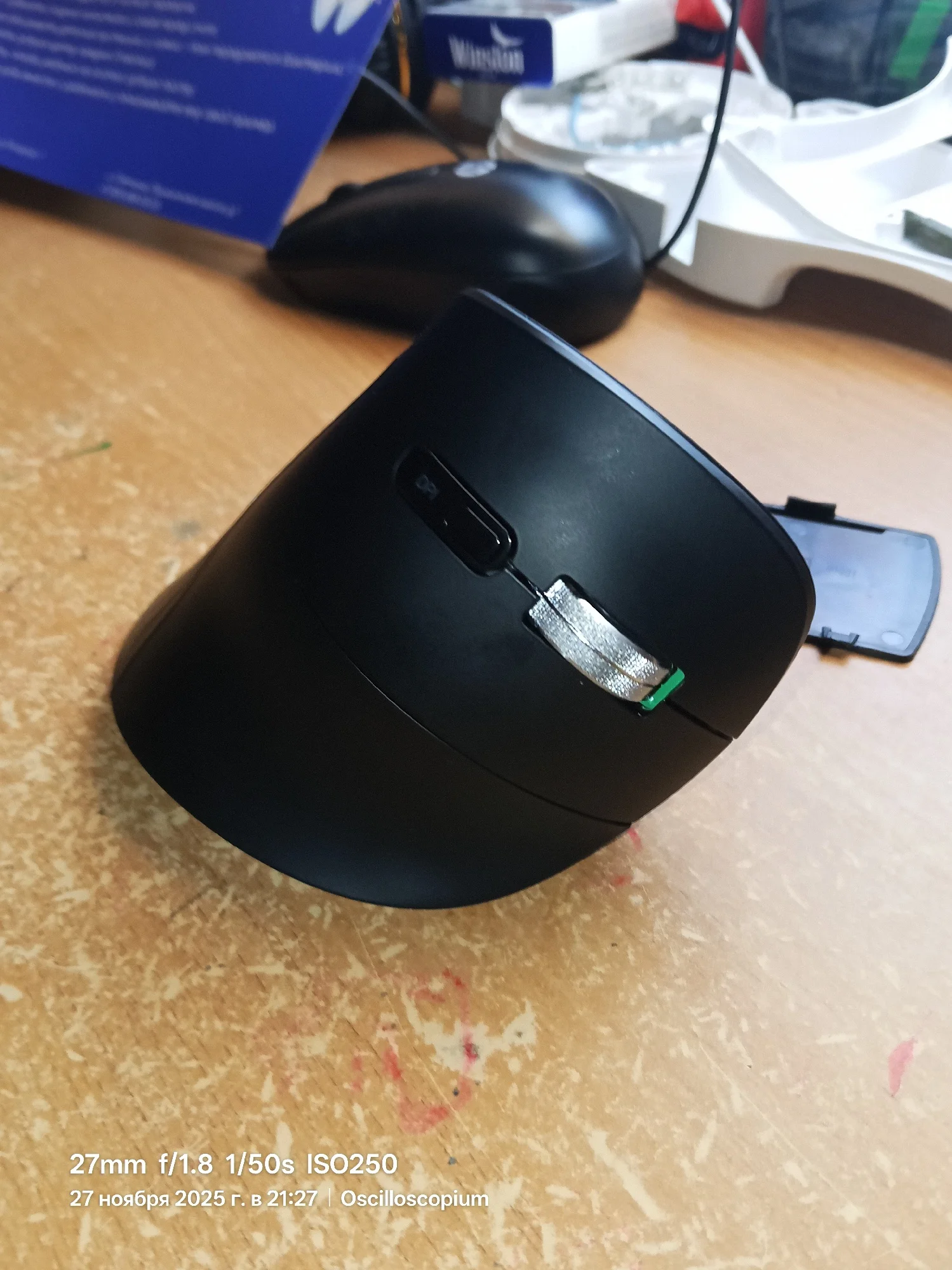 Отличная мышь. Уже привык к вертикальным, очень удобно и запястье перестало болеть. Определилась без проблем, чувствительность регулируется, спряжение стабильное.