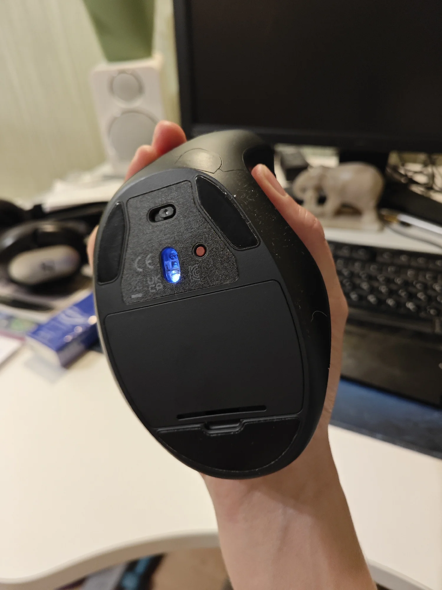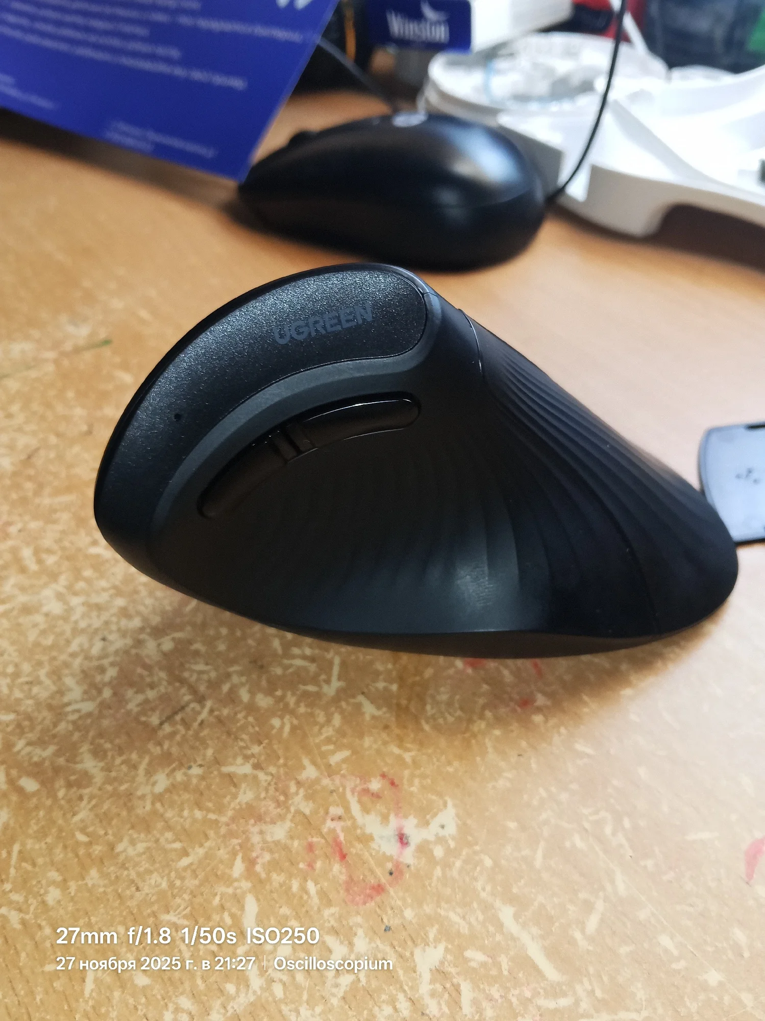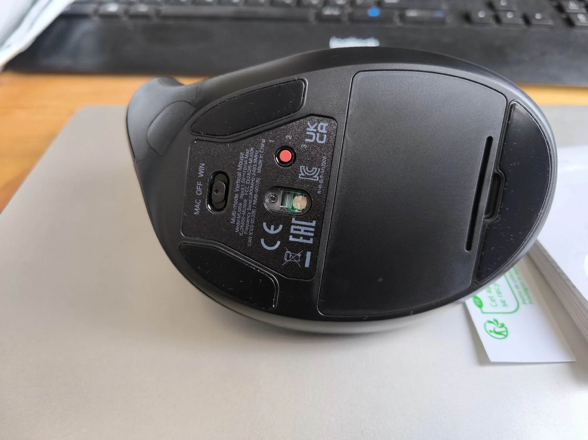 Отличная мышь. Уже привык к вертикальным, очень удобно и запястье перестало болеть. Определилась без проблем, чувствительность регулируется, спряжение стабильное.