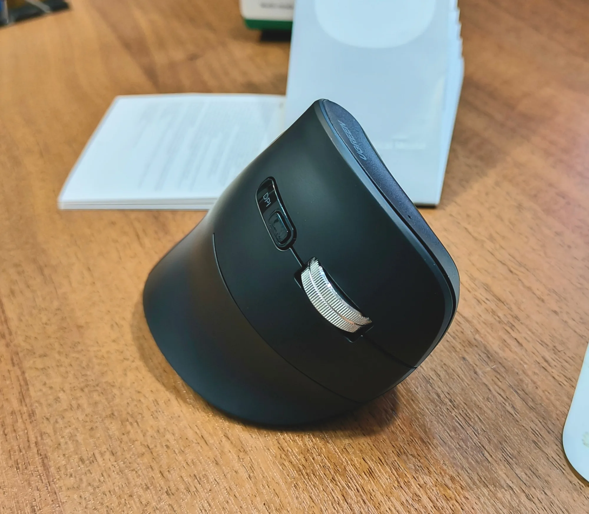 Отличная мышь. Уже привык к вертикальным, очень удобно и запястье перестало болеть. Определилась без проблем, чувствительность регулируется, спряжение стабильное.