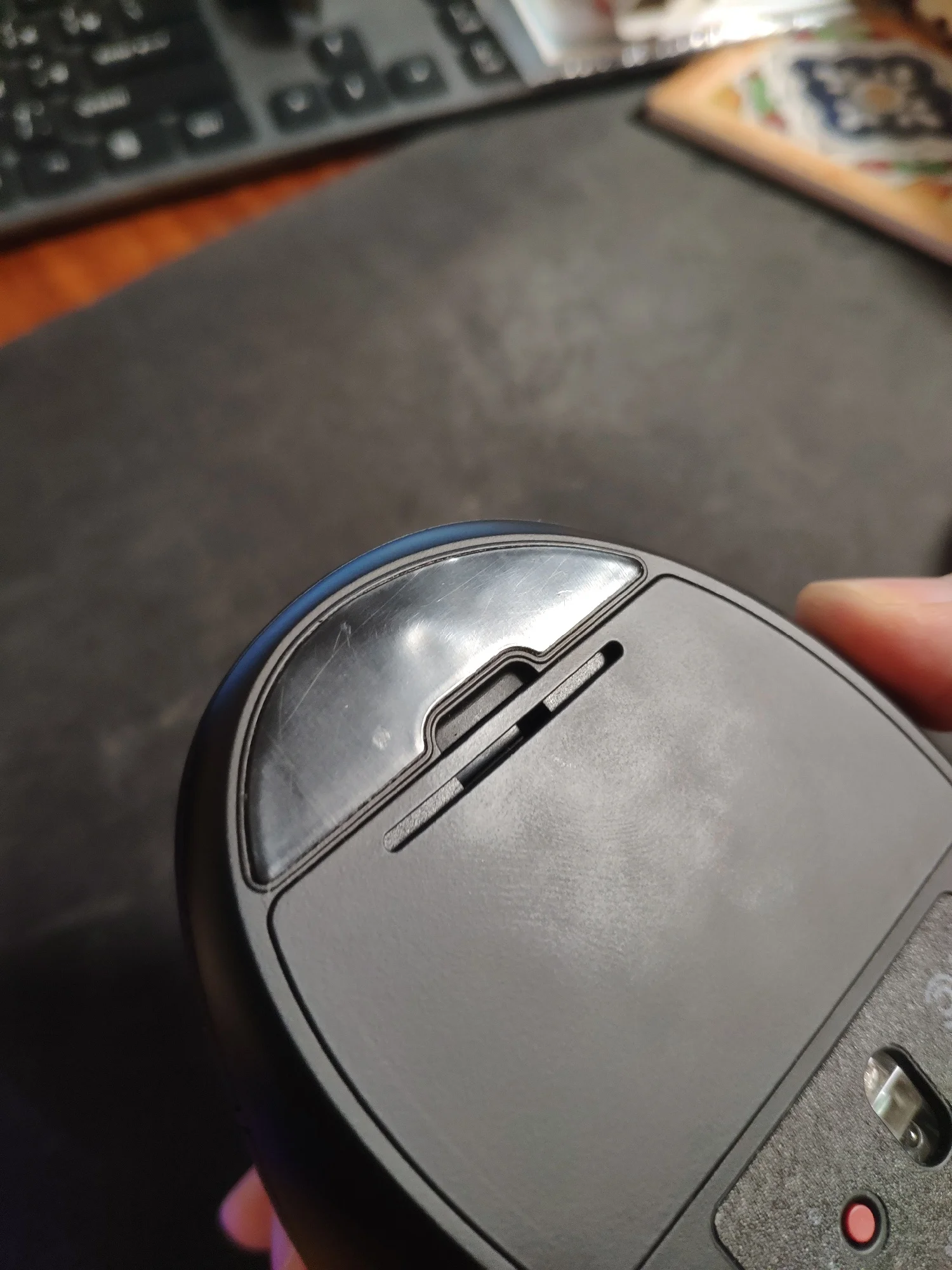 Среднее качество пластика. Тихие клики. Левый клик нормальный, правый люфтит при отдаче. Даблкликов нет. Джиттер получается ~6CPS. Колёсико невзрачное и без четких отсечек, из 100 кликов колесом словил 1 даблклик. Боковые кнопки ооочень мягкие, вообще нет клика. Развесовка страдает. Центр тяжести смещён к заду мышки, а держишь ты её преимущественно зажимая пальцами спереди. Отрывать и перетаскивать мышь не удобно. Сенсор вроде окей, с моей скоростью не срывает. Глайды полная хрень. Не глубокие, практически вровень с пластиком. Как будто их на грязь приклеили, под углом к свету видно бугры. С острыми рёбрами, слышно и чувствуется как мышь царапает коврик при скольжении. Неудобная кнопка включения. Тугая, из-за этого легко проскакивает центральное положение(выкл). Включать/выключать приходится ногтем, пальцем не за что зацепиться. Из-за расположения кнопки, включать/выключать приходится двумя руками. Одной крайне неудобно. Подключилась сразу и без проблем. У меня длинные пальцы, мышь в руке лежит хорошо. Колесо кручу указательным пальцем, средним неудобно. Это первые впечатления за пару часов использования. Посмотрим сколько она держит заряд, и на сколько её хватит. За свою цену для работы пойдёт, но минусов много.
