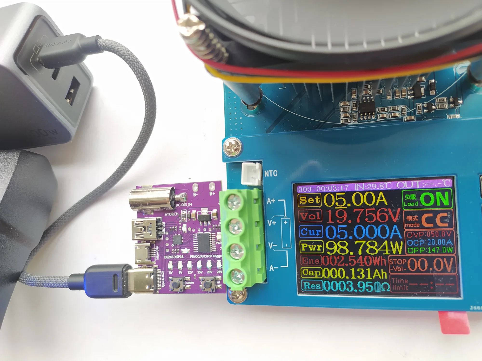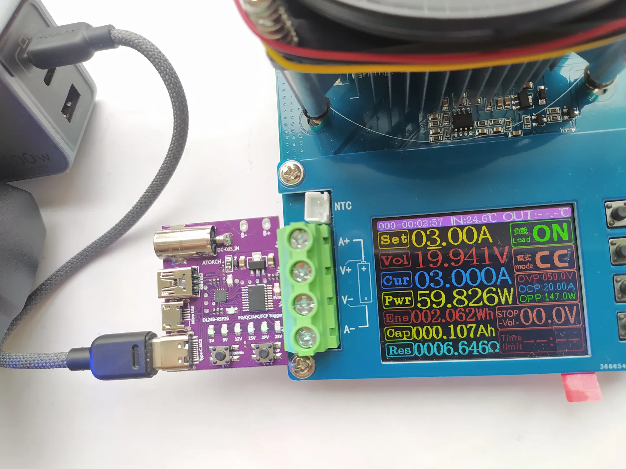 До Сальска дошло за 18 дней. Брал эту зарядку для паяльника alientek t80p - зарядка прекрасно справляется. Выходы usb-c2 и usb-a запараллелены, соответственно, присутствует перезагрузка портов. Экраны usb портов и контакт заземления связаны. Не смотря на то, что паяльник соединяется с зарядкой самодельным двухпроводным кабелем, жало паяльника прозванивается с контактом заземления. Кстати, паяльник прекрасно работает с зарядкой и сильно её не нагревает. А вот если этой зарядкой заряжать банку силы ugreen pb721 35524 (nexode 130w 20000 mAh), то корпус зарядки разогревается до 60 ℃.
