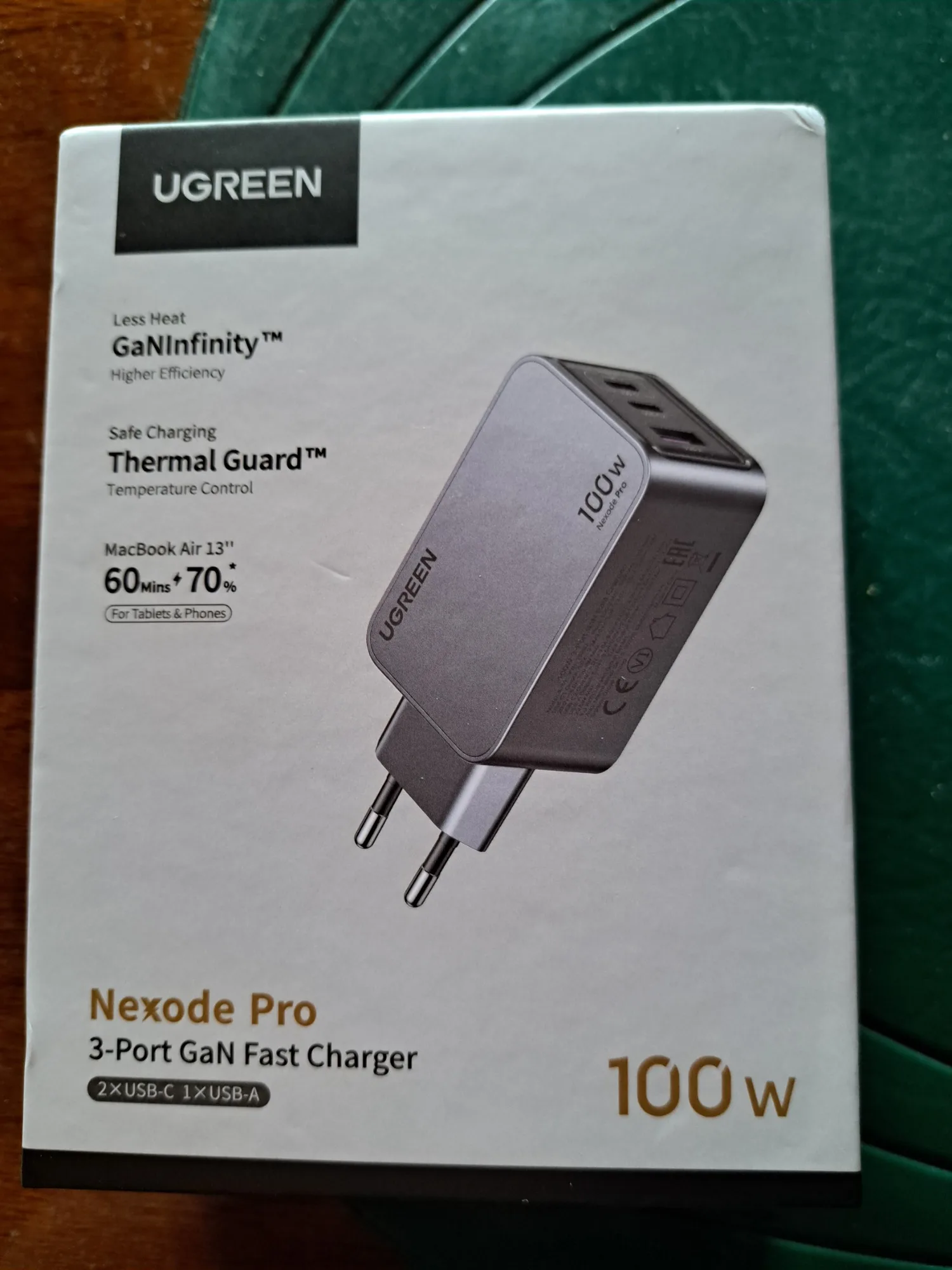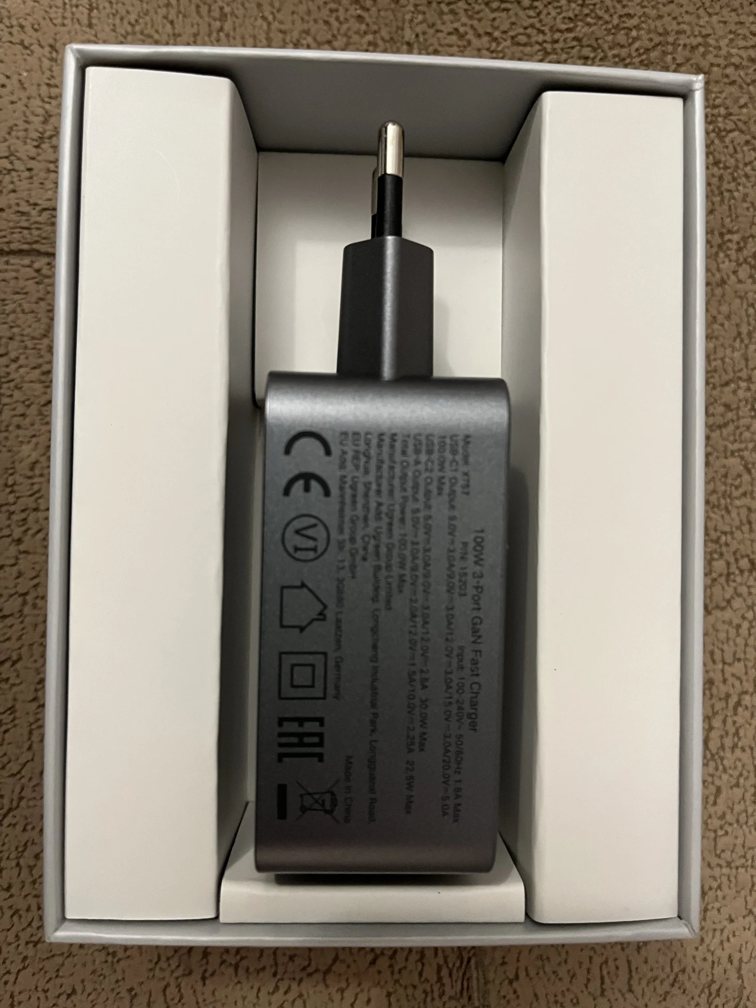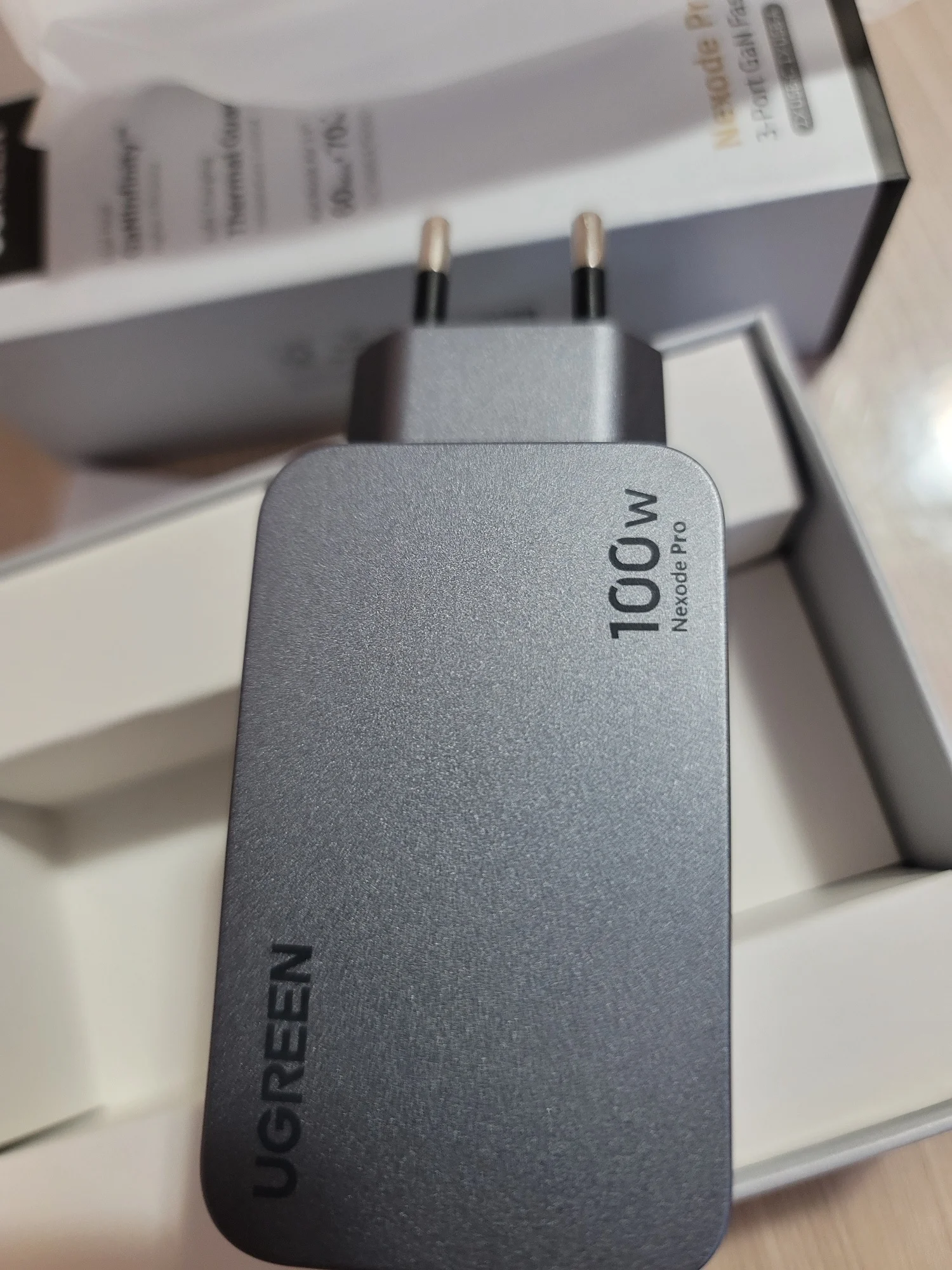Зарядное устройство UGREEN 100W в KR-версии поставляется с европейской вилкой, оснащённой заземлением. Это обеспечивает более надёжную фиксацию в розетке по сравнению с EU-версией, особенно при горизонтальном расположении розетки (учитывая то, что зарядка из-за металлического корпуса достаточно тяжёлая для своего размера). Заземление также снижает вероятность статического напряжения, что убирает недостаток с частично работающим тачпадом при зарядке от устройств без заземления и снижение риска получить разряд при прикосновении к металлическому корпусу ноутбука (если он не из пластика). Производительность Зарядка справляется с питанием ноутбука Lenovo Xiaoxin 14 Pro 2024 (Ryzen 7 8845H) даже при нагрузке, заменяя штатное устройство. Также она заряжает повербанк Ugreen Nexode 200W 25Ah (90 Втч) на мощности около 65 Вт, что соответствует максимуму для этого повербанка. Поддерживаемые и неподдерживаемые протоколы Поддерживает: - PD3.0 - QC4.0+ и QC3.0 - PPS - SCP (Huawei) - AFC (Samsung) - BC1.2 Не поддерживает: - VOOC/Dash Charge (Oppo, Realme, OnePlus) - Dart Charge (Смартфон Vivo) - Xiaomi Fast Charge Это делает зарядку совместимой с большинством современных устройств, но для смартфонов с проприетарными технологиями скорость зарядки будет ограничена стандартными значениями, с зарядкой Nothing Phone (2) по PPS справляется отлично. Для уменьшения нагрева можно установить алюминиевые радиаторы (например, 28*28*11 мм) с термоскотчем. Это необязательно для повседневного использования, но (крайне рекомендуется и) может быть полезно при длительных высоких нагрузках (к примеру в играх). Цена на момент покупки составила около ~2667 ₽, доставка заняла 11 дней до Москвы.