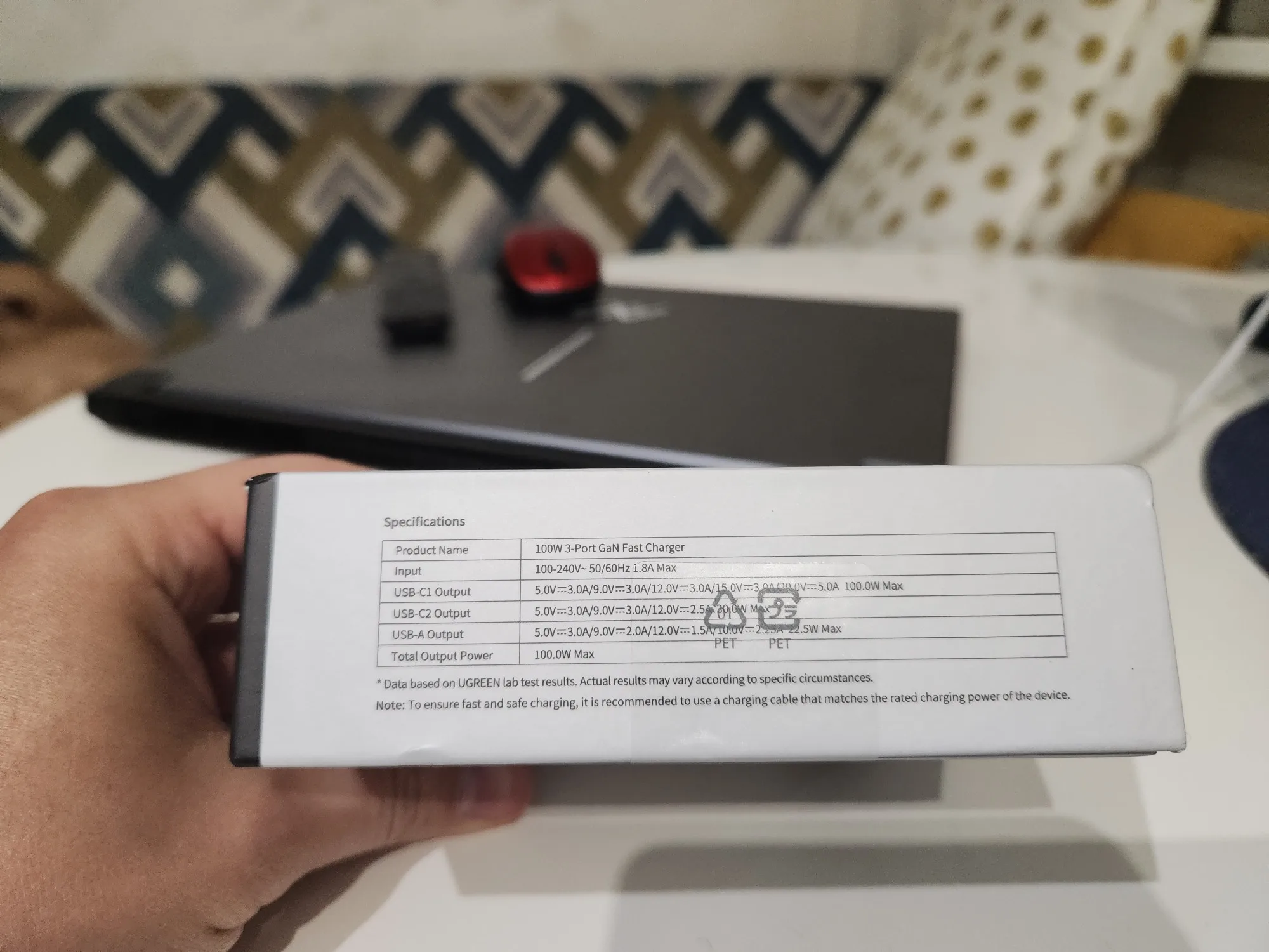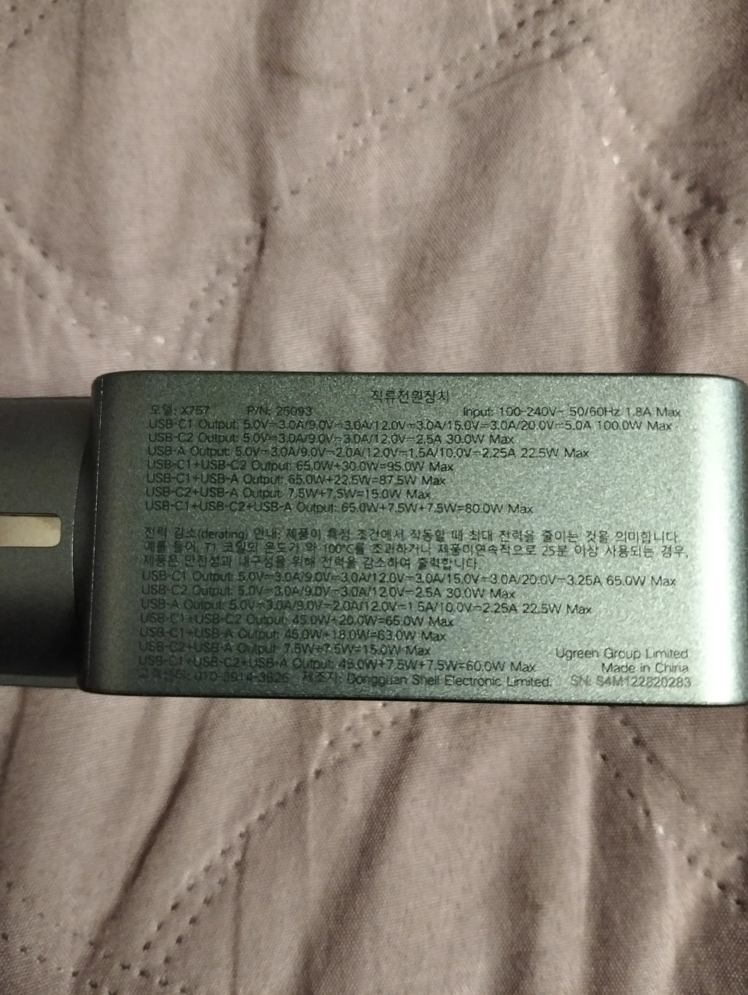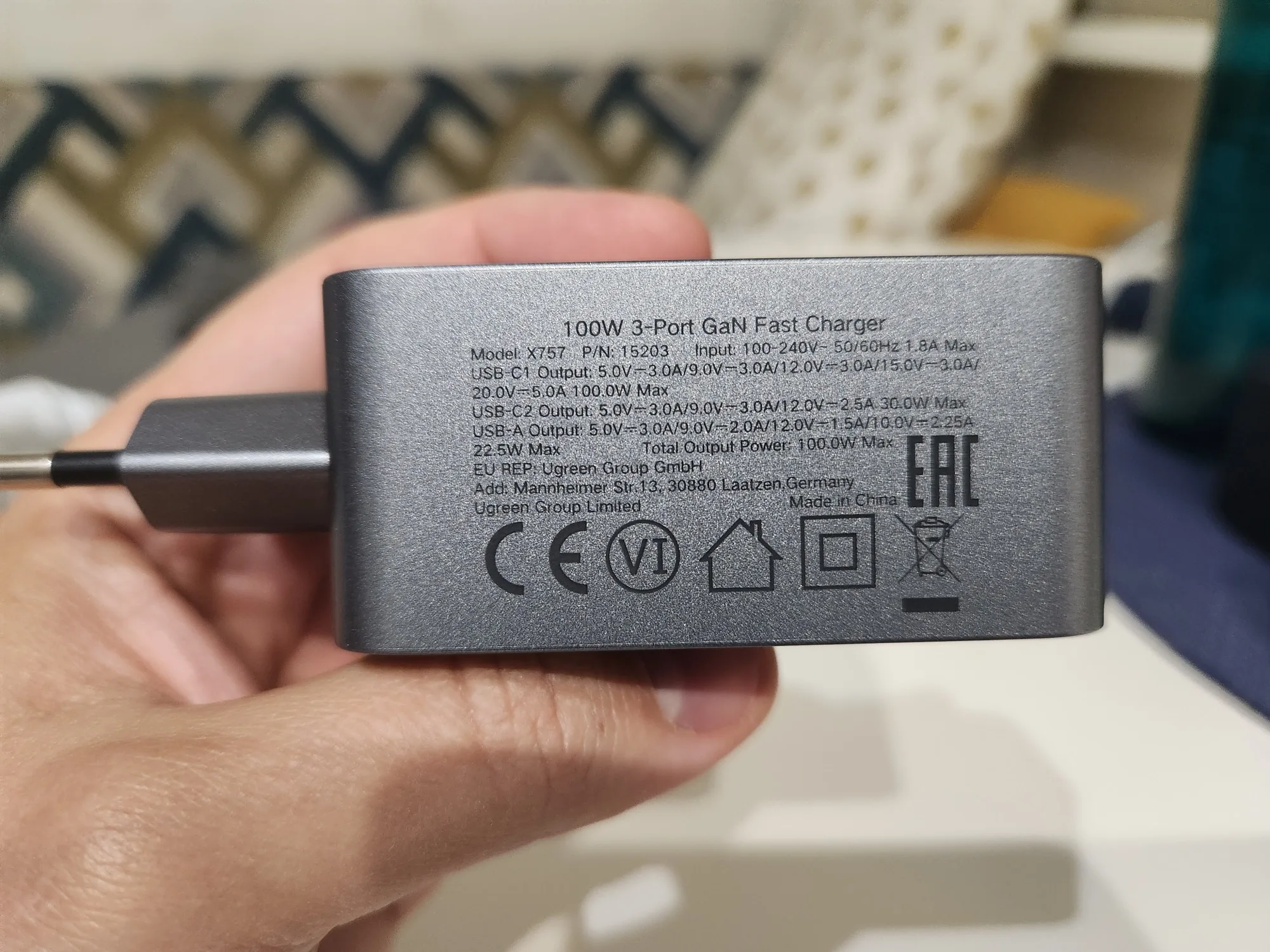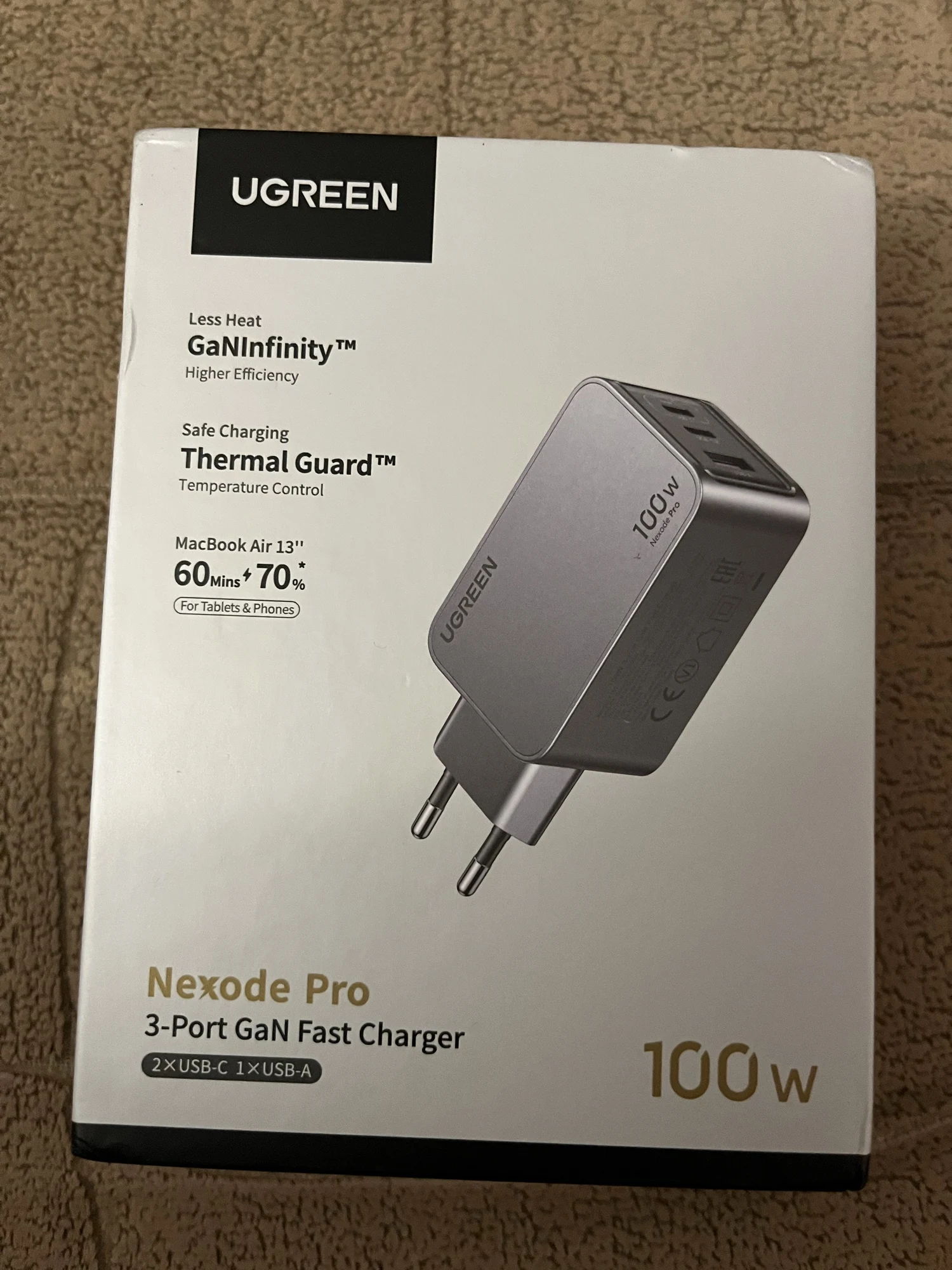 Зарядное устройство UGREEN 100W в KR-версии поставляется с европейской вилкой, оснащённой заземлением. Это обеспечивает более надёжную фиксацию в розетке по сравнению с EU-версией, особенно при горизонтальном расположении розетки (учитывая то, что зарядка из-за металлического корпуса достаточно тяжёлая для своего размера). Заземление также снижает вероятность статического напряжения, что убирает недостаток с частично работающим тачпадом при зарядке от устройств без заземления и снижение риска получить разряд при прикосновении к металлическому корпусу ноутбука (если он не из пластика). Производительность Зарядка справляется с питанием ноутбука Lenovo Xiaoxin 14 Pro 2024 (Ryzen 7 8845H) даже при нагрузке, заменяя штатное устройство. Также она заряжает повербанк Ugreen Nexode 200W 25Ah (90 Втч) на мощности около 65 Вт, что соответствует максимуму для этого повербанка. Поддерживаемые и неподдерживаемые протоколы Поддерживает: - PD3.0 - QC4.0+ и QC3.0 - PPS - SCP (Huawei) - AFC (Samsung) - BC1.2 Не поддерживает: - VOOC/Dash Charge (Oppo, Realme, OnePlus) - Dart Charge (Смартфон Vivo) - Xiaomi Fast Charge Это делает зарядку совместимой с большинством современных устройств, но для смартфонов с проприетарными технологиями скорость зарядки будет ограничена стандартными значениями, с зарядкой Nothing Phone (2) по PPS справляется отлично. Для уменьшения нагрева можно установить алюминиевые радиаторы (например, 28*28*11 мм) с термоскотчем. Это необязательно для повседневного использования, но (крайне рекомендуется и) может быть полезно при длительных высоких нагрузках (к примеру в играх). Цена на момент покупки составила около ~2667 ₽, доставка заняла 11 дней до Москвы.