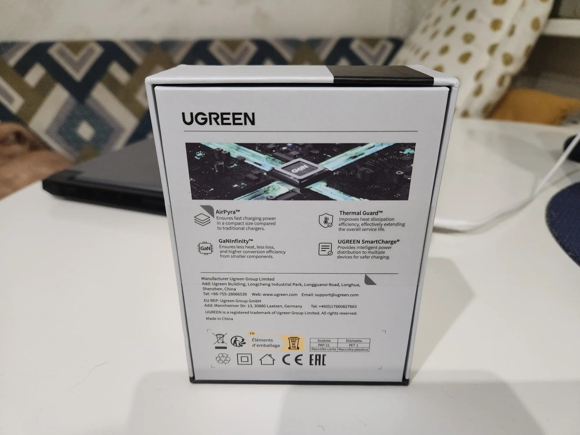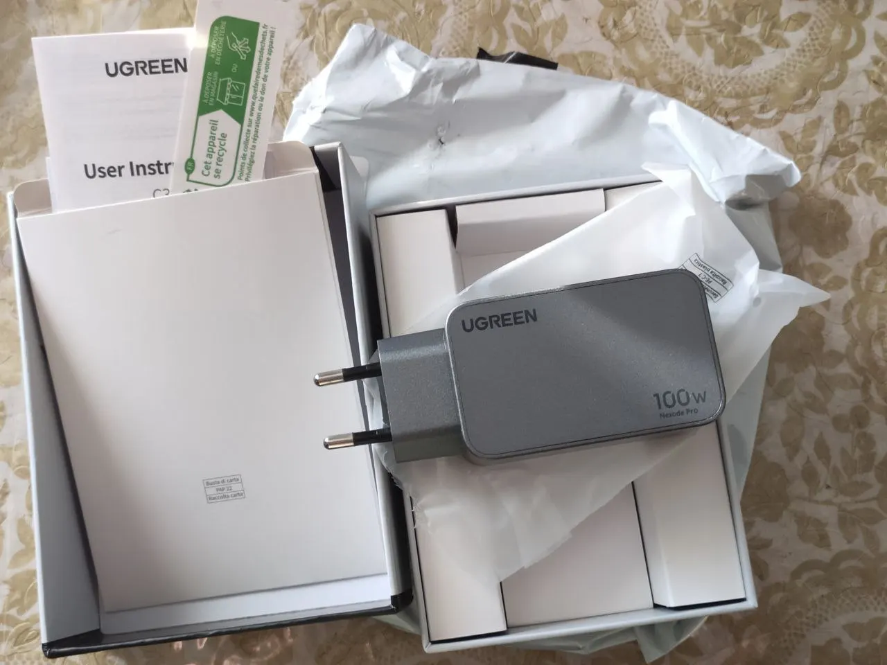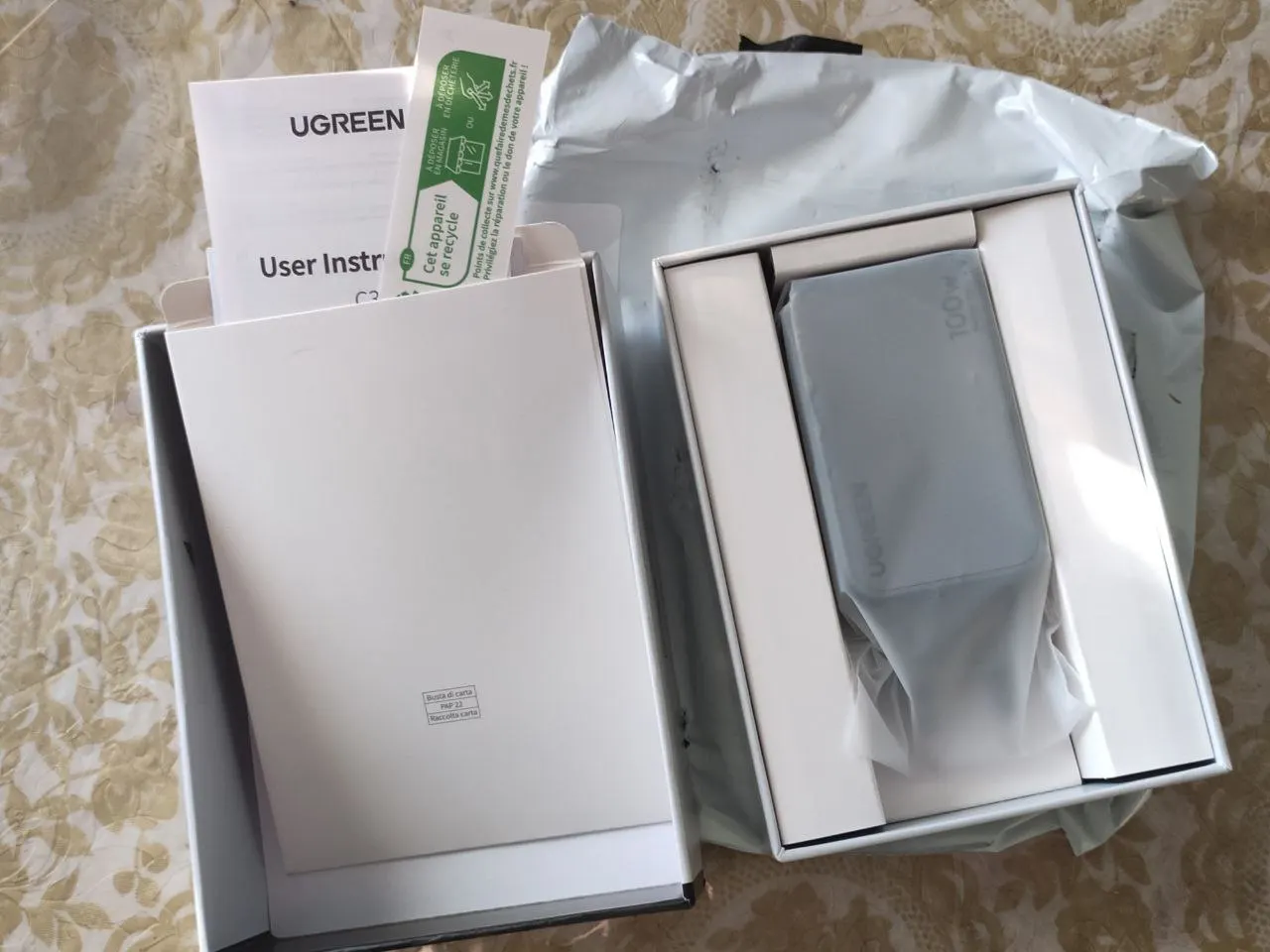 ну, что, начнём.... однажды увидев на просторах интернета зарядное устройство Ugreen, я понял - вот оно, решение моего вопроса... Да, Samsung не балует своих почитателей, кроме самого Samsung вы не получаете ровным счётом ничего, кроме самой коробочки и телефона... сейчас я восполнил все эти недочёты купив данный адаптер и шнур к этому адаптеру. И телефон у меня сегодня впервые за год познал что такое быстрая зарядка. Он наверное офигел от такого поворота событий... с 15% до 100% зарядился за 20 минут. Ну и конечно офигел я сам, что можно так быстро... Телефон во время зарядки немного нагрелся, был тепленьким, зарядное устройство тоже было тёплым. Сам зарядник тяжеленький, такая приятная тяжесть в руке. Двух метровый шнур для зарядки в тканевой оплетке, довольно таки жёсткий, с лентами-липучками в качестве хомутов при сборке кабеля в кольцо. Упаковано было в транспортный серый пакет, сама коробка зарядника из плотного картона такая серьёзная, прочная, аккуратная, в комплекте идут пару инструкций, но ни одного слова на русском языке... да, не достойны мы такого. Зарядный шнур пришел в отдельном пакете и тоже с инструкцией и тоже без единого слова на русском языке. В общем, мне все понравилось, спасибо товарищам Кятайцам с грустью на лице....