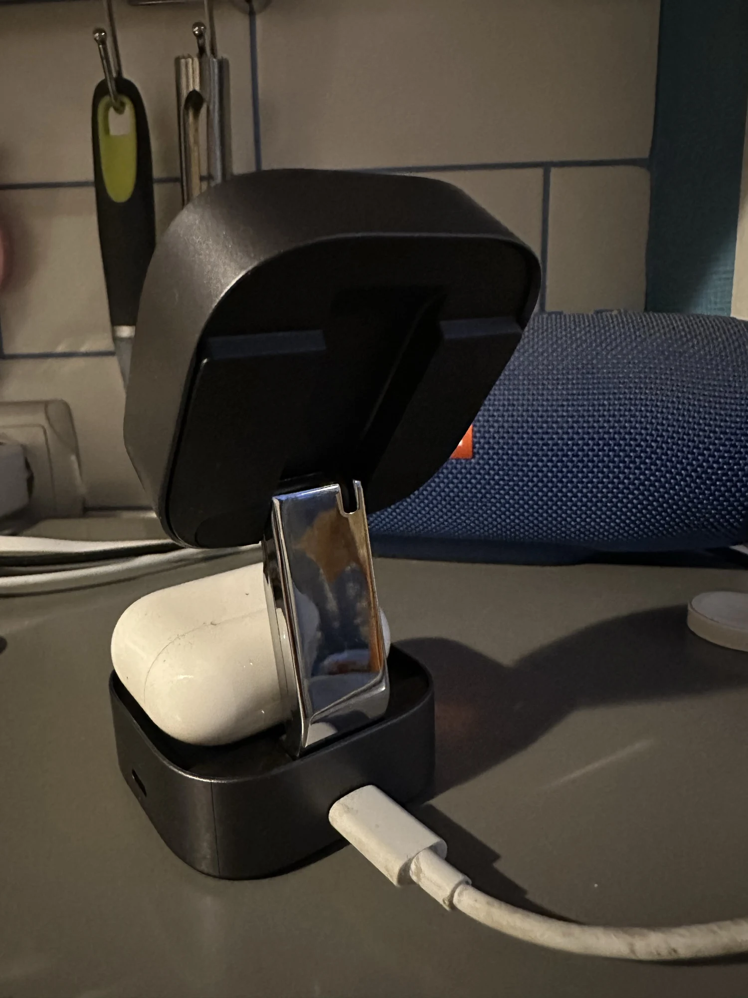 Из неочевидных плюсов именно этой зарядки: угол регулировки относительно плоскости стола, позволяет использовать данную подставку для видеозвонков с компьютера или apple tv, когда используется камера айфона. Во многих других зарядках, угол сильно ограничен и получается так, что камера (основная) всегда смотрит в пол, но не здесь.