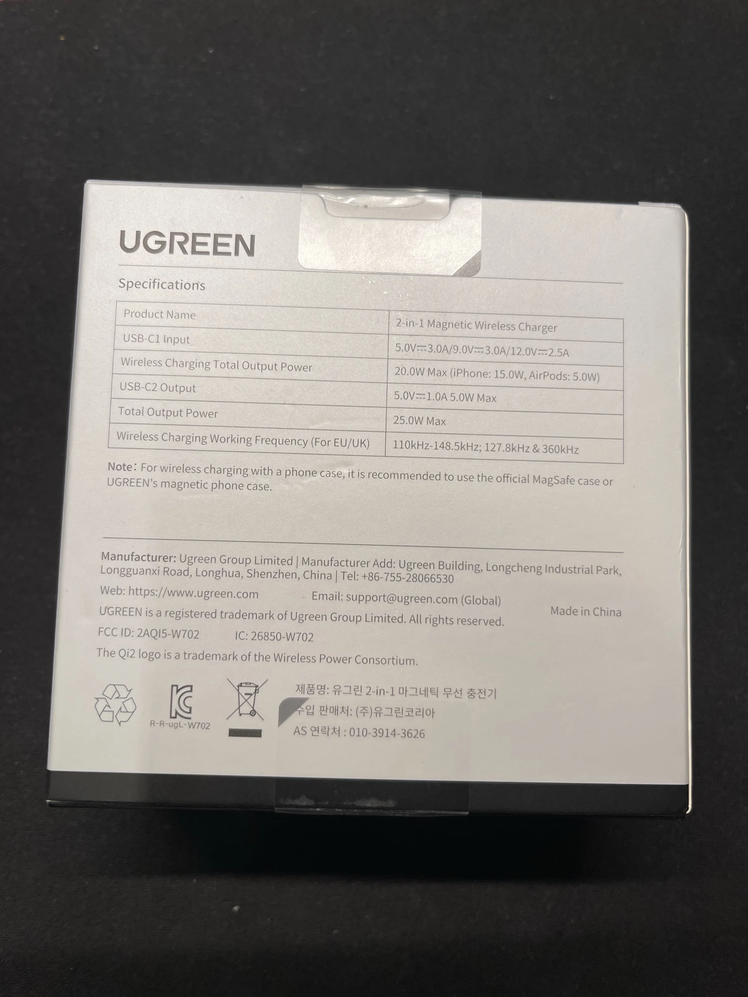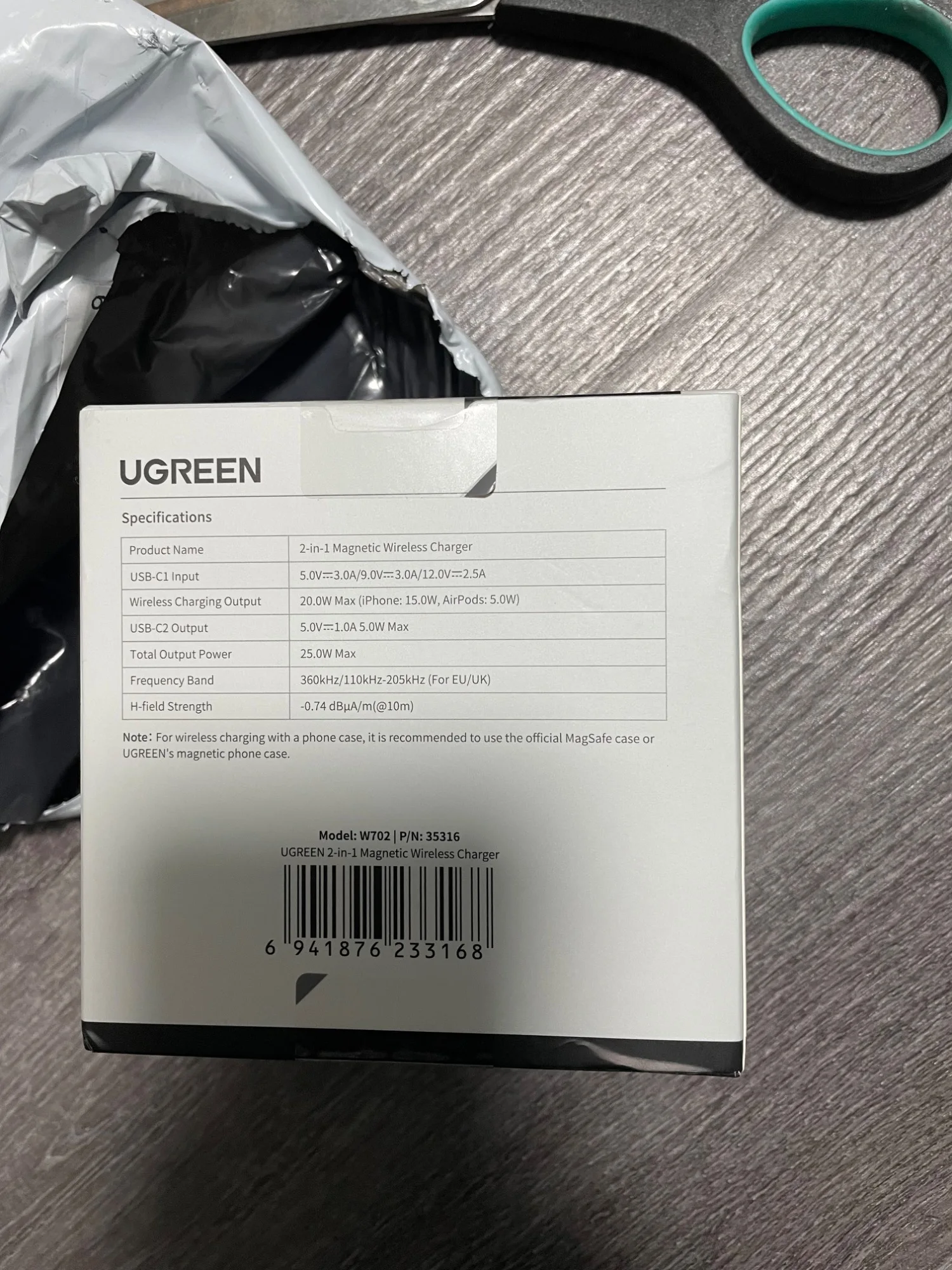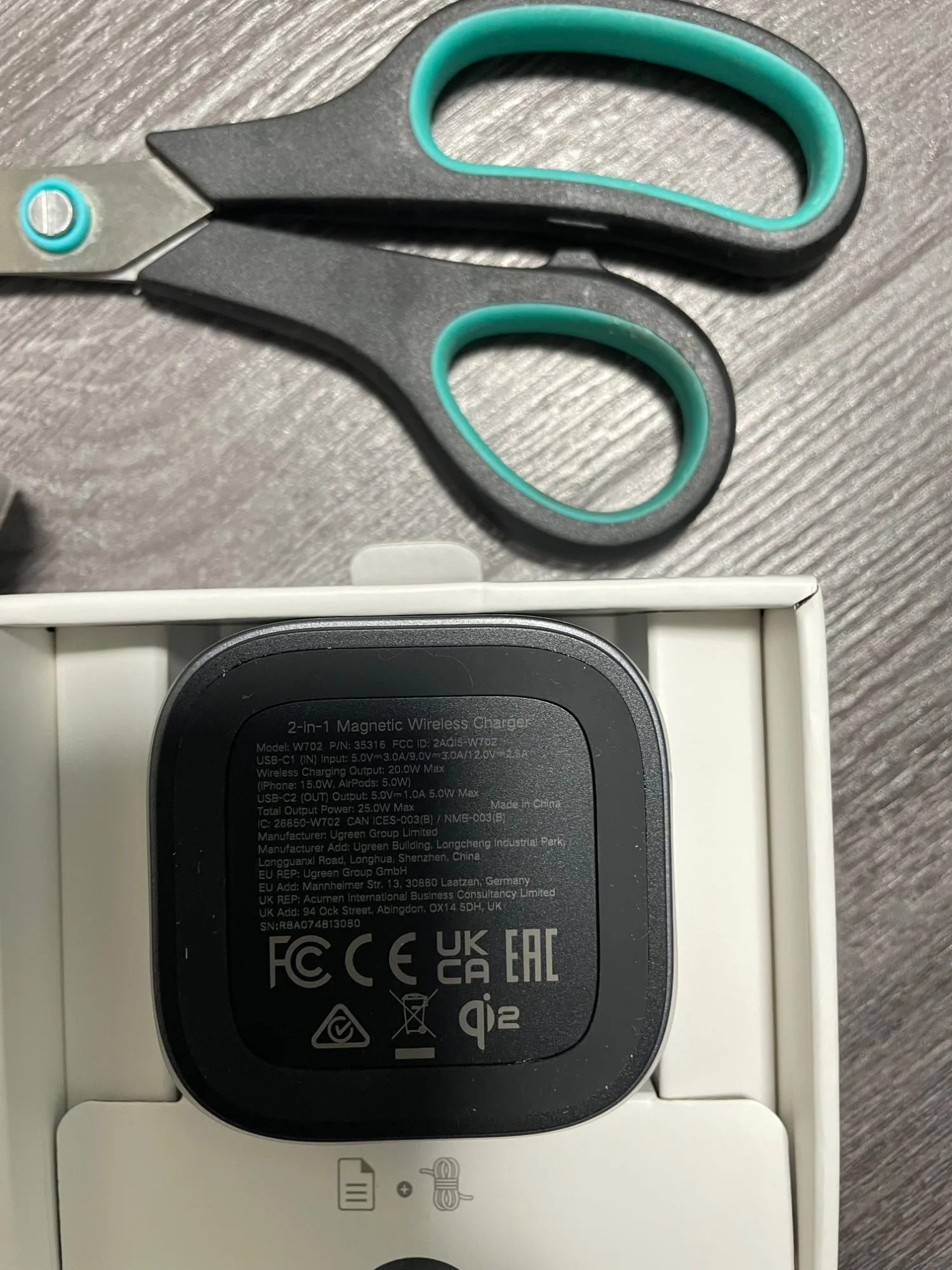Зарядка дошла за 22 дня до г. Люберцы. Упаковка, простой пакет. Но вроде все нормально, даже коробка не сильно помялась. Сразу попробовал заряжать. Всё работает. И телефон заряжает, и наушники. Инструкции на русском нет,но вроде как все понятно. Телефон Samsung S25+,наушники Soundcore a40(все в чехлах).