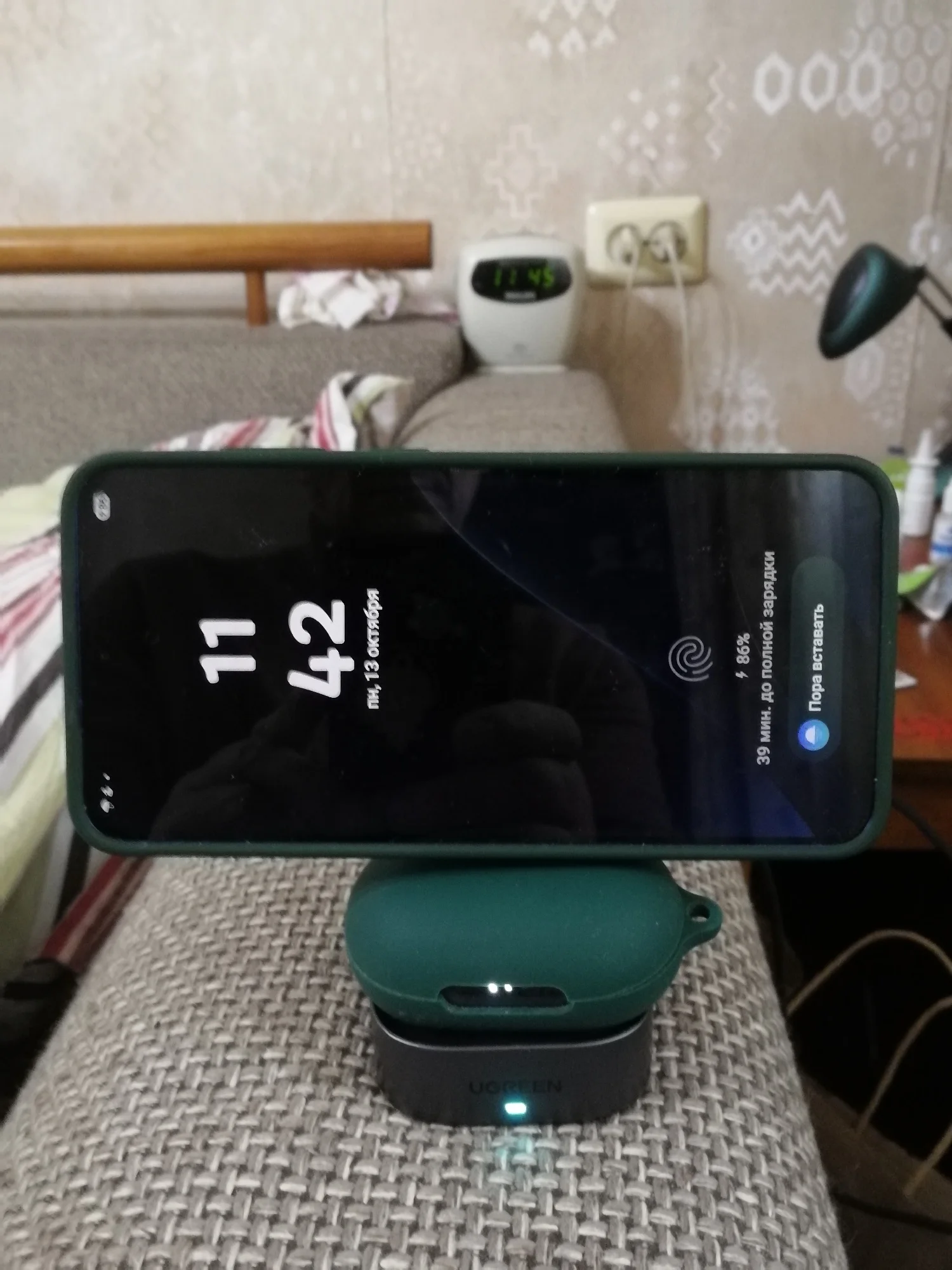 iPhone 16 Pro Max прибатарее 66% заряжает мощьностью 20w. тяжелая, увесистая. одновременно заряжать телефон и наушники не удобно или необходимо повернуть телефон. в «холостую» кушает до 1w.