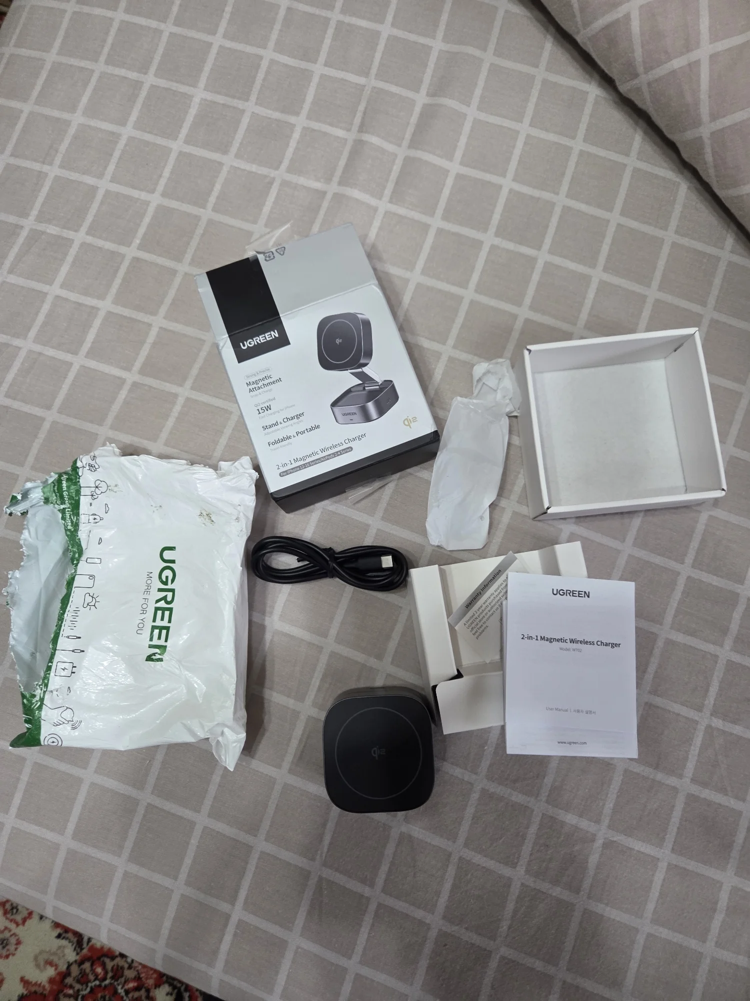 удобная зарядка для многих устройств, комплектеый кабель мягкий, зарядка тяжеленькая, магниты сильные, греется меньше чем оригинальная зарядка от apple, единственно жаль что нет магнитов в месте для зарядки наушников, но если положить поглубже то зарядает нормально, покупкой доволен, рекомендую.