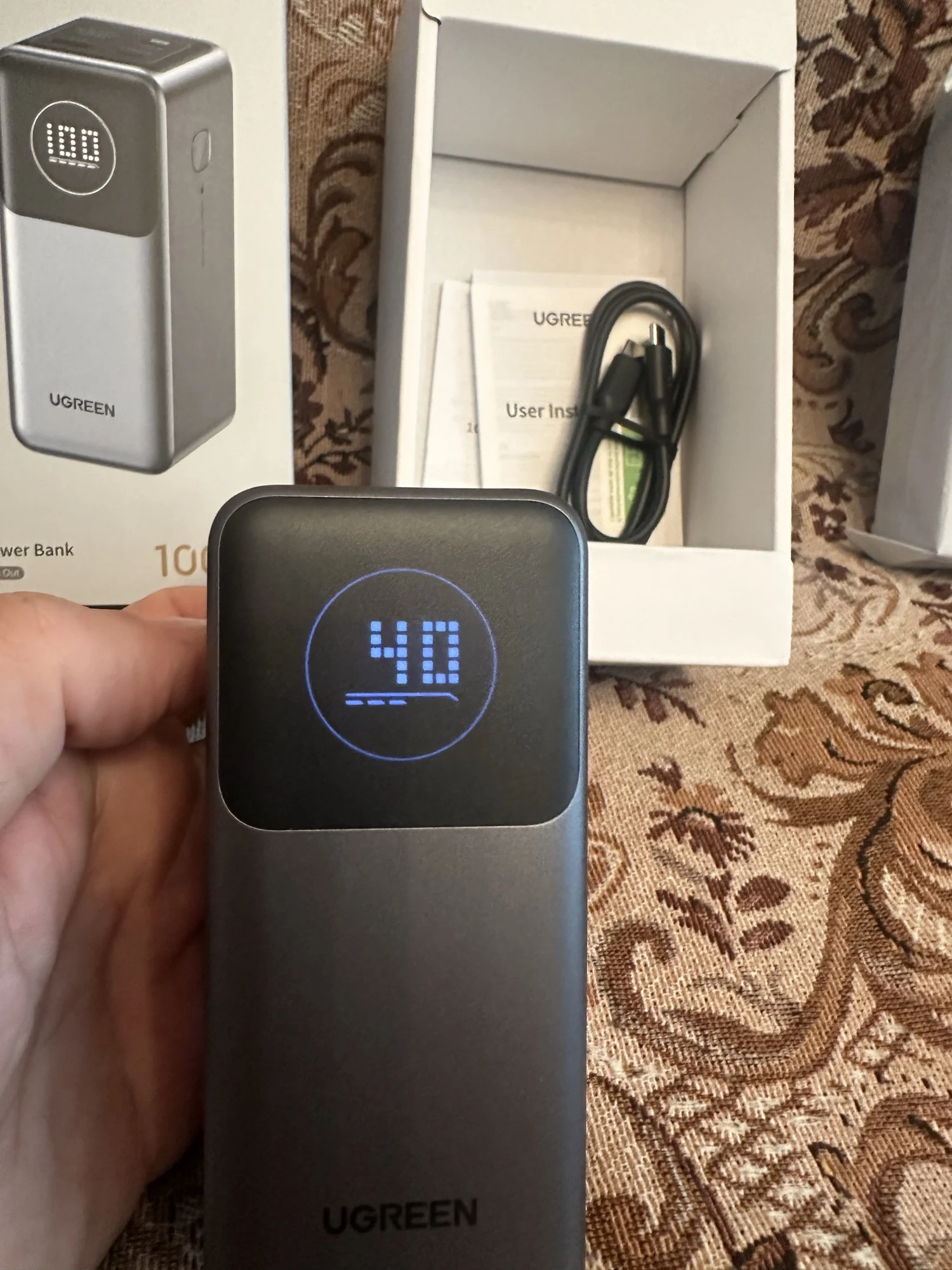 ИДЕАЛЬНО!!! Доставка в срок, но из Москвы, точнее где то из Домодедово, сроки прям большие назвали мне, хотя живу в Москве!!? Но несмотря на все, пришло в целости и сохранности, хотя обёртка так себе, все на коробку полагаются, что спасёт!! Материал добротный, 100w имеется, заряжает как положено, маленький достаточно для такой ёмкости, но толстенький. Доволен как слон!!! Ни разу не брал повербанки этой фирмы, взял на пробу посмотрим, сколько прослужит!! Продавцу спасибо, рекомендую!!!