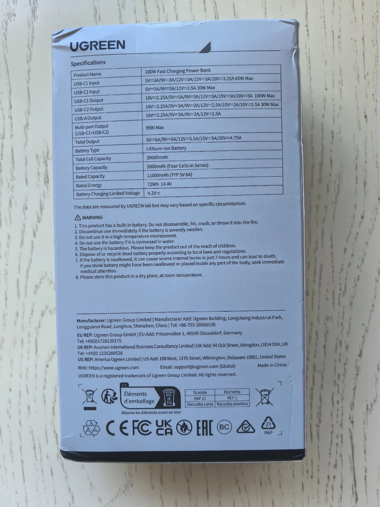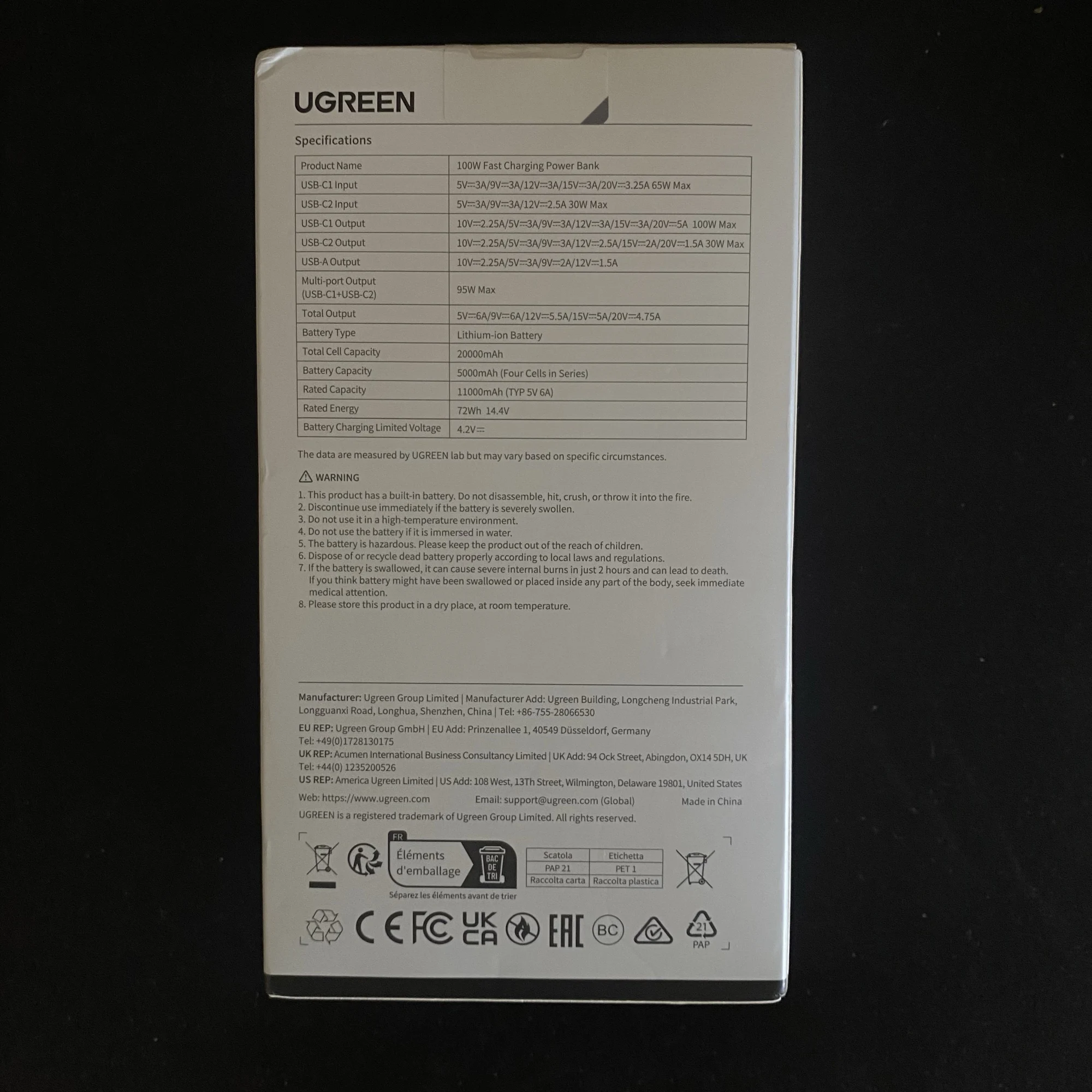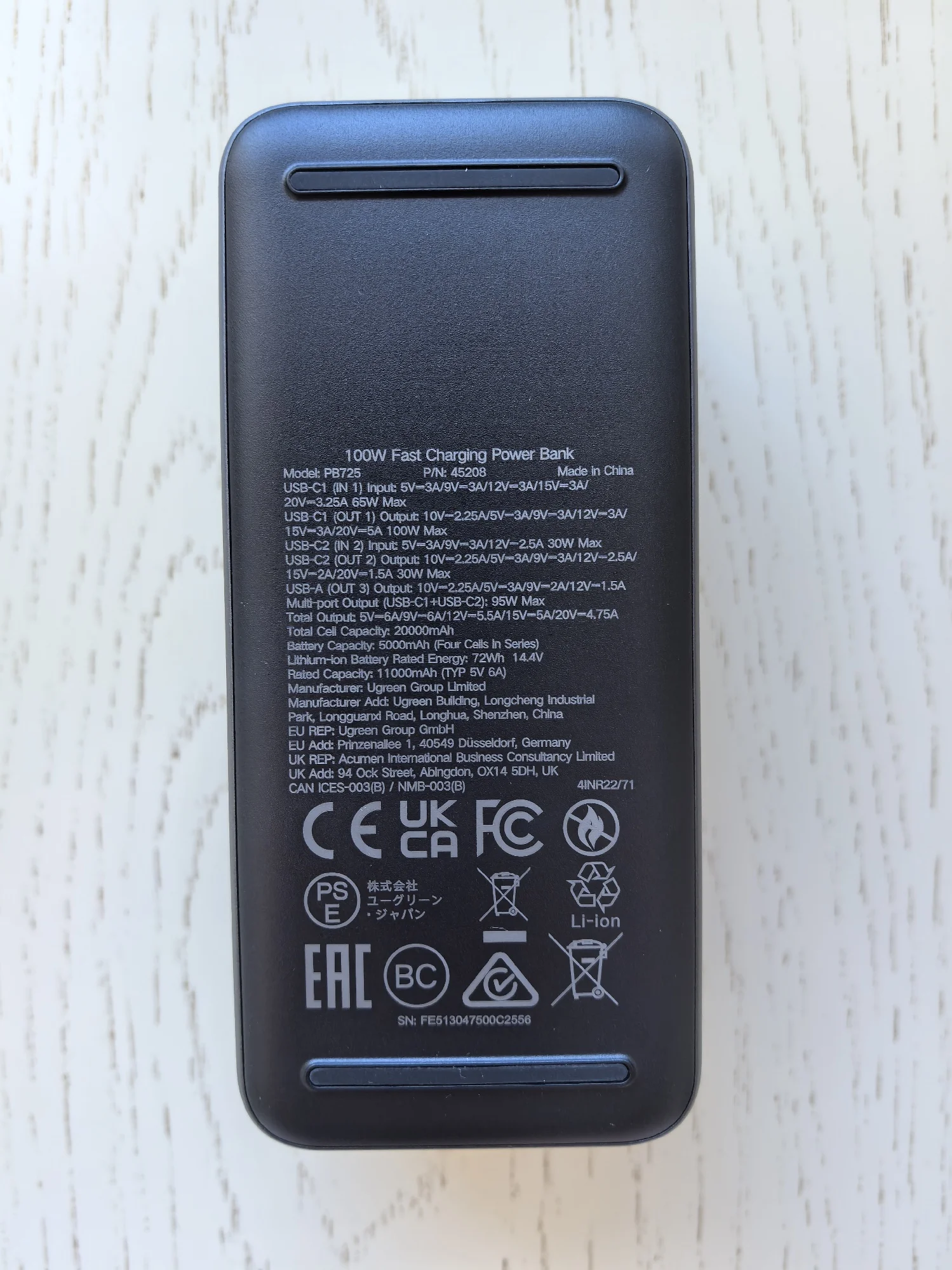 Если покупать повербанк ёмкостью 20000Mah, какова будет мощность на портах? На официальном сайте Ugreen, есть такой повербанк, но его мощность равна 130W