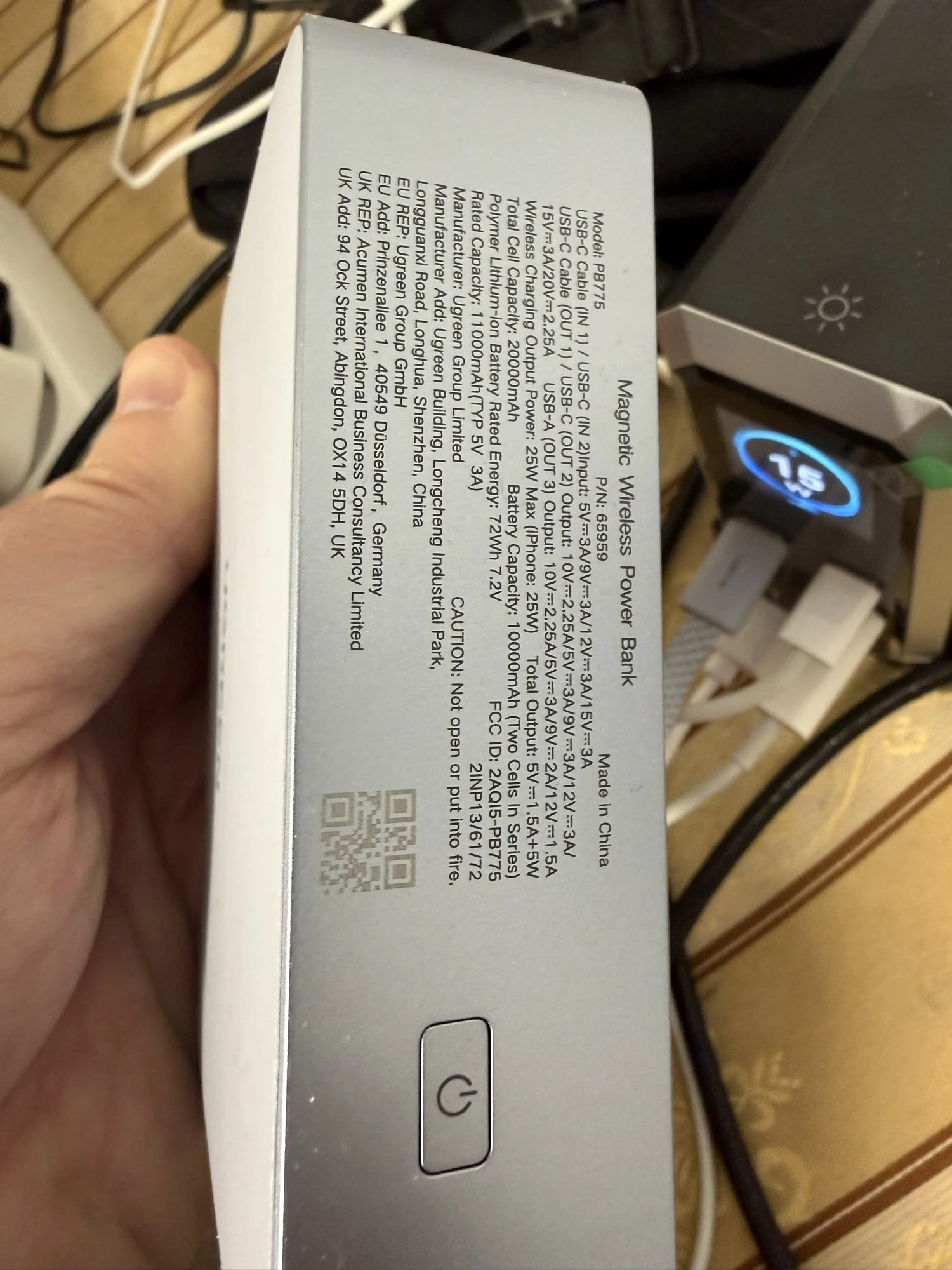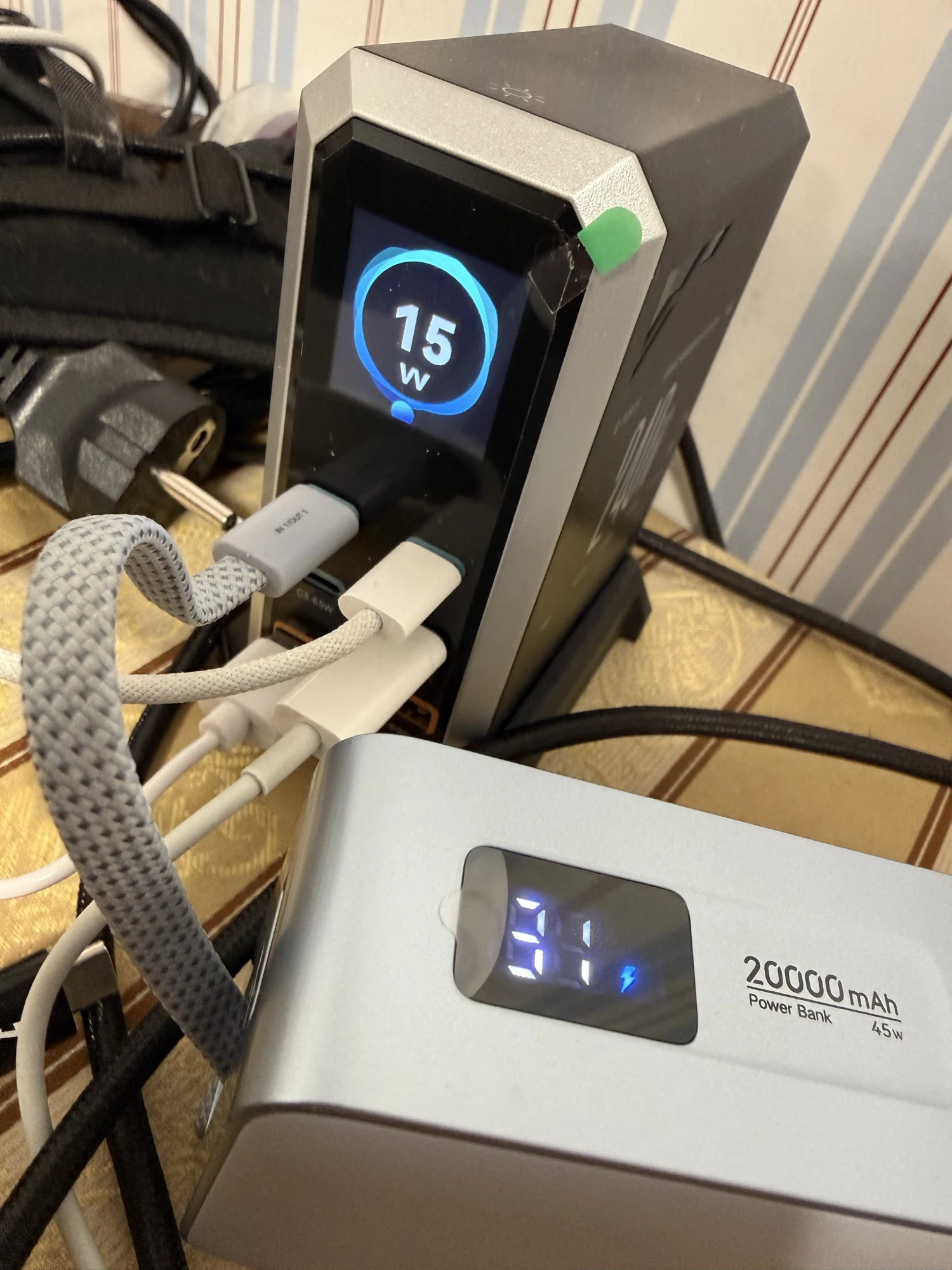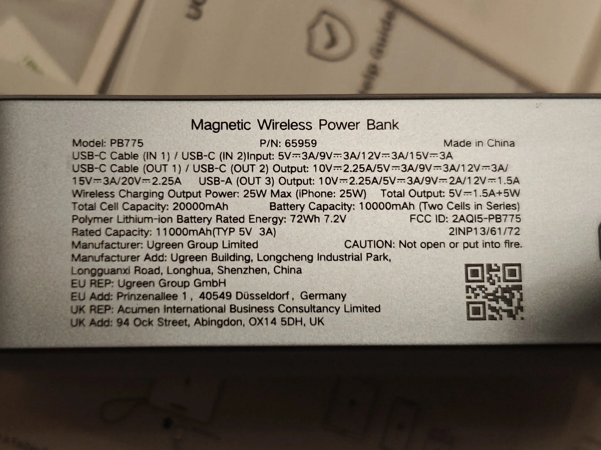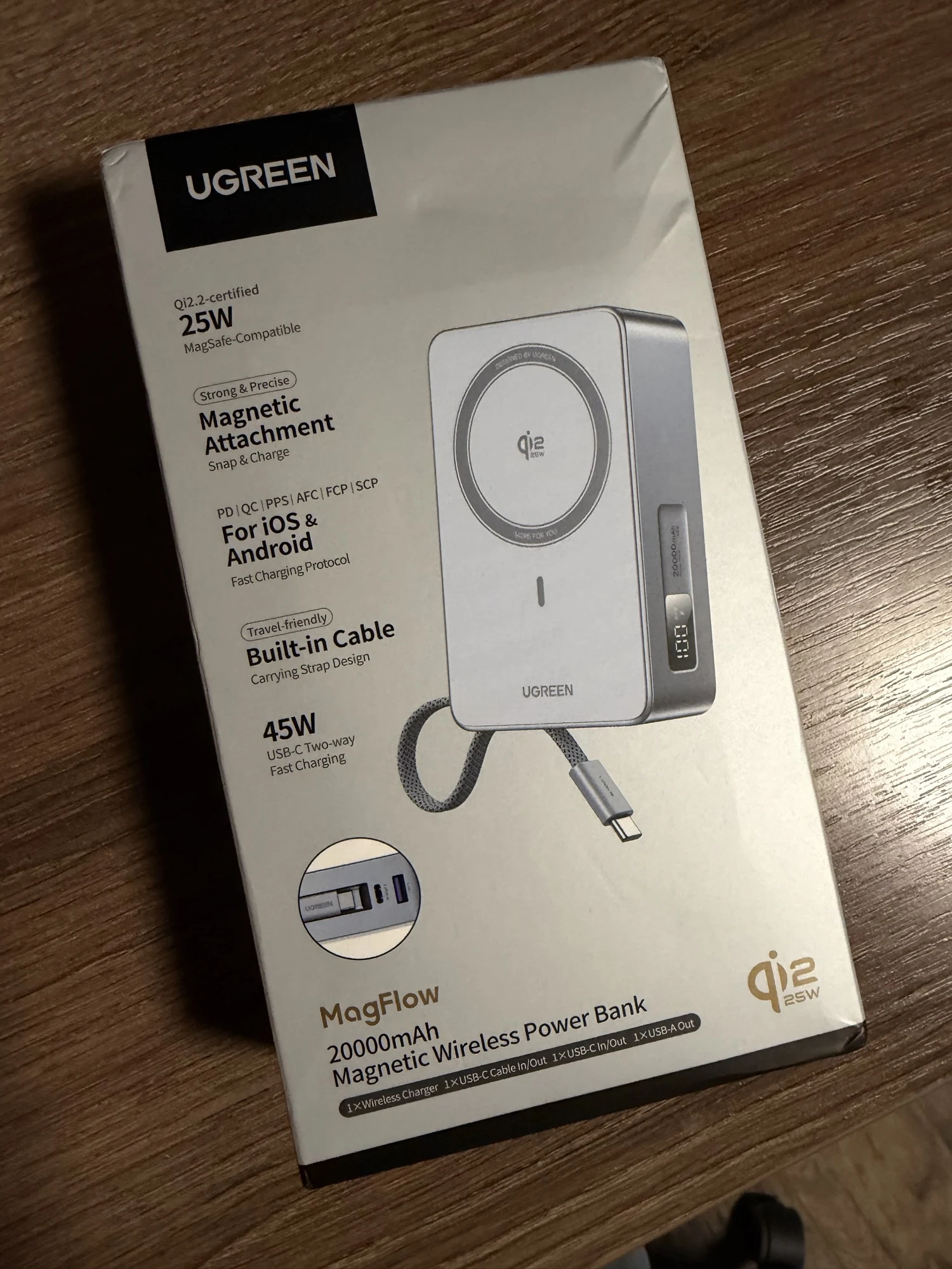 Очень классный пауэрбанк! В руках ощущается как премиум устройство. Кнопка включения активирует дисплей на котором отображается остаток заряда в батарее. Со стороны магнита покрытие софттач, точно не будет царапать корпус смартфона. Купил на 20000 mAh чтобы сравнить с таким же только на 10000 mAh. Разница только в толщине, а в остальном всё отлично. И тут толщина играет ещё роль держателя подставки для смартфона. Так как имея такую толщину смартфон можно ставить и в книжном, и в альбомном варианте. И да, я использую его с iPhone 17 Pro max. У спургуи используется с тонким поуэрбанком, а я с толстым, так как я езжу в командировки и в дороге иногда нахожусь несколько дней. В общем все эти поуэрбанки от Ugreen просто супер. Рекомендую👍