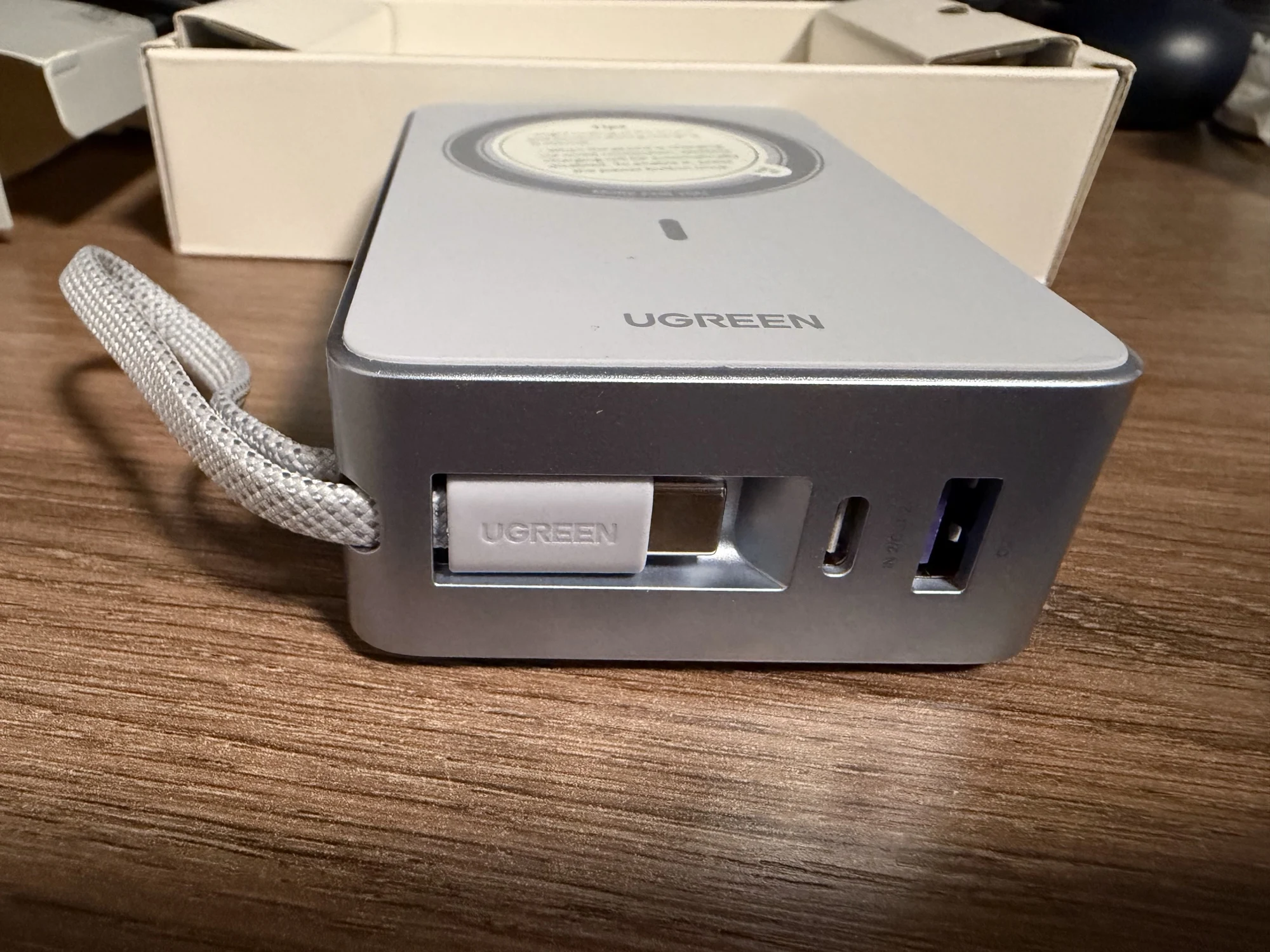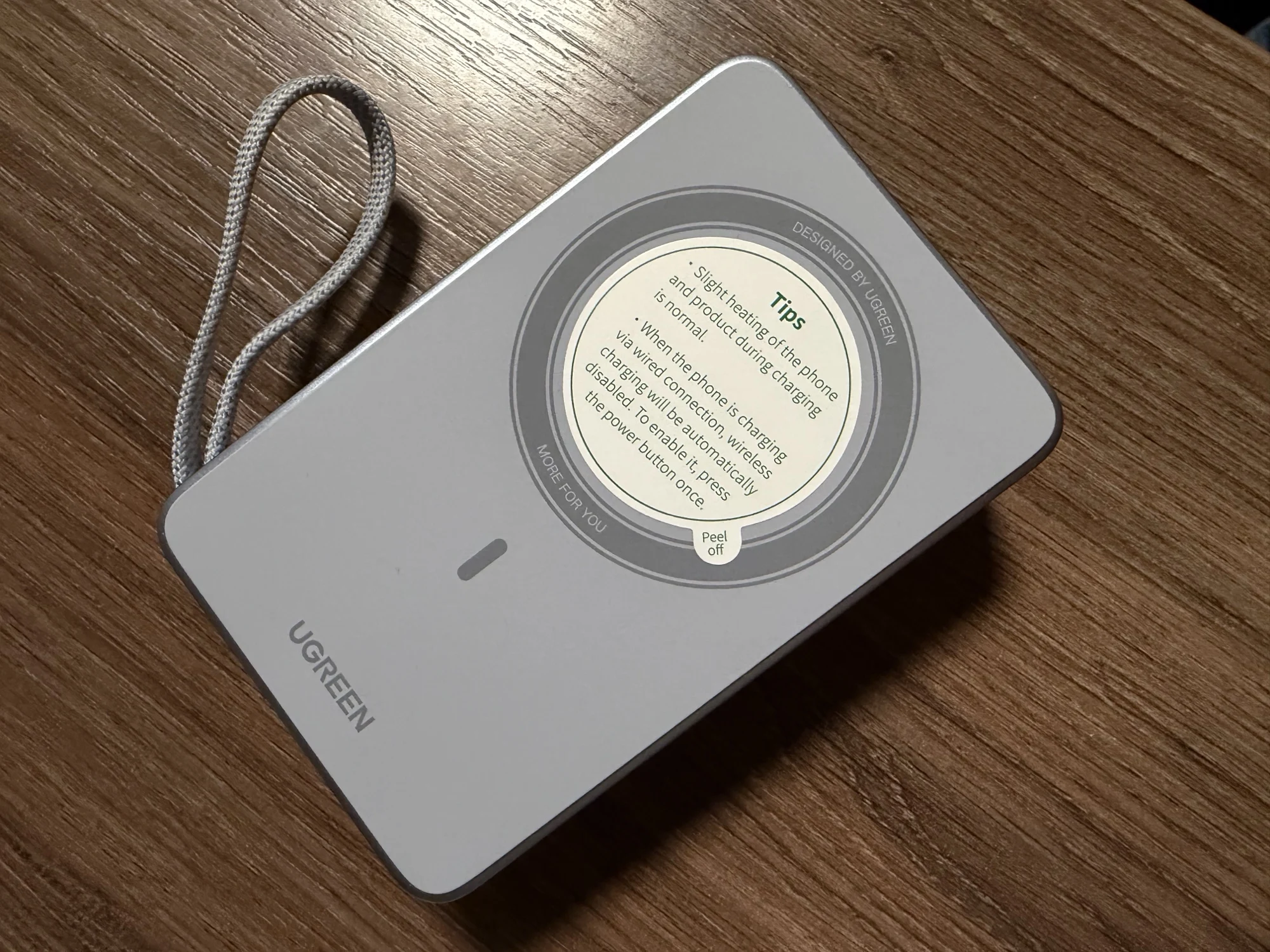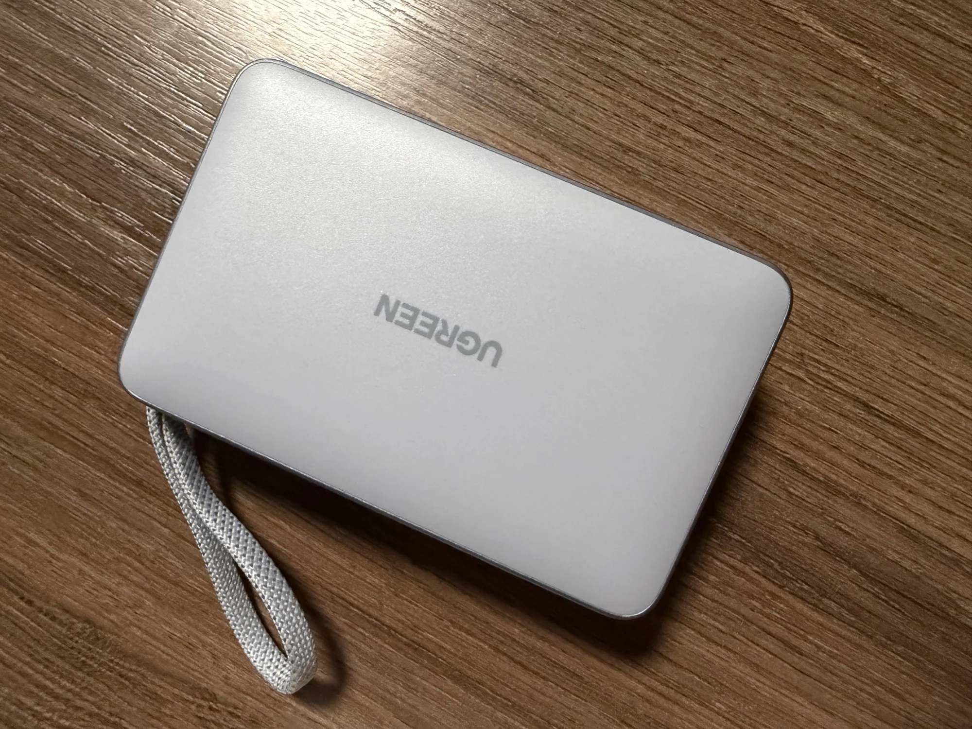Довольно компактный для своего объёма, увесистый, из приятных материалов. Быстрая зарядка присутствует, по крайней мере через встроенный провод. беспроводная зарядка тоже хорошо работает. Единственное чего мне кажется недостаточным, всего 1 USB A, ещё б 1. но если он крепкий, то и ладно. UGREEN держит марку, можно платить.