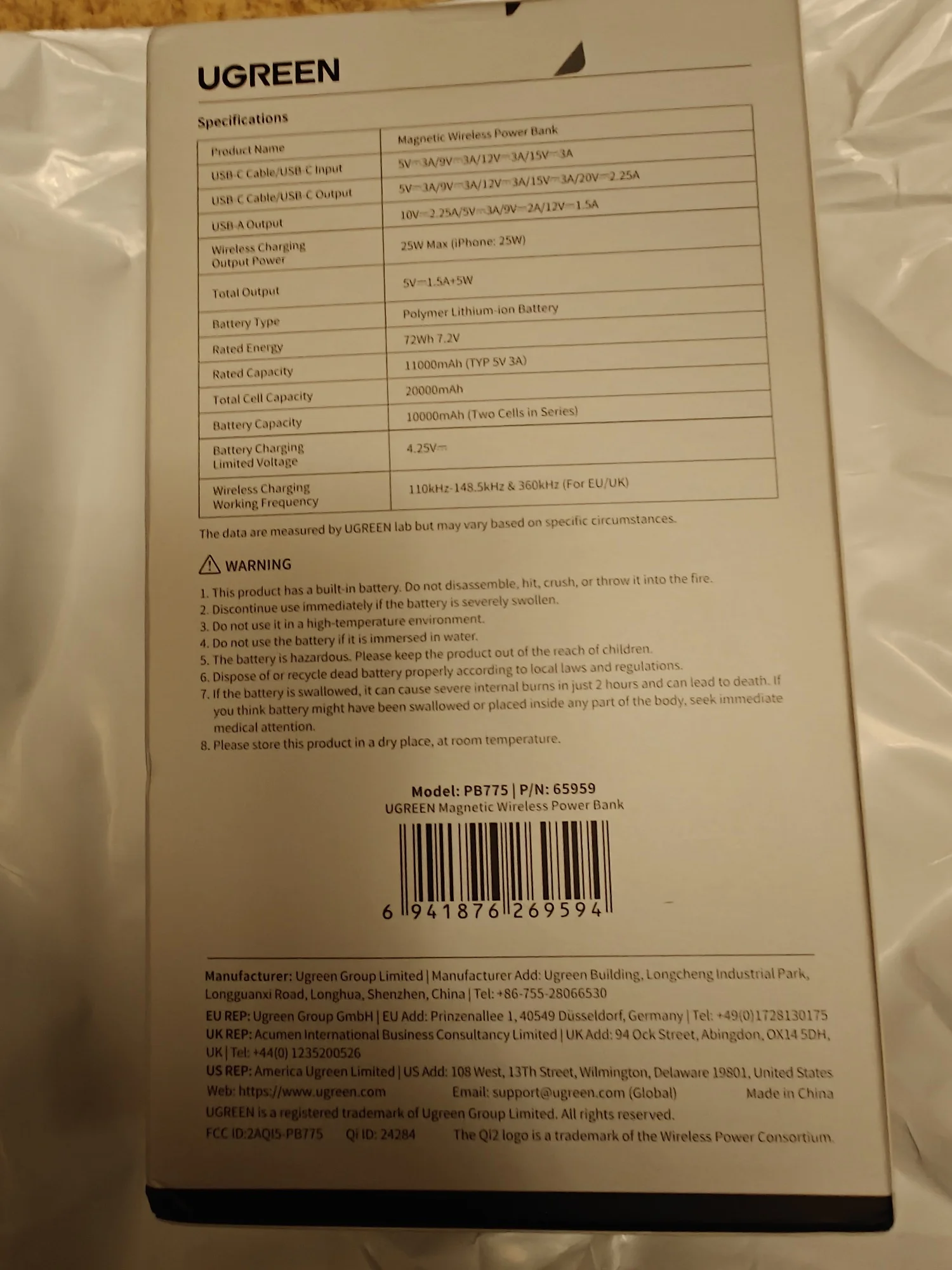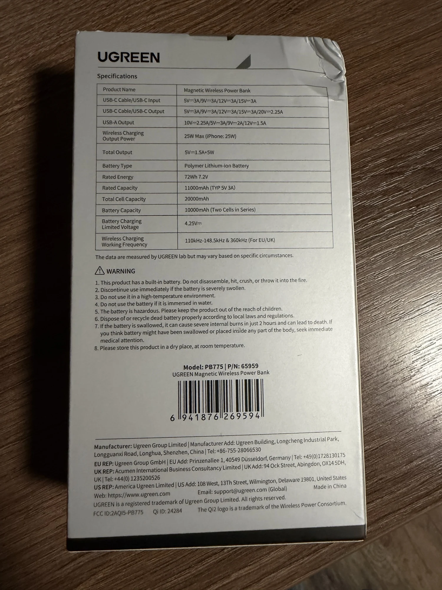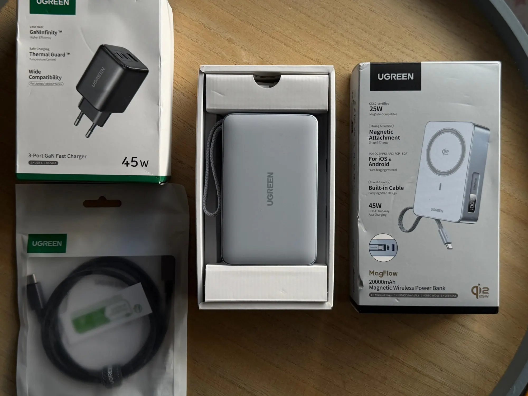 Довольно компактный для своего объёма, увесистый, из приятных материалов. Быстрая зарядка присутствует, по крайней мере через встроенный провод. беспроводная зарядка тоже хорошо работает. Единственное чего мне кажется недостаточным, всего 1 USB A, ещё б 1. но если он крепкий, то и ладно. UGREEN держит марку, можно платить.