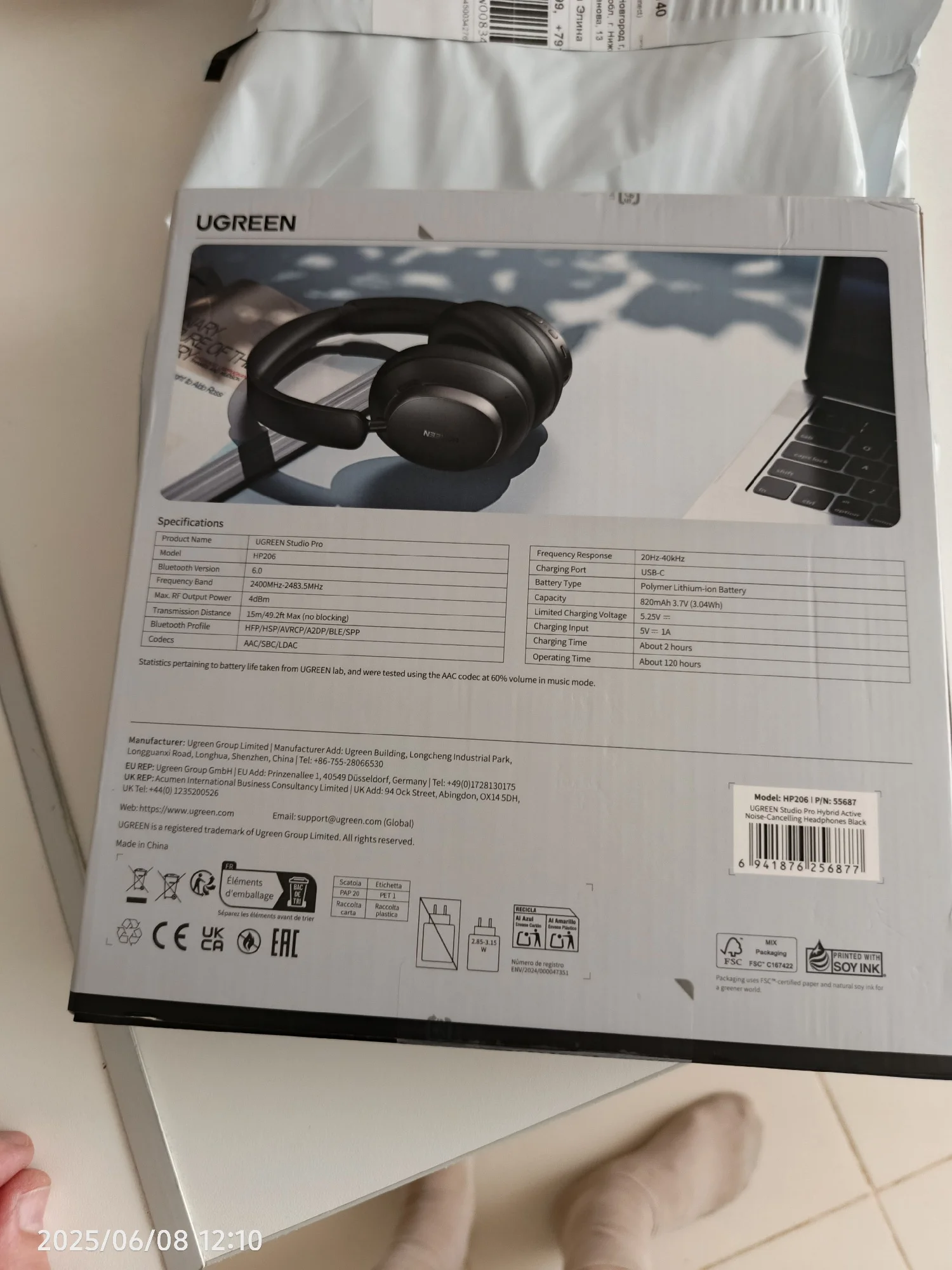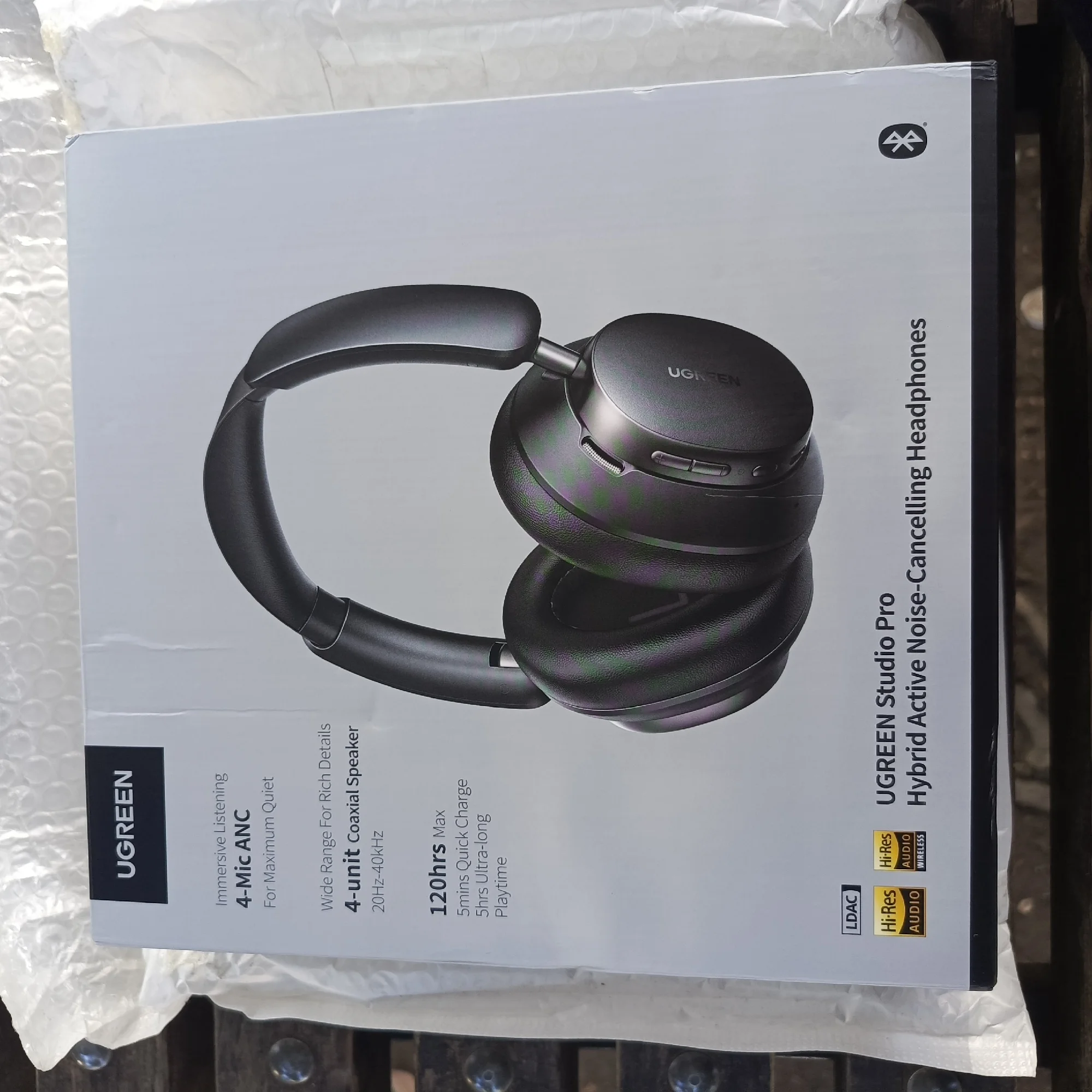 С чего бы начать заказывал я наушники 1 марта, по карточке доставка должна была прийти 7 марта приехало 5 марта, (за что отдельное спасибо экспресс доставки). 5 дней для меня стали очень долгие (я очень люблю слушать музыку, миломан) когда пошел забирать удивился тому что нужно было забирать с специального хранения, забрал красиво все упаковано в свою собственную ugreen упаковку, без вмятин, вся красивая вскрывать было обидно. Но не зря вскрыл коробка лишь слегонца в одном месте помята и все, открыл включил очень сильно удивился звуку (честно сказать рыдал слушая стили hardcore hardstyle dreemcore дапстеп транс) настолько качественно звучит что просто удивился за такой прайс 4000, я купил за 2899. Ну и ещё скачал приложение отдельно можно производить настройку отдельно тоже топ и быстро все подключилось. Thanks Ugreen for such great headphones. I'll be happy to order more of your devices in the future. Thanks for the Ugreen Studio Pro.