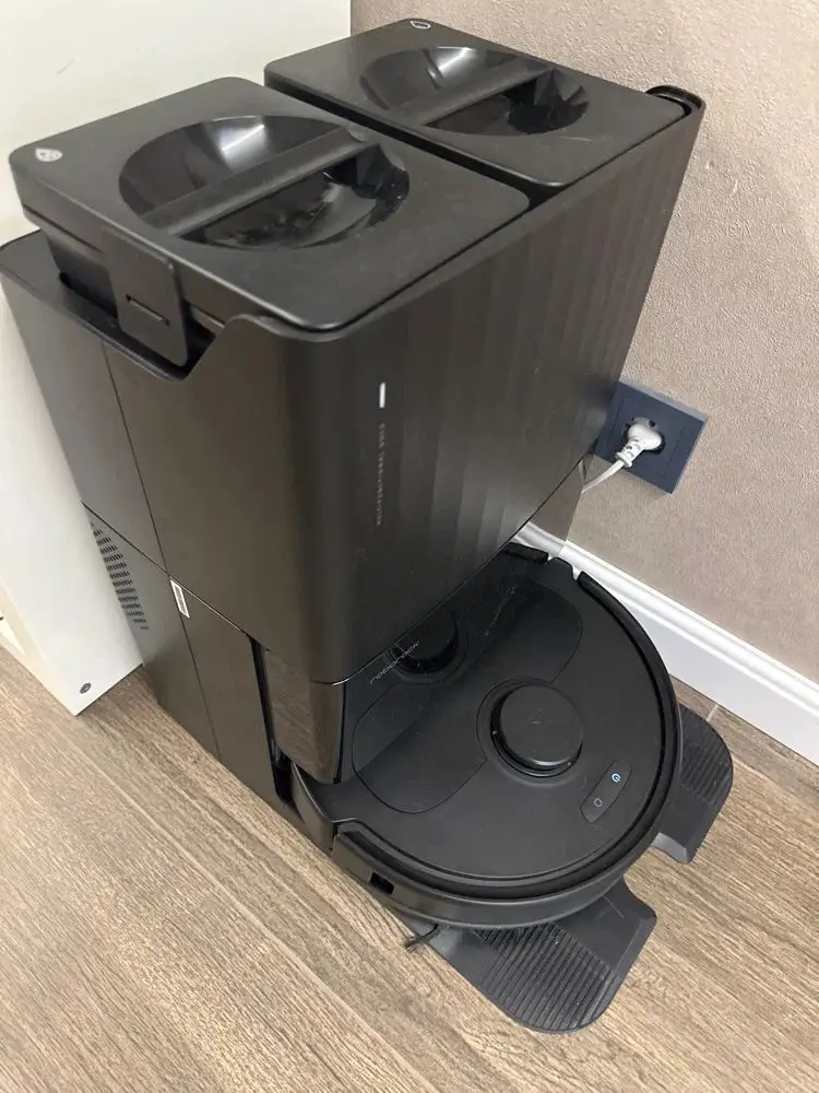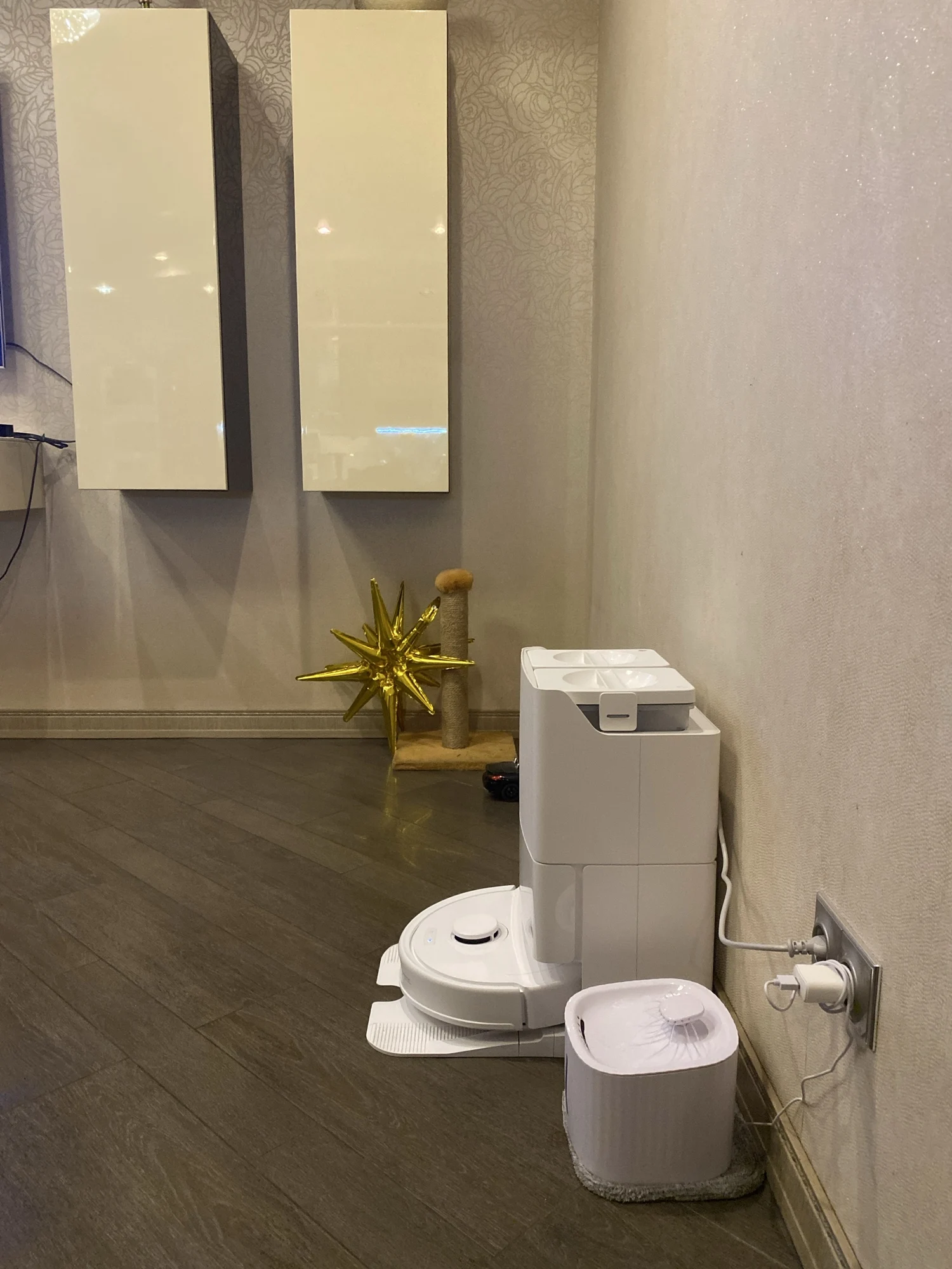 это второй робот пылесос который у меня появился. хотелось более умного в наше время. старый уж больно часто стал терять базу. взяли по купону в чёрную пятницу за 28000 рублей. приехал дней через десять, плюс три дня не звонил курьер. пришлось ехать забирать самому в транспортной компании. собрали все за пять минут. а вот разобраться с многочисленными функциями в приложении, пришлось потратить вечер до самой ночи. но когда все изучил самостоятельно, все стало просто. больше всего удивило насколько тихо он работает! отлично убирает пыль и хорошо моет пол. из минусов, это сразу бросилось в глаза при распаковки, серый кабель к полностью чёрному пылесосу! ну вы что серьёзно? второй серьёзный минус это то, что он пять сантиметров от плинтуса не моет, но робот с выдвижной ногой уже стоит в два раза дороже. когда работает газовая станция очистки, это довольно шумно. функцию сушки тряпки отключил, можно было бы сделать и меньше по времени этот процесс, но минимальное значение два часа. это сколько энергии будет использовано, чтоб два часа феном сушить тряпку, серьёзно! а ещё есть и на четыре часа установка 😁 ! так же поставил максимальный отрезок времени для полоскания тряпки, чтоб уборка выполнялась быстрее. ну дома не бывает такой грязный пол, чтоб после каждой комнаты её полоскать. дома как никак женщина убирается, а робот просто в помощь для поддержания чистоты пола. покупкой довольны, будем тестировать, будут минусы ещё, дополнительно напишу. к покупке рекомендую, тем более если цена до 30!