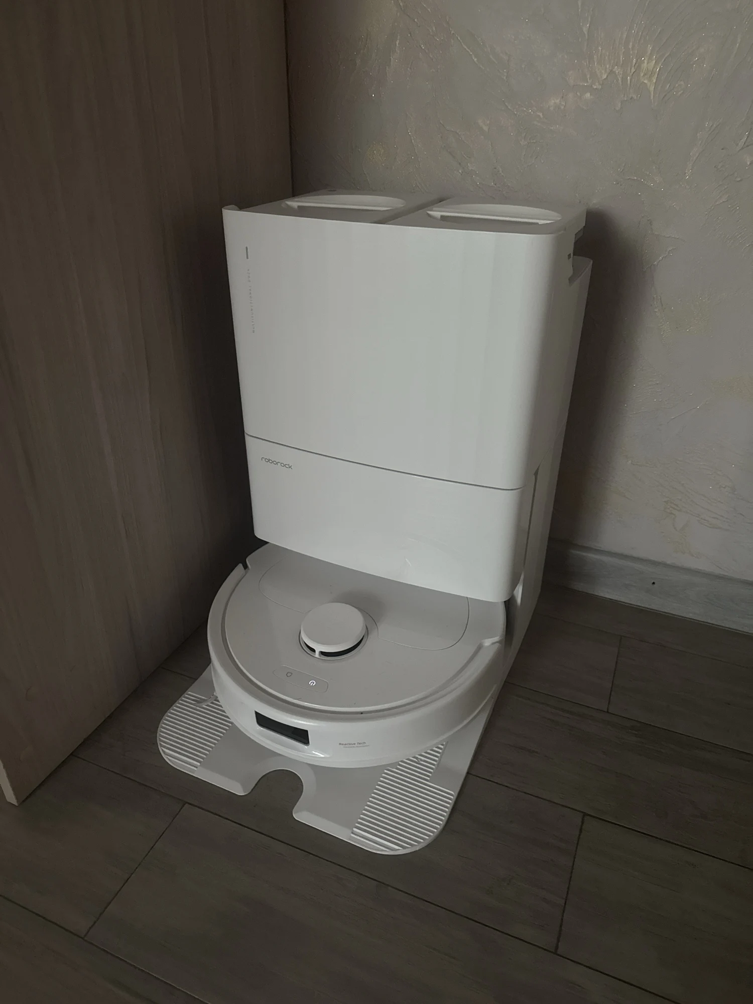 Это наш первый робот пылесос, долго читала отзывы и не пожалела. Для ежедневного поддержания чистоты это отличный вариант. Док станция нужная вещь, не надо опустошать пылесборник, не надо бегать и промывать тряпочки. Теперь убираюсь раз в неделю вручную, можно конечно и реже с таким помощником.