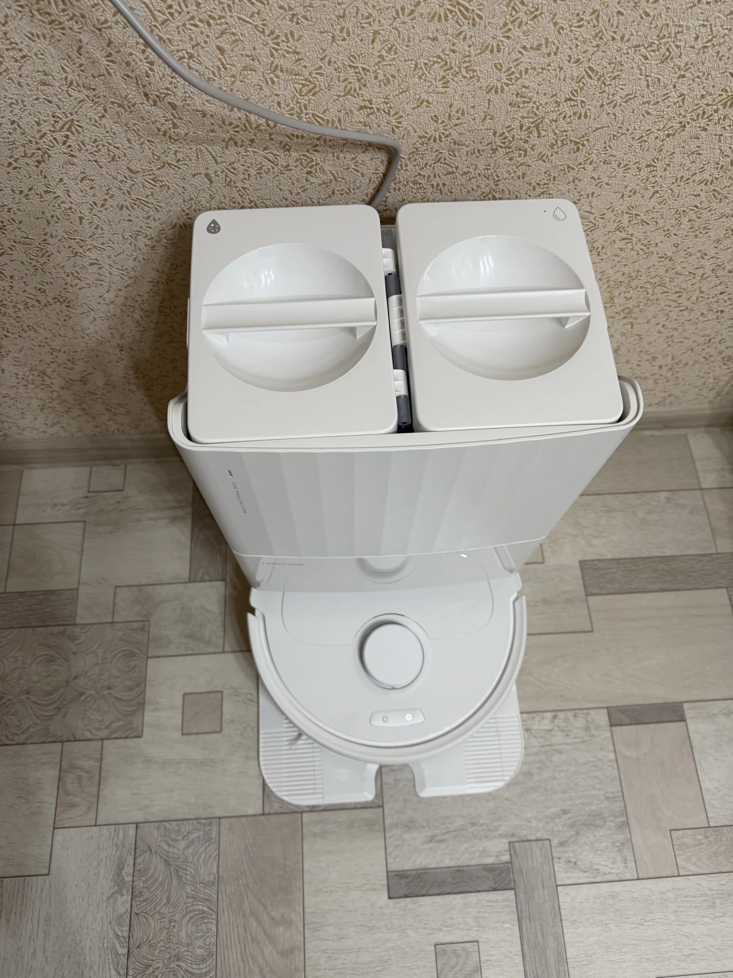 это второй робот пылесос который у меня появился. хотелось более умного в наше время. старый уж больно часто стал терять базу. взяли по купону в чёрную пятницу за 28000 рублей. приехал дней через десять, плюс три дня не звонил курьер. пришлось ехать забирать самому в транспортной компании. собрали все за пять минут. а вот разобраться с многочисленными функциями в приложении, пришлось потратить вечер до самой ночи. но когда все изучил самостоятельно, все стало просто. больше всего удивило насколько тихо он работает! отлично убирает пыль и хорошо моет пол. из минусов, это сразу бросилось в глаза при распаковки, серый кабель к полностью чёрному пылесосу! ну вы что серьёзно? второй серьёзный минус это то, что он пять сантиметров от плинтуса не моет, но робот с выдвижной ногой уже стоит в два раза дороже. когда работает газовая станция очистки, это довольно шумно. функцию сушки тряпки отключил, можно было бы сделать и меньше по времени этот процесс, но минимальное значение два часа. это сколько энергии будет использовано, чтоб два часа феном сушить тряпку, серьёзно! а ещё есть и на четыре часа установка 😁 ! так же поставил максимальный отрезок времени для полоскания тряпки, чтоб уборка выполнялась быстрее. ну дома не бывает такой грязный пол, чтоб после каждой комнаты её полоскать. дома как никак женщина убирается, а робот просто в помощь для поддержания чистоты пола. покупкой довольны, будем тестировать, будут минусы ещё, дополнительно напишу. к покупке рекомендую, тем более если цена до 30!