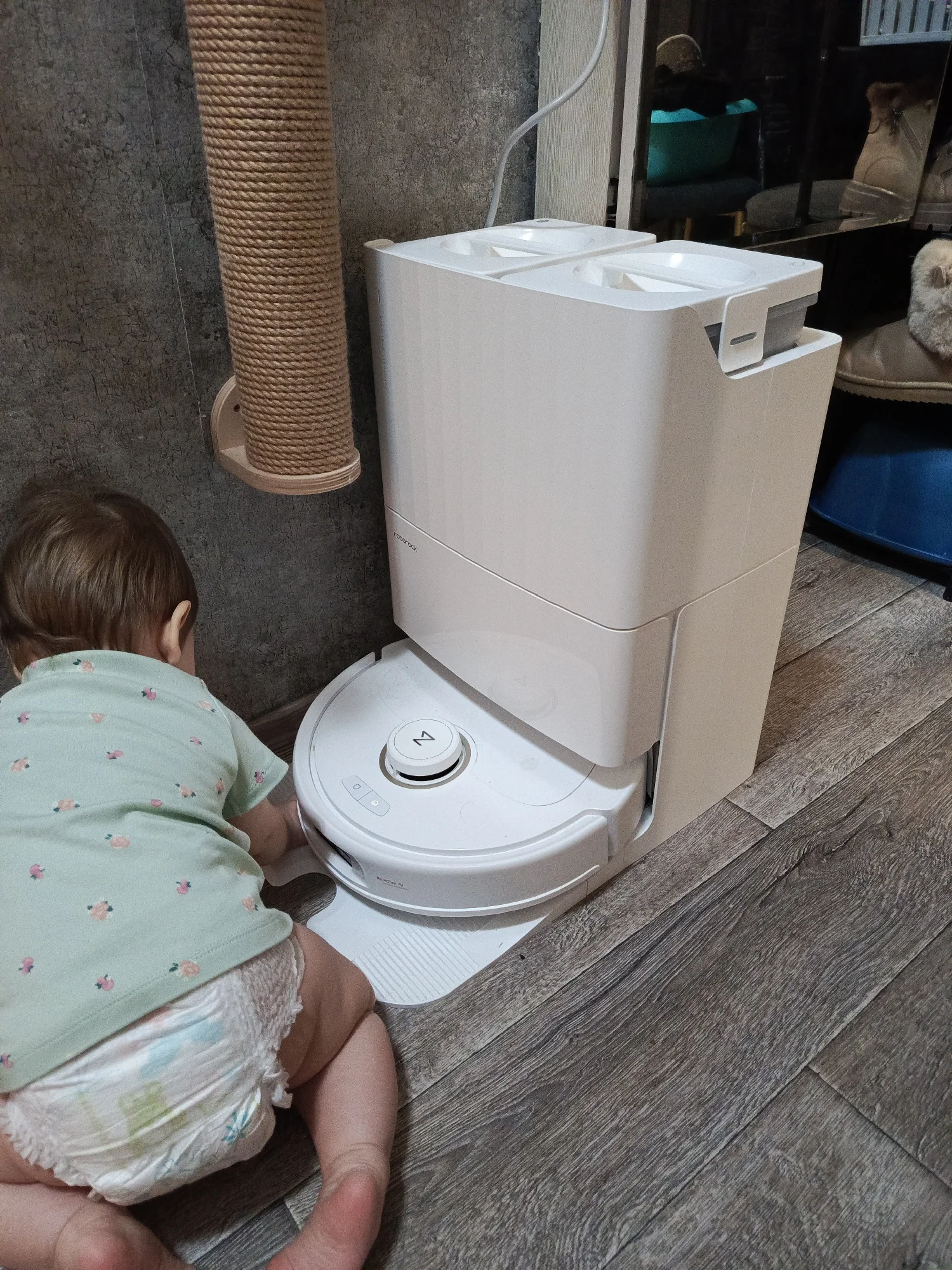 Потрясающий агрегат! Особенно при наличии ползающего малыша. Ведь каждая соринка - во рту витаминка! А тут запустил в тихий час - и всё чисто! Благодать! Углы выметает приемлемо, плинтуса протирает нормально. Ну, раз в месяц для успокоения совести можно пройтись тряпкой и то ничего криминального не обнаружено. Упаковано крайне надежно, в 2 картонные коробки и пенопластовые подложки - никакая Почта России не страшна! Сверху лежит инструкция по быстрому запуску, даже школьник справится как чего подсоединить и подключить. Можно вообще не тратиться на специальные моющие средства, заливать только воду. Я использую воду от сушильной машины - почти дистиллированную. Из минусов могу отметить куцее голосовое управление и невозможность полноценно управлять роботом через Алису. Голосом можно сказать: убери кухню и он будет одновременно и пылесосить и полы драить. А отдельно пропылесосить или помыть полы - только через приложение. Алисой же вообще, можно лишь общую уборку запустить, а по комнатам - нет. Очень понравился удаленный доступ - здорово выручил, когда робот запутался в проводе и я через приложение смог его вывезти из бухты. С учетом цены - всего 40к, эта вещь должна быть в каждом доме и каждой квартире! И да, расходники берите сразу оригинальные, не экономьте. 4к за полный комплект из 2-х фильтров, 2-х щеток, 4 мопов, 3 мешков и 2 роликов - это недорого. Иначе вы рискуете отправить робота в ремонт, если он движком нахватает пыли.