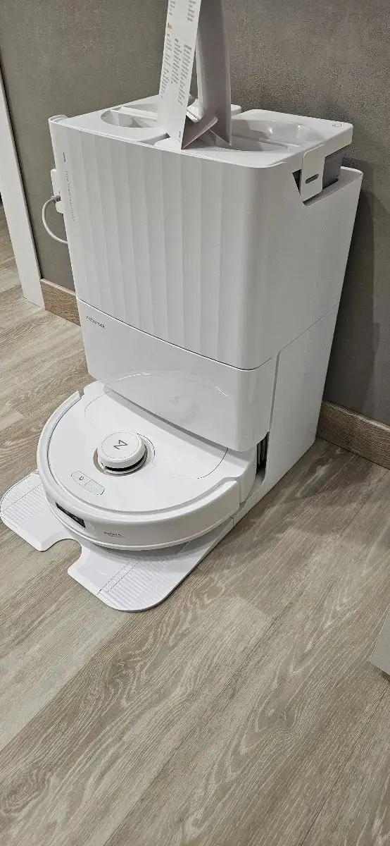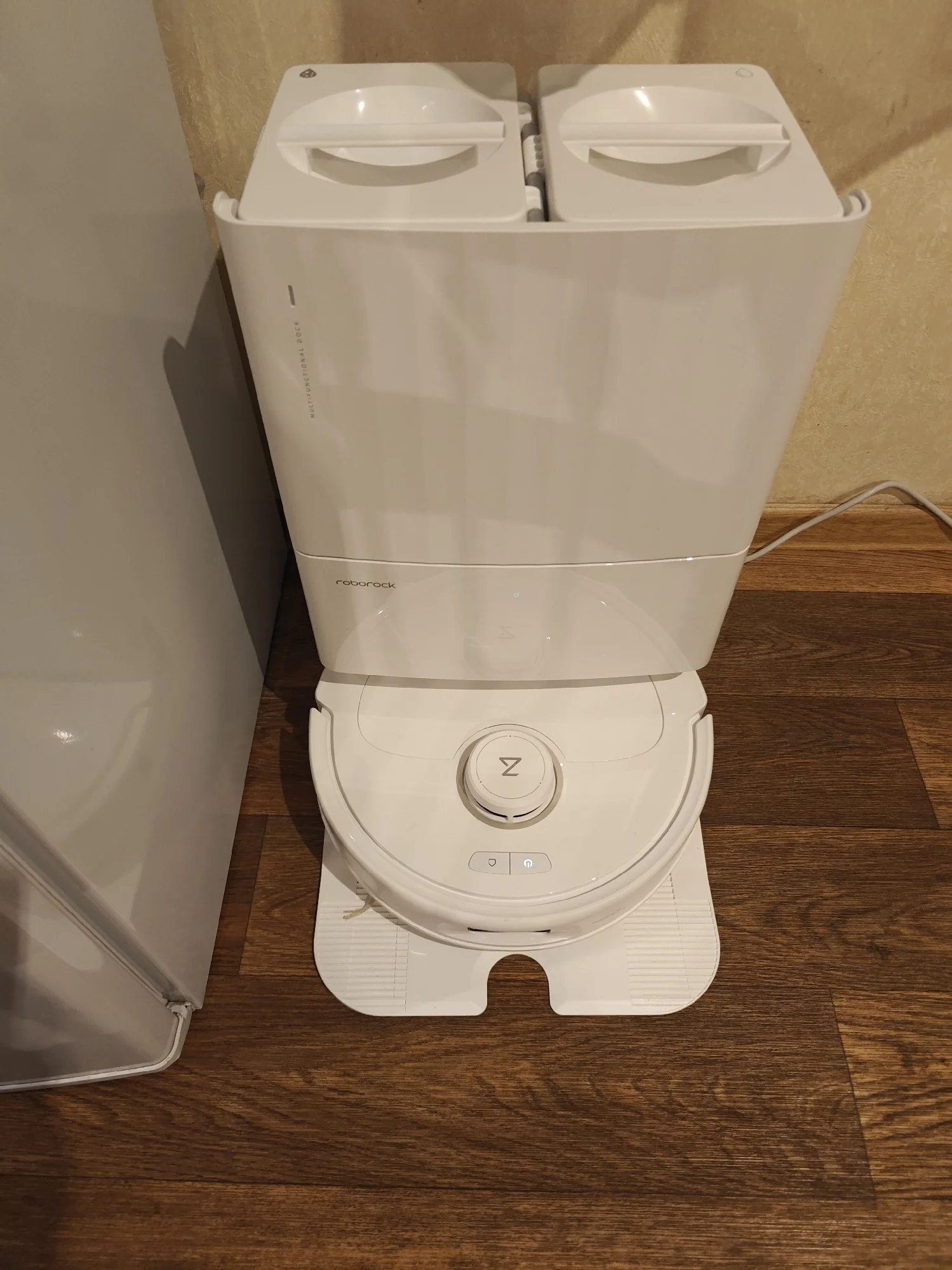 Несколько лет назад был бюджетный пылесос ксяоми, с ним вообще не сложилось - везде застревал, качество уборки было посредственное. Также был моющий пвлесос-ручка Тефаль, опыт его эксплуатацию убедил, что непрофессиональные моющие пылесосы - пшик. Поддавшись импульсу купила в новую большую квартиру роборок Макс в, вдруг он будет мне действительно помогать. Вы знаете, я в таком приятном восторге! Я не скажу, что он справляется на 100%, остаются волосы то тут, то там (у меня сейчас волосопад), углы копят мусор там, где он до них не дотягивается, мойка пола не капитальная - остаются какие-то грязные пятна, если они есть, прилипшие кусочки пищи/очистков. Но я возвращаюсь домой и вижу, что пока меня не было, кто-то убирался! Как приятно осознавать, что вместо тебя кто-то работа! Это действительно видно. Пыль, мусор, кошачья шерсть, чёртовы волосы - все это он как может собирает, и весьма неплохо. Влажная уборка, даже с указанными выше недостатками, действительно имеет смысл. Вода в баке с отработанной водой прям грязная. Запускаю его каждый день или через день, перед уборкой готовлю площади - подбираю все, стулья поднимаю. Если у дочки в комнате бардак, значит просто туда его не направляю) Опыт эксплуатации месяц пока что. Несколько раз приходилось освобождать его от волос или каких-то ленточек, которые он нашел у дочки в комнате. Салфетки пока не меняла, не стирала,он нормально их промывает и сушит. На 75 квадратных метров заявленной площади уходит около 50% заряда (чистой площади выходит чуть больше 50 КВ с из-за всяких шкафо и кроватей). Зарядку настроила в ночной тариф, такая возможность меня безмерно радует) В общем, я довольна, надеюсь, что несколько лет он меня прорадует. База большущая, про это забывать нельзя, но у нас место нашлось. Рекомендую. Купила летом за 45.