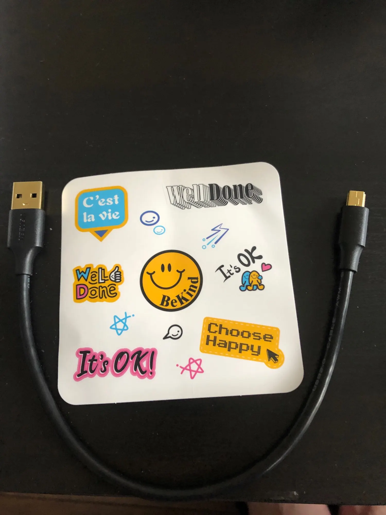 Приехало за три недели, упаковано в фирменный конверт. Кабель работает корректно, данные передает. В подарок продавец положил наклеечки