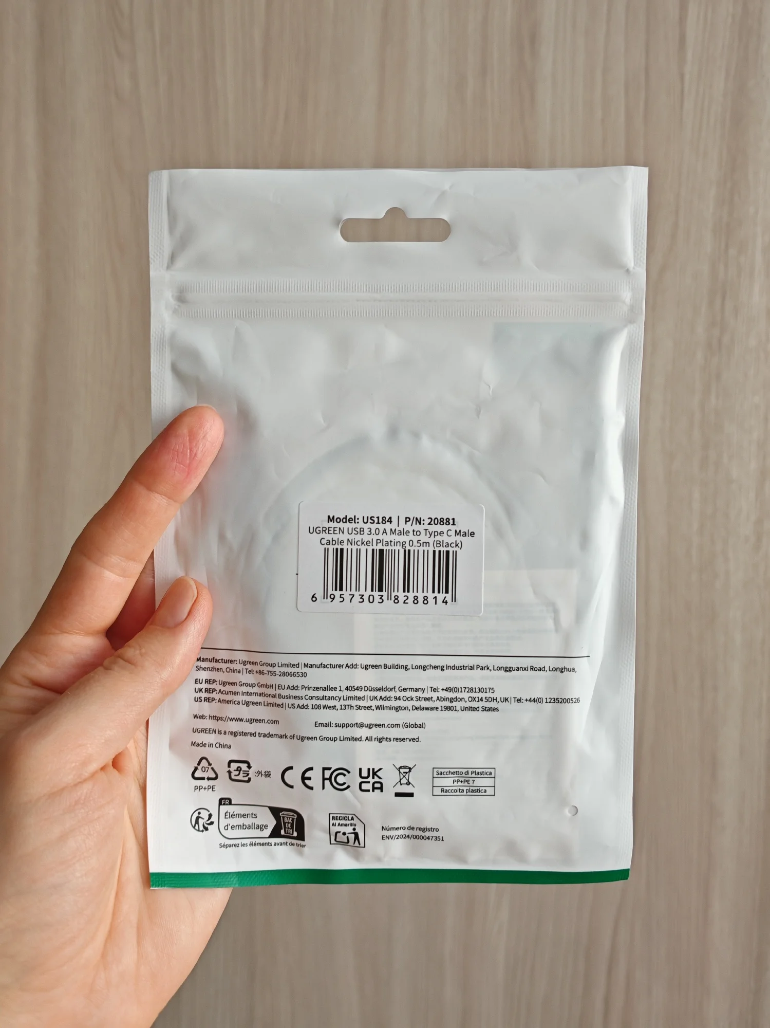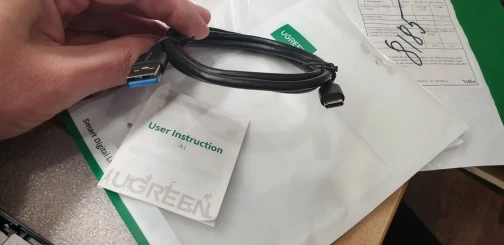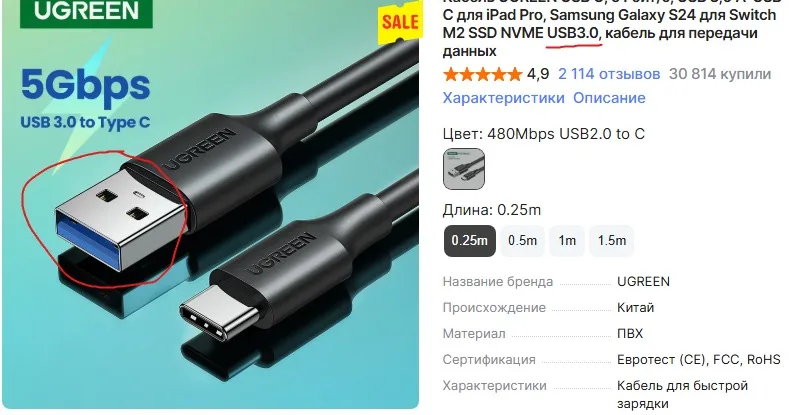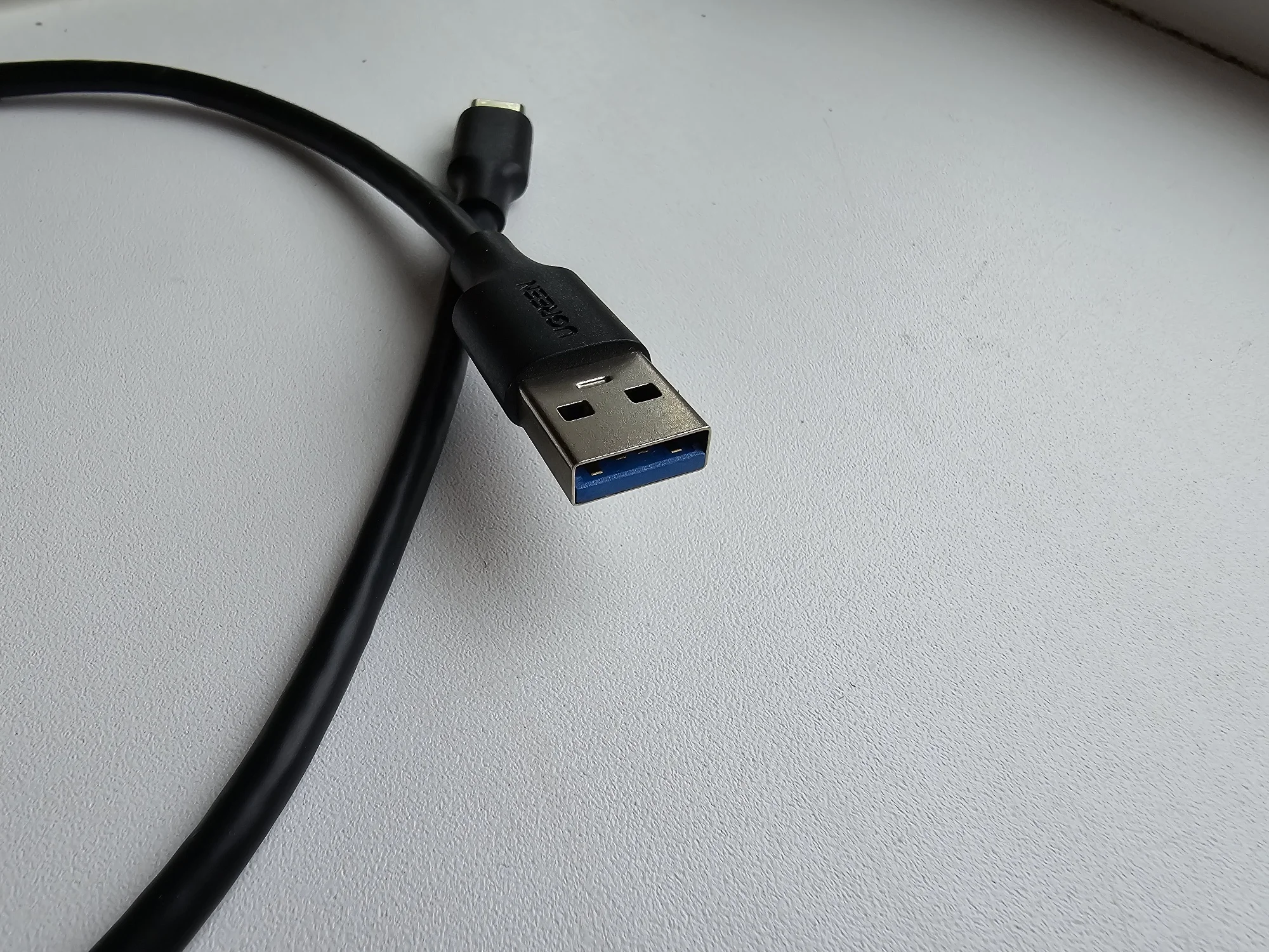 Гибкий толстый кабель USB3.0. Хорошо заряжает(быстрая зарядка), очень быстрая передача данных. Длина очень впритык.