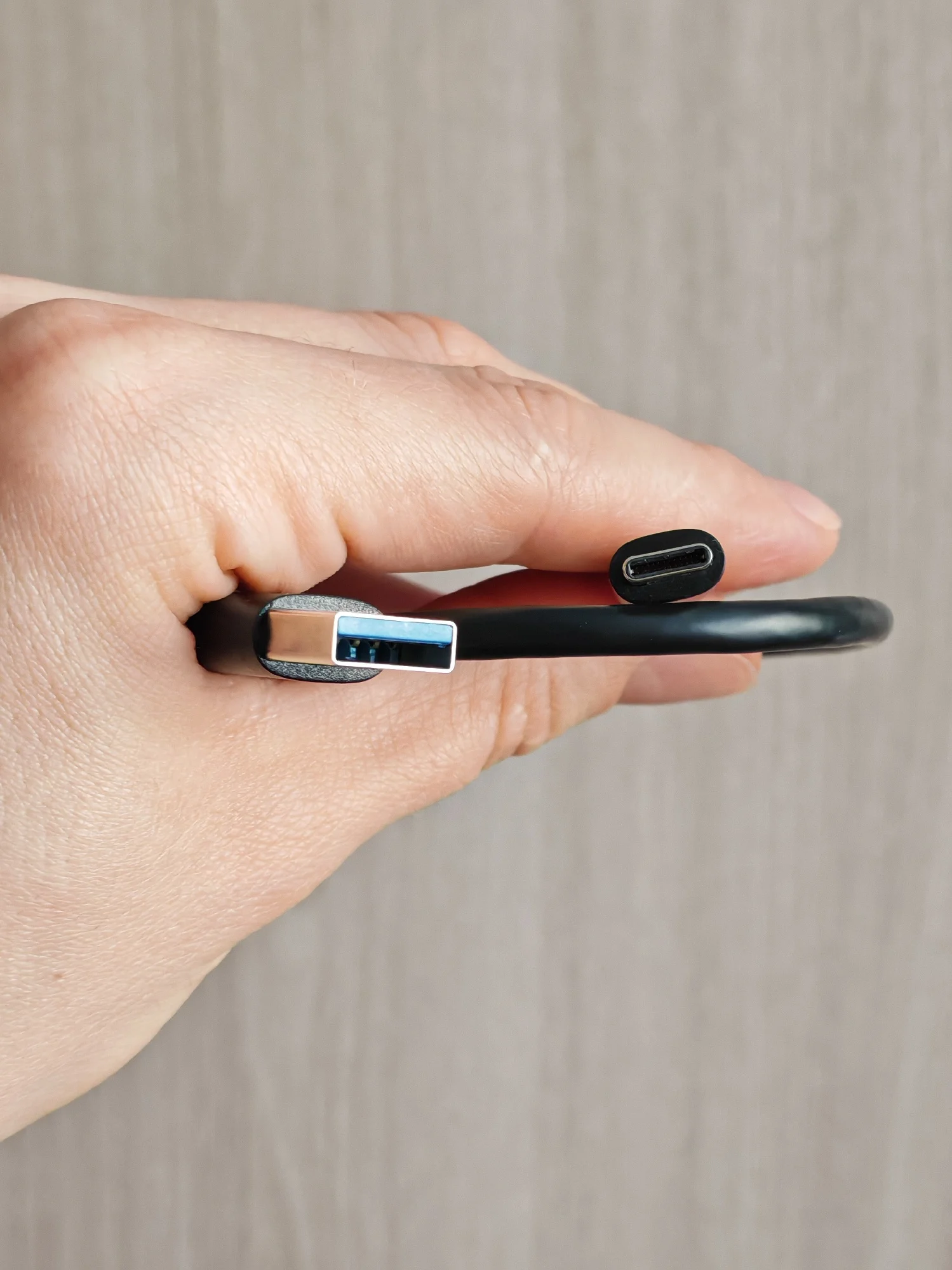 Гибкий толстый кабель USB3.0. Хорошо заряжает(быстрая зарядка), очень быстрая передача данных. Длина очень впритык.