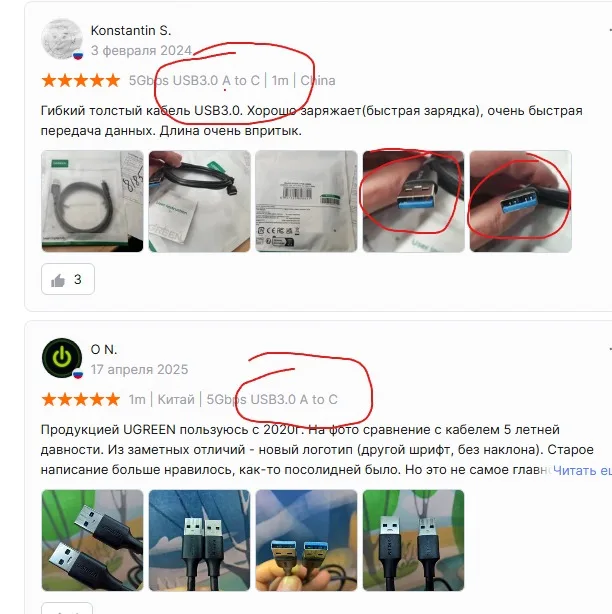 Продукцией UGREEN пользуюсь с 2020г. На фото сравнение с кабелем 5 летней давности. Из заметных отличий - новый логотип (другой шрифт, без наклона). Старое написание больше нравилось, как-то посолидней было. Но это не самое главное. За время эксплуатации вопросов не возникло. Скорость передачи данных и зарядка на высоком уровне, в остальном всё тот же кабель. Можно смело рекомендовать к покупке👍