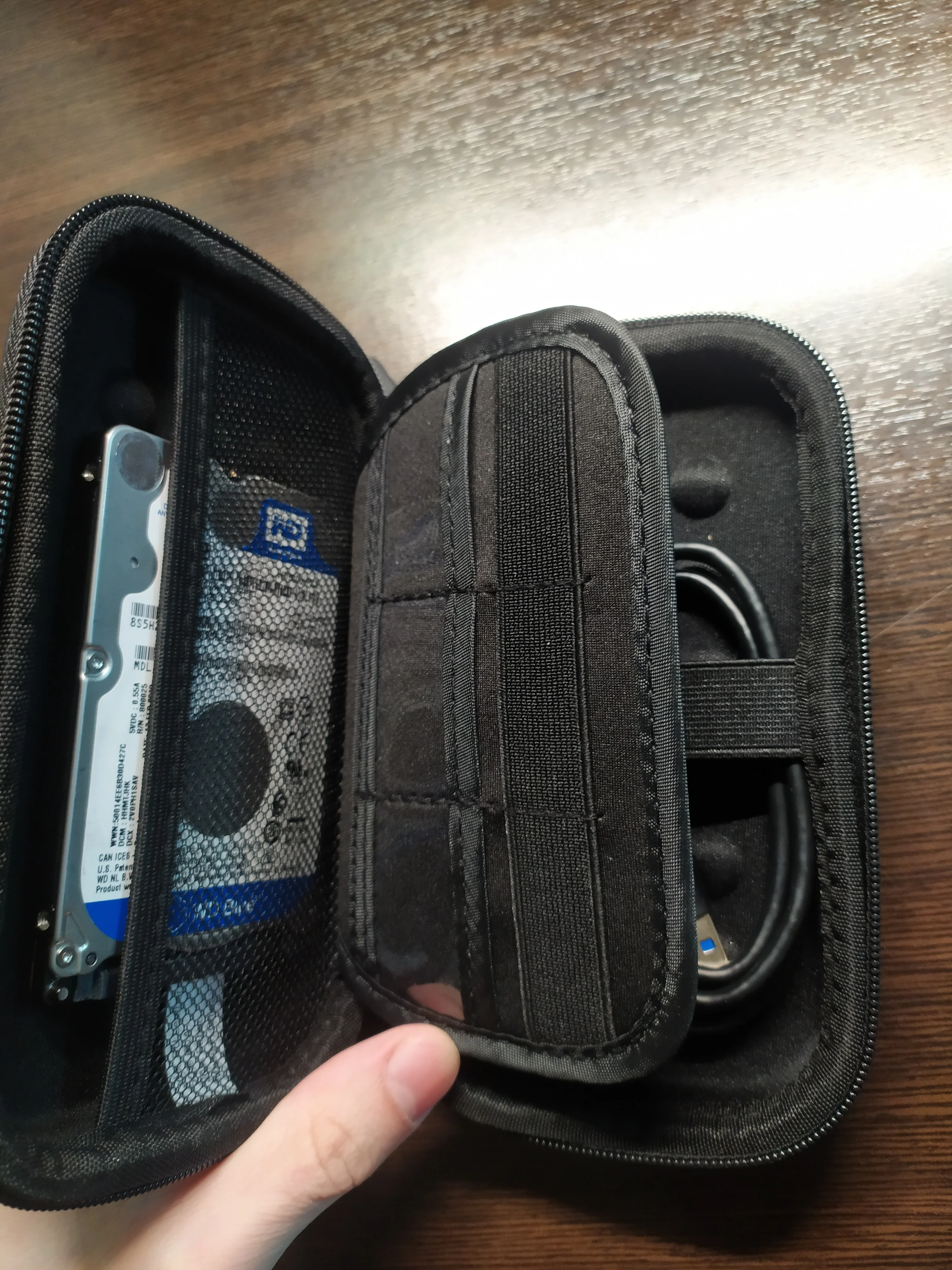 В целом неплохой кейс, скорость передачи данных высокая, работает исправно, но есть несколько моментов, которые меня не устраивают. К тому же с момента покупки я успел пользоваться несколькими другими кейсами и могу сделать для себя вывод. Во-первых, у кейса нет резиновых ножек, что делает его эксплуатацию не очень комфортной. На стол передаётся вибрация и шум от жёсткого диска, помимо этого пластиковый кейс очень лёгкий и без резиновых ножек легко скользит по столу. Во-вторых, комплектная сумка действительно придумана в плане защиты жёсткого диска и наверняка спасёт его при падении, но она очень узкая и в неё входит максимум сам кейс с проводом. Но суть кейса в возможности быстрой замены жёсткого диска и логично, что человек хотел бы взять с собой ещё минимум один жёсткий диск, который бы переставлял в кейс, но даже если взять тонкий жёсткий диск, то сумка закроется с усилием и лишь при условии, что вы уберёте оттуда провода, которые будут теряться вне сумки. Ну и логичный момент, но всё же напишу об этом. В кейсе диск греется сильнее, чем без него, просто учитывайте это. По итогу я для себя решил, что второй раз не купил бы его. Брал бы кейс орико без сумки, он работает точно так же, но стоит дешевле.