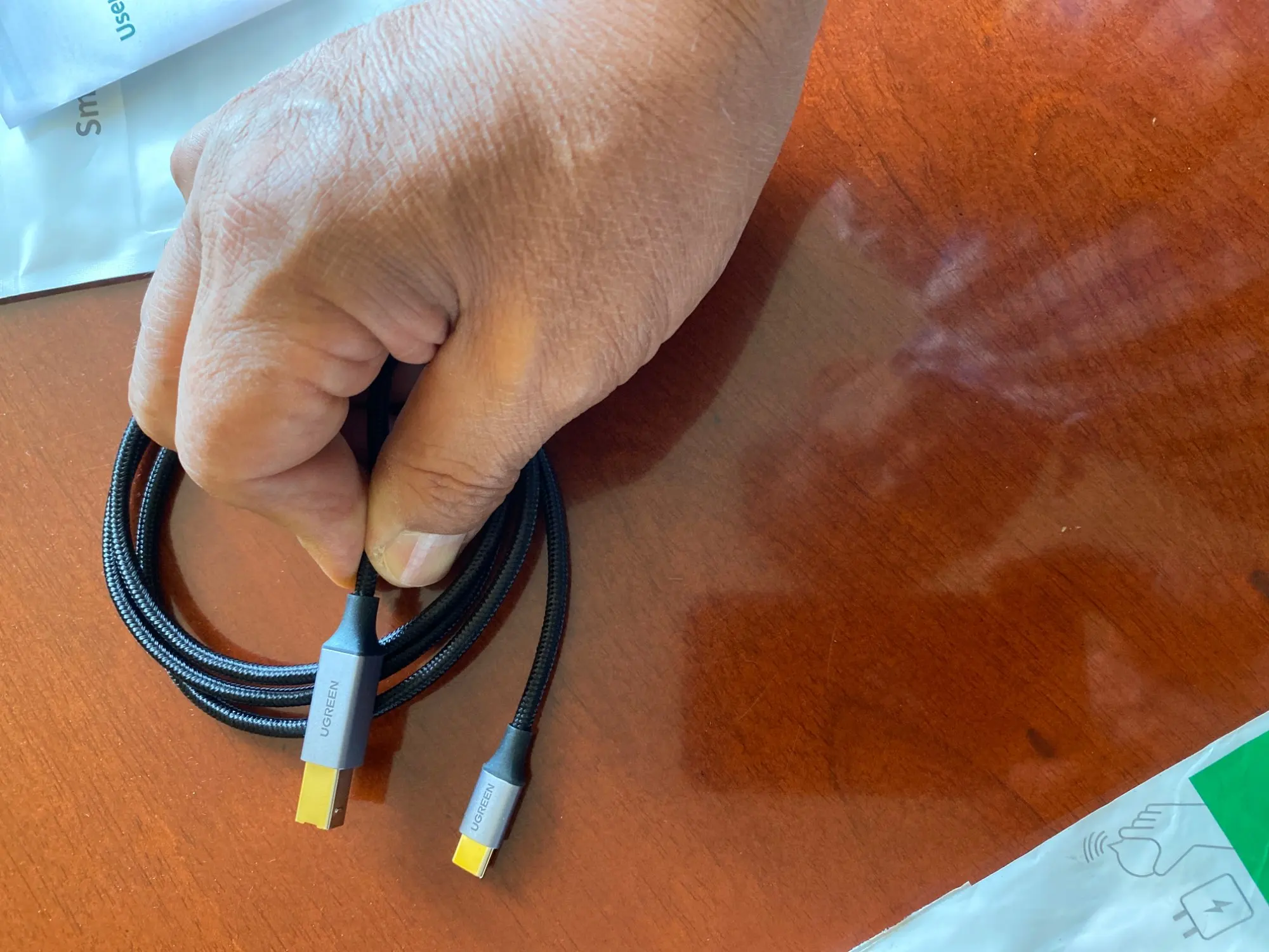 Отправили оперативно, пришло по сроку нормально. Упаковано очень круто. На самом кабеле была маленькая коцочка, не очень заметная. Но не страшно. Сам кабель классный, красивый, солидный. Сделан качественно. Приятная поверхность.