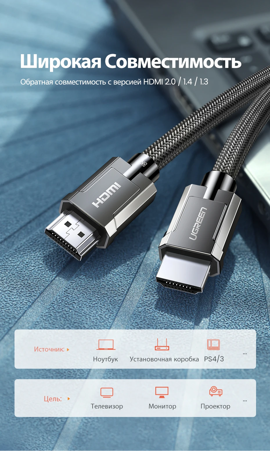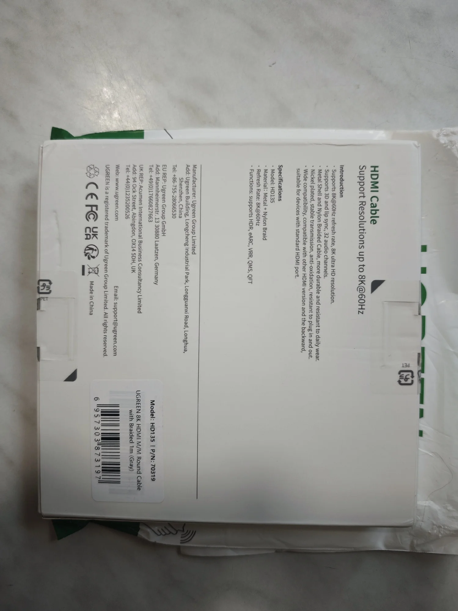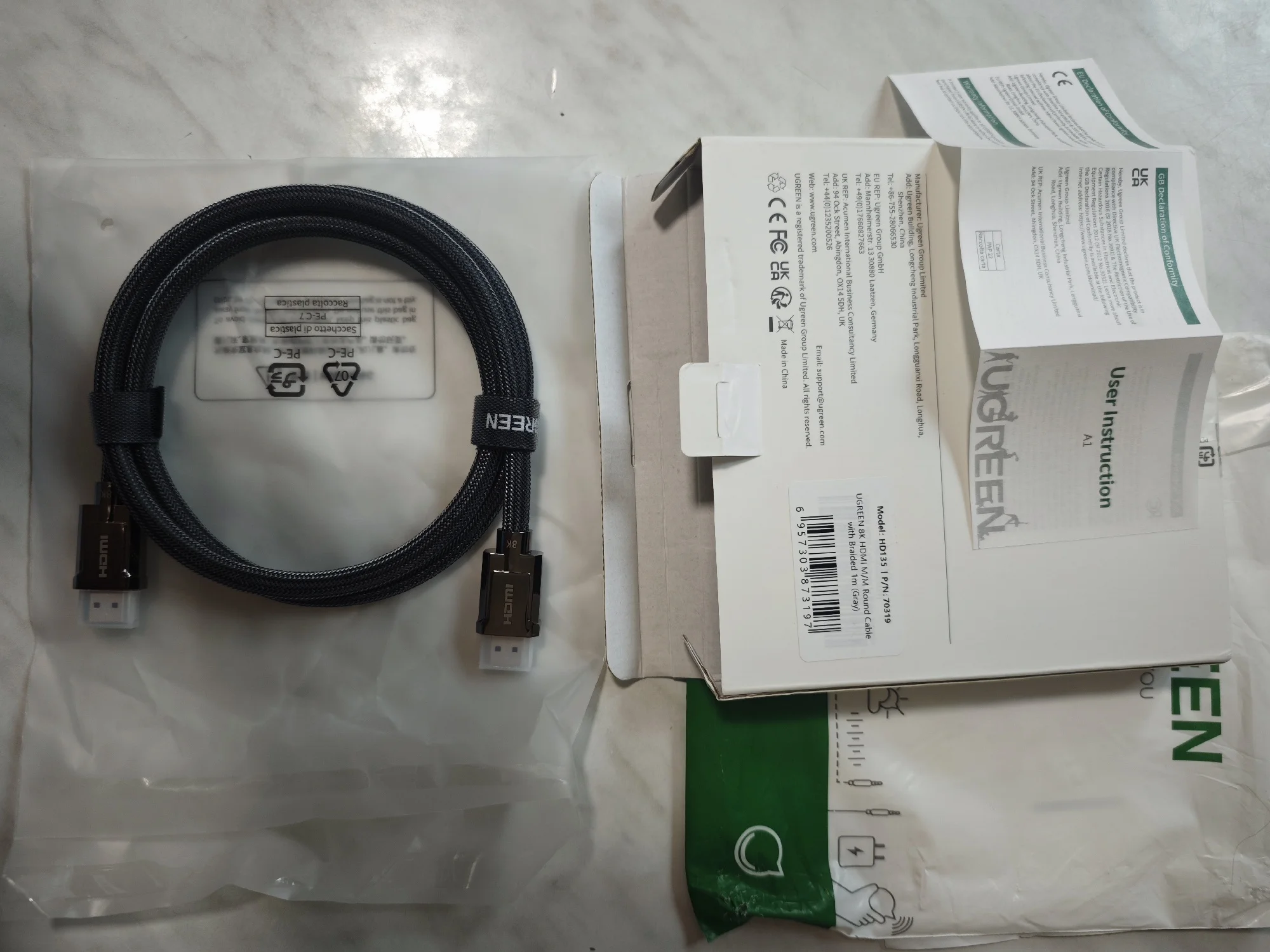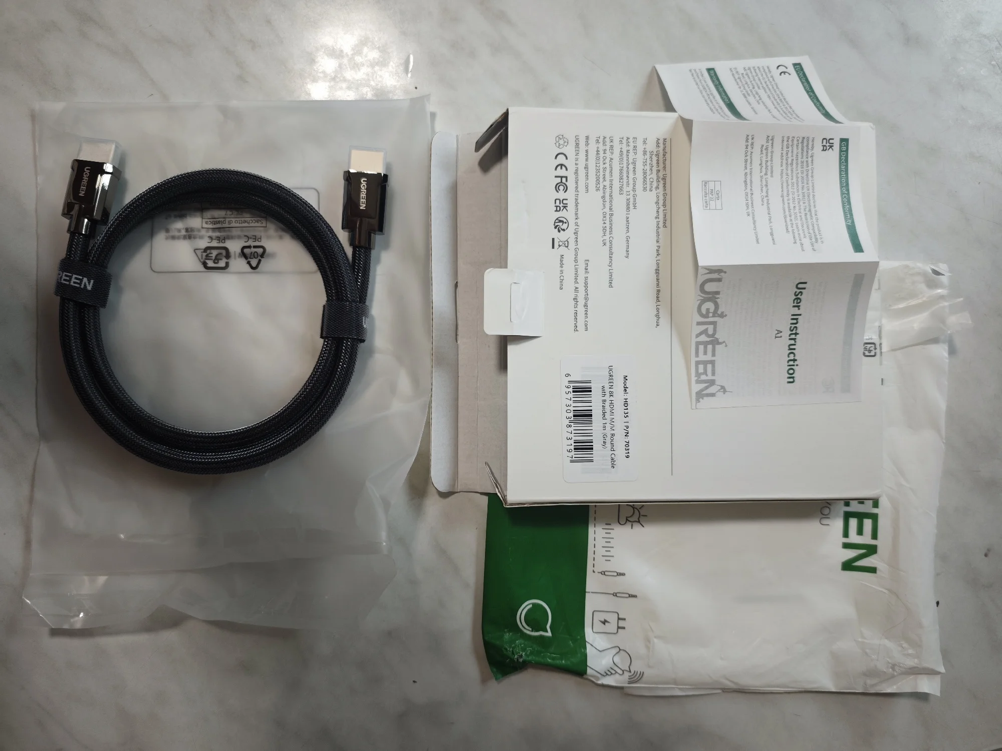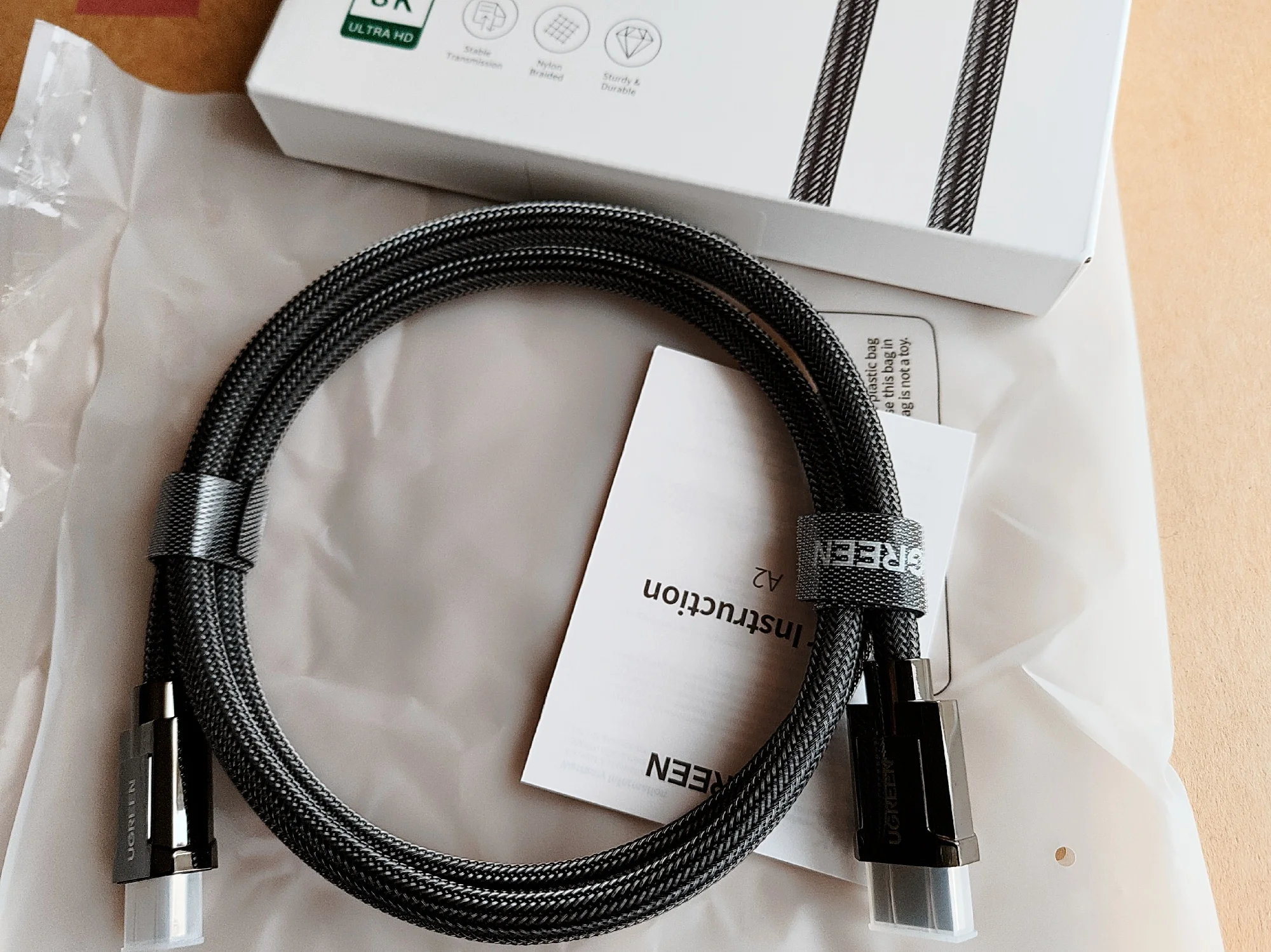 Отличная, фирменная, брендирования упаковка - это здорово и в этом чувствуется забота о постоянных пользователях этого, хорошо зарекомендовавшего себя бренда UGREEN! Высококачественные разъемы, кабель в уникальной оплётке - всё говорит о высочайшем качестве изделий UGREEN!