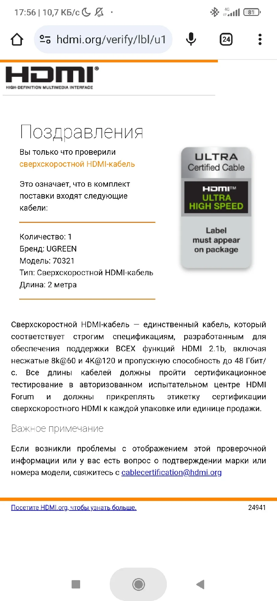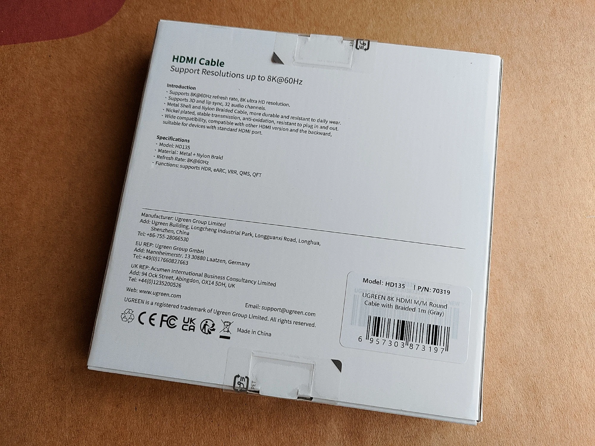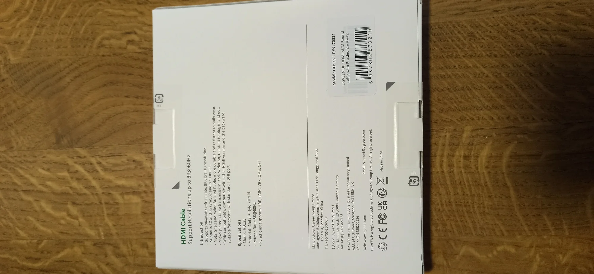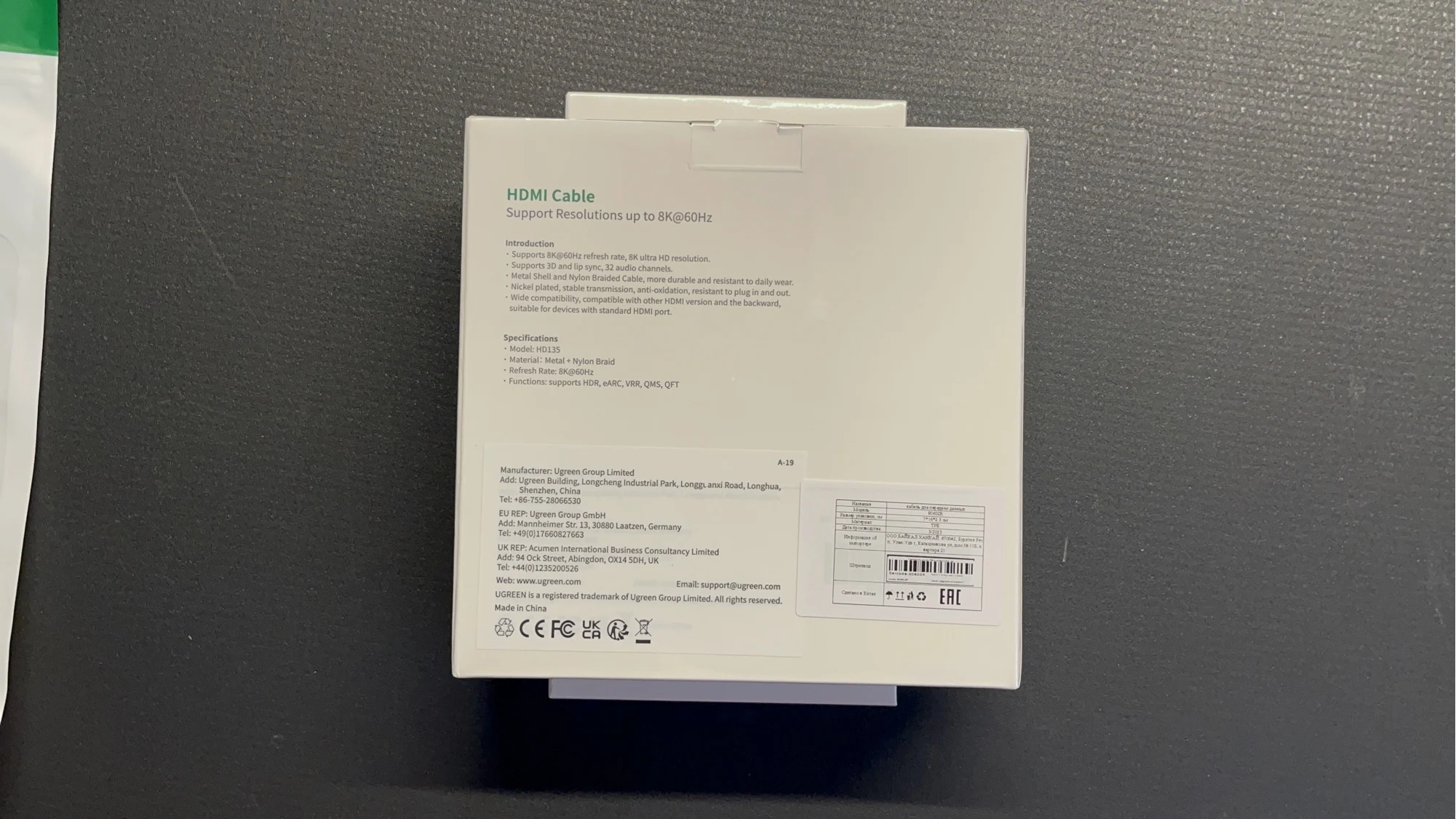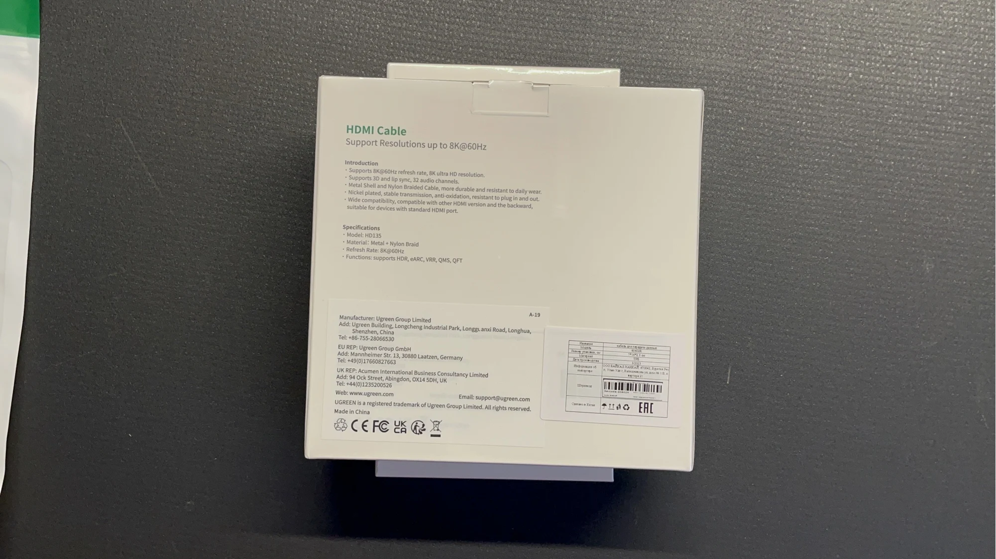 Отличная, фирменная, брендирования упаковка - это здорово и в этом чувствуется забота о постоянных пользователях этого, хорошо зарекомендовавшего себя бренда UGREEN! Высококачественные разъемы, кабель в уникальной оплётке - всё говорит о высочайшем качестве изделий UGREEN!